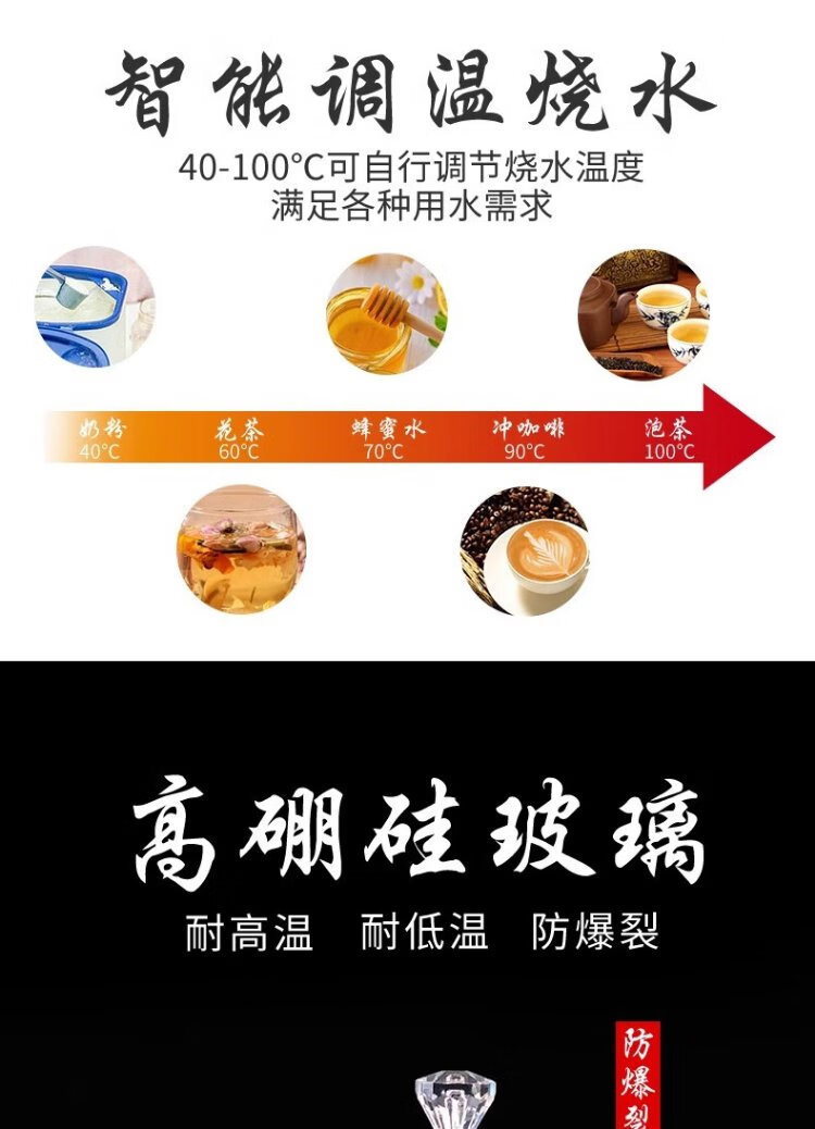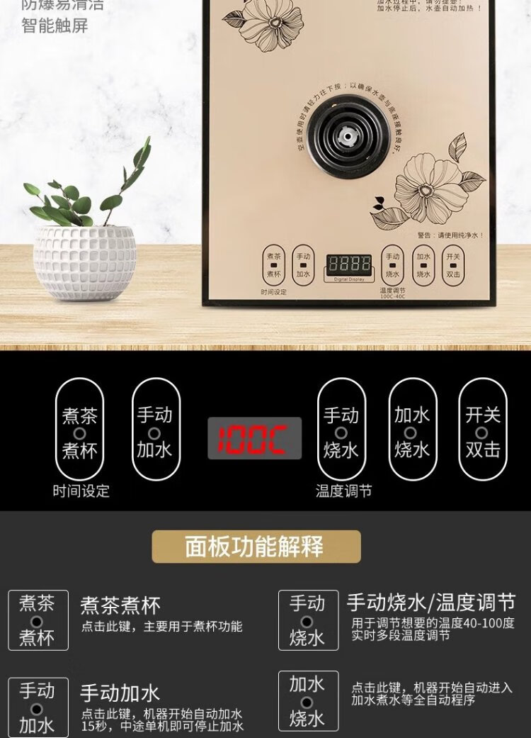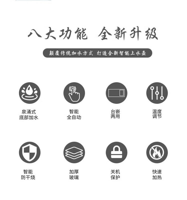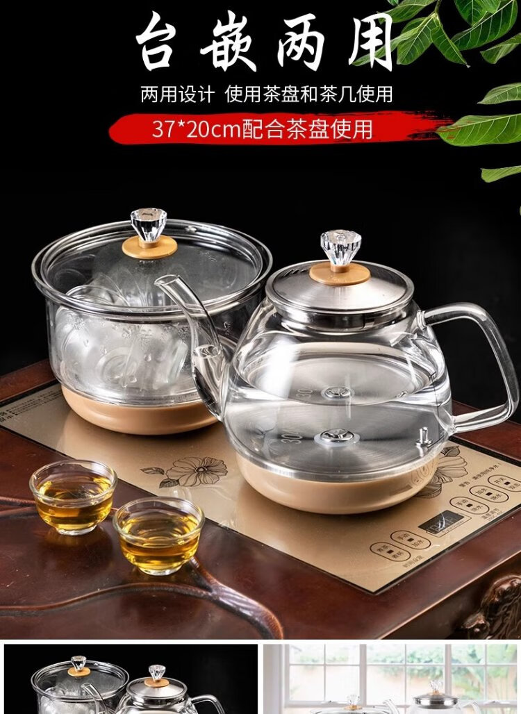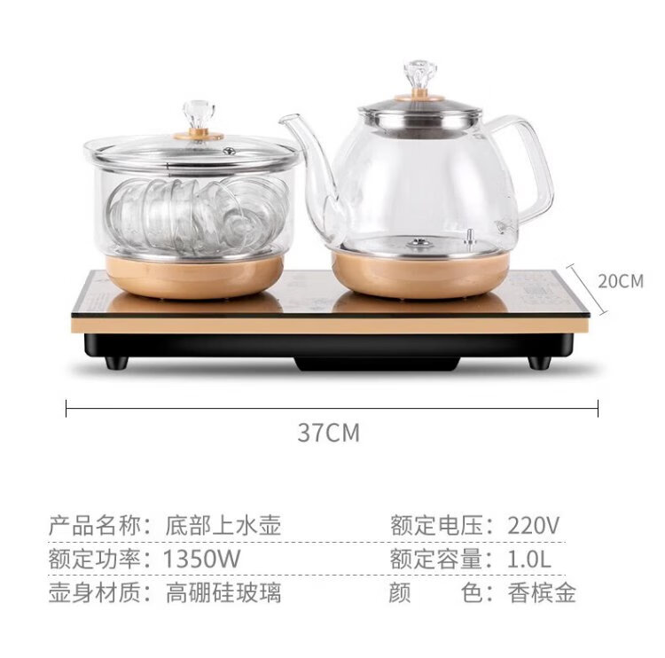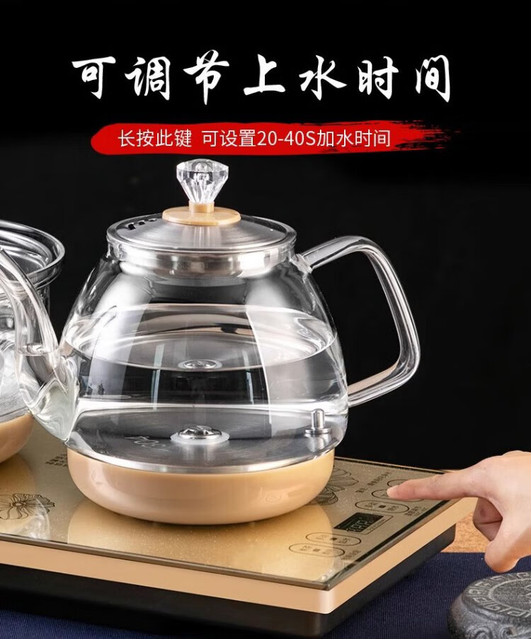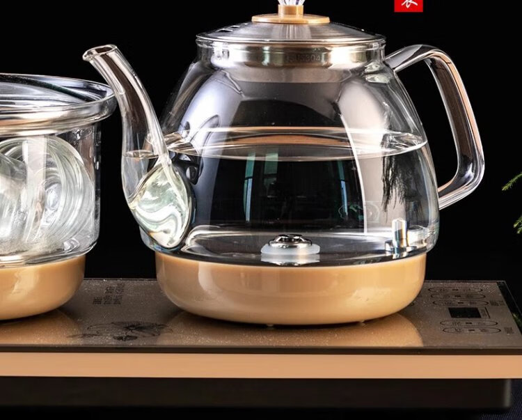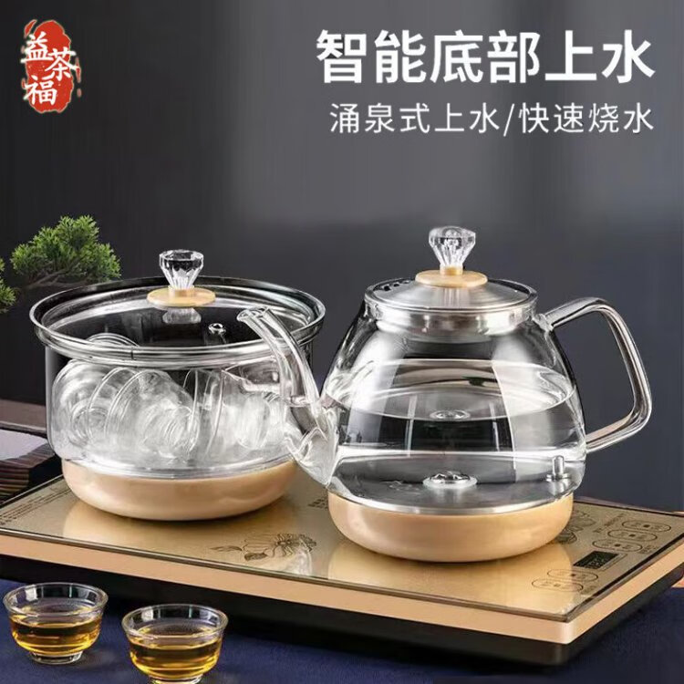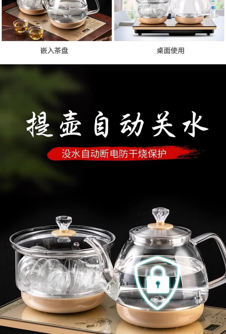 Yichafu fully automatic water filling electric kettle bottom water filling embedded tea table Kung Fu tea kettle drinking water boiling all-in-one machine pumping water glass tea kettle insulation tea kettle SQ-008 golden glass set 1L