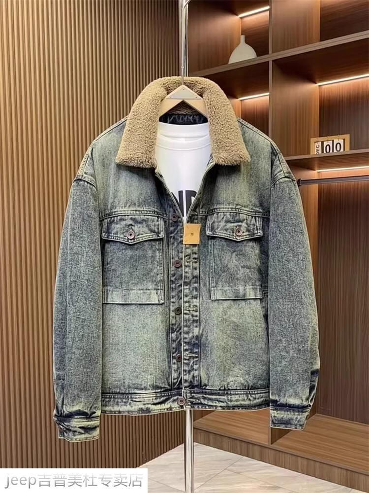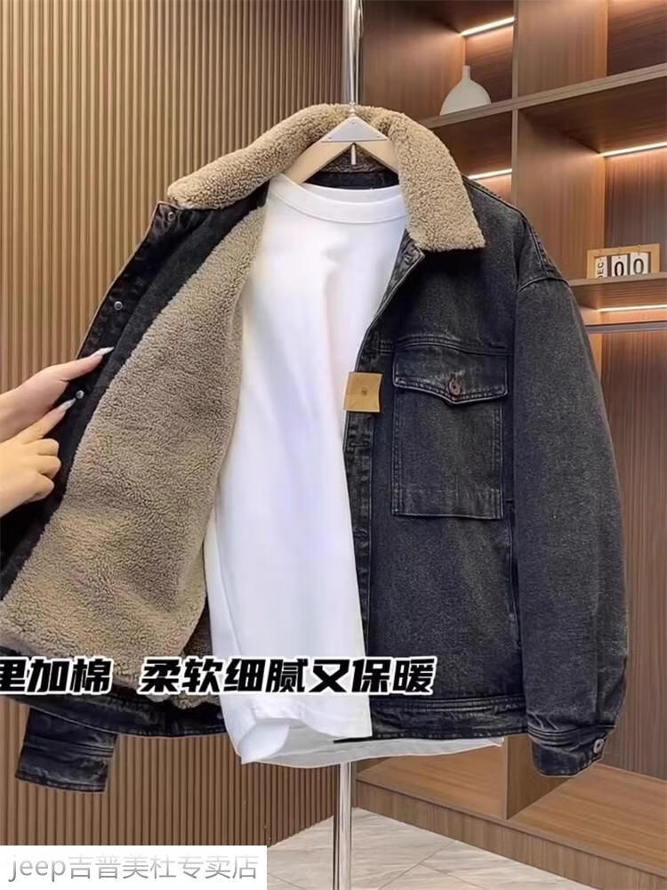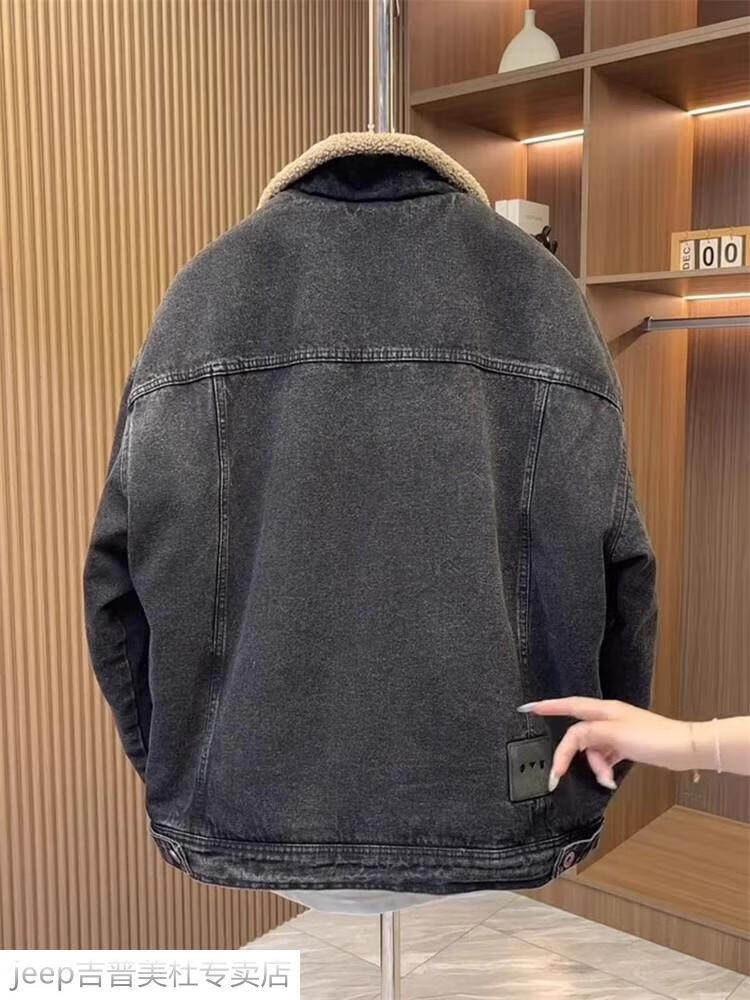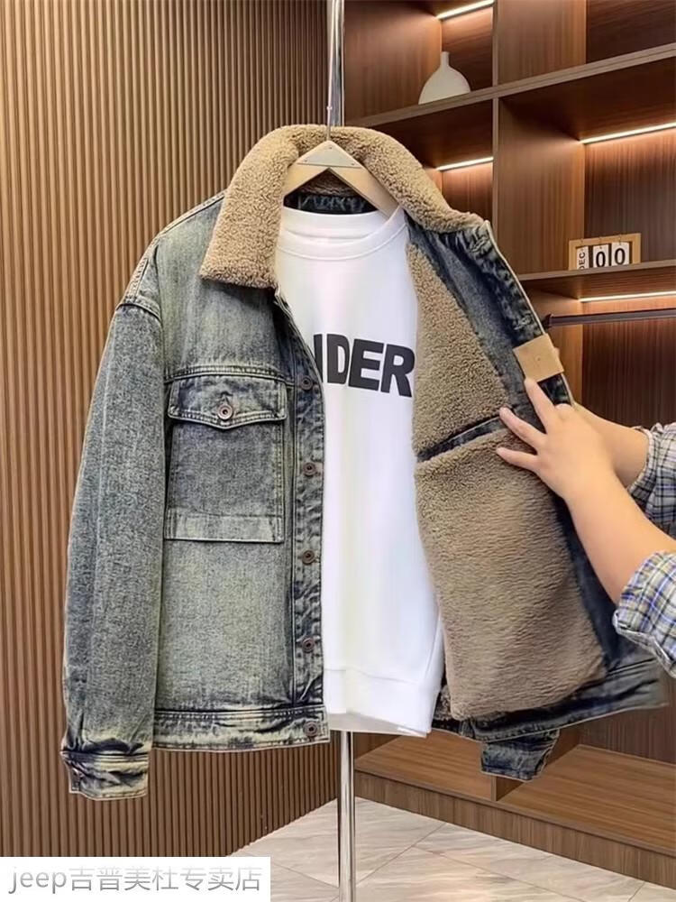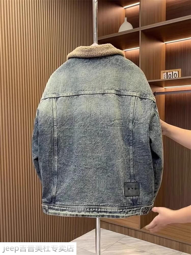 JEEP SPIRIT Jeep men's winter jacket denim jacket men's lamb velvet new plus velvet thickened retro warm lapel cotton jacket blue plus. velvet plus. thick #135 winter style M recommended 100-120Jin Jin equals 0.5 kg