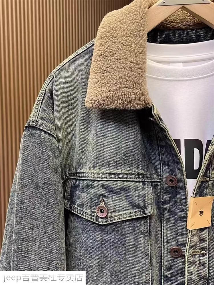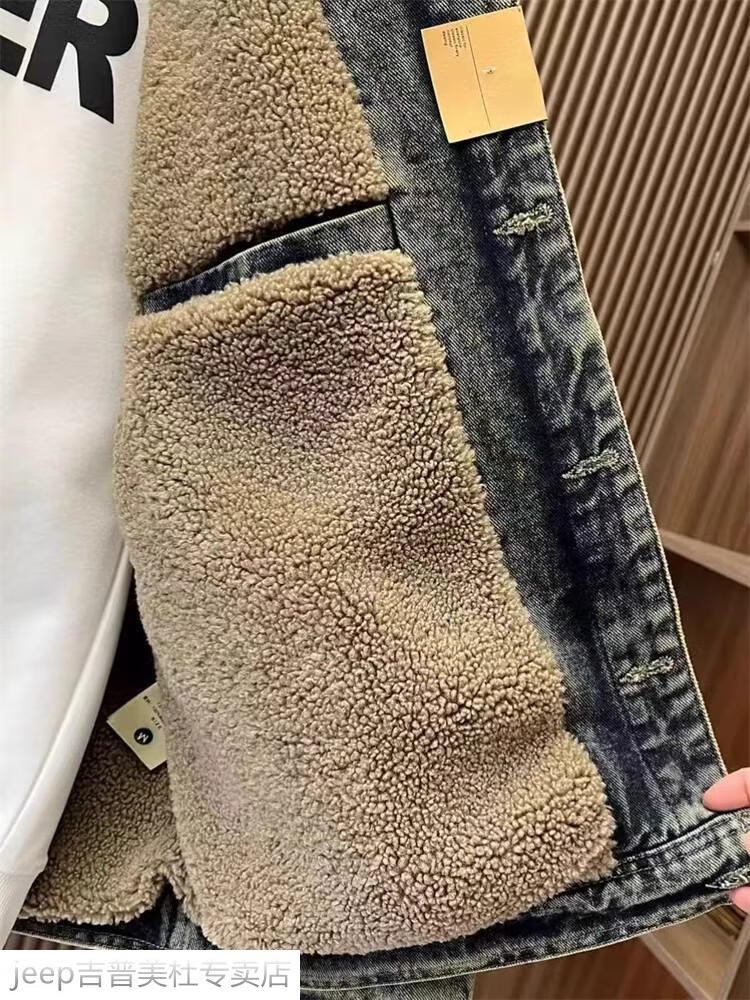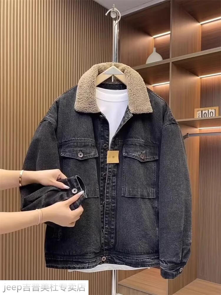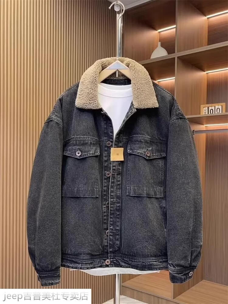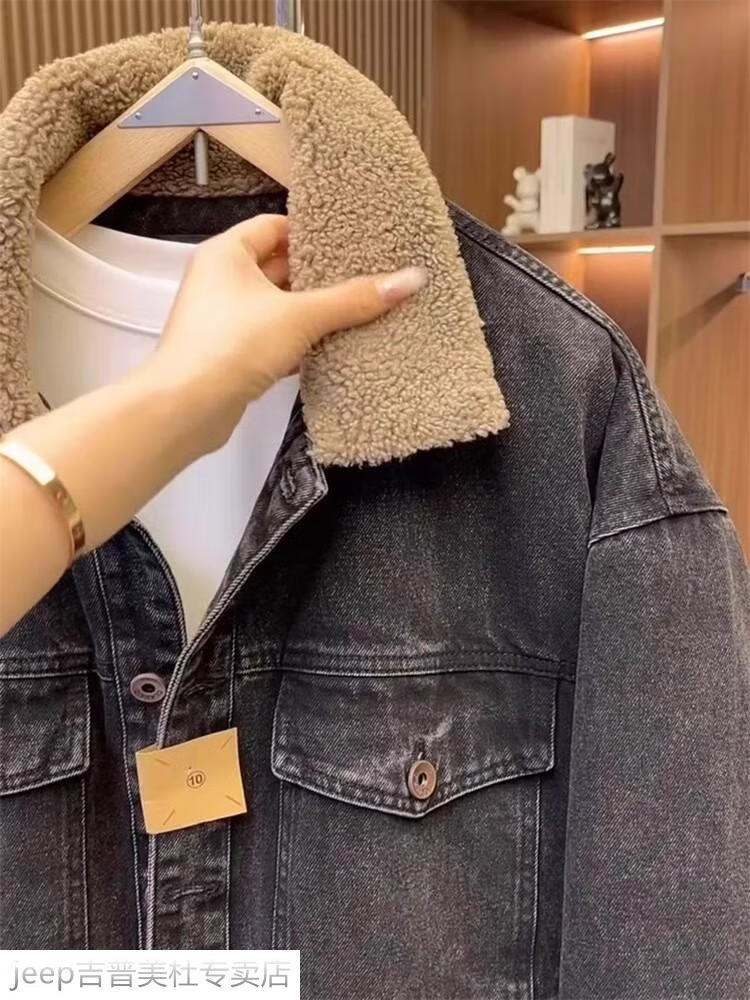 JEEP SPIRIT Jeep men's winter jacket denim jacket men's lamb velvet new plus velvet thickened retro warm lapel cotton jacket blue plus. velvet plus. thick #135 winter style M recommended 100-120Jin Jin equals 0.5 kg