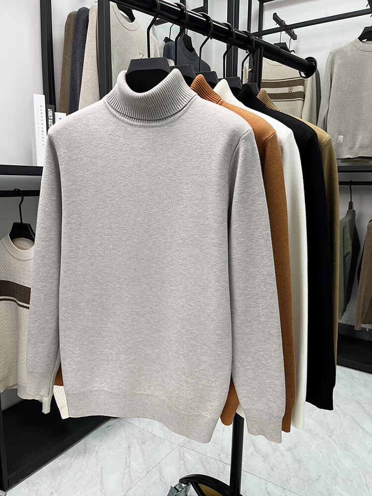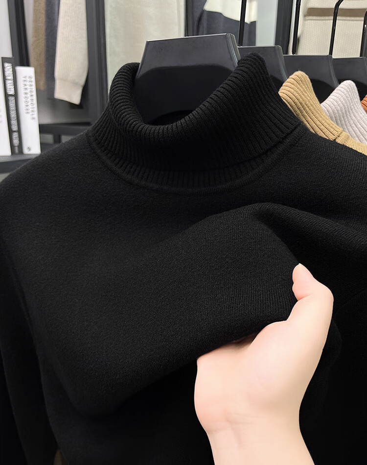 Pierre Cardin 100% pure wool sweater, turnable turtleneck sweater for men, velvet and thickened, winter warm middle-aged knitted bottoming sweater, black M 48 170 recommended 100-120 Jin Jin equals 0.5 kg