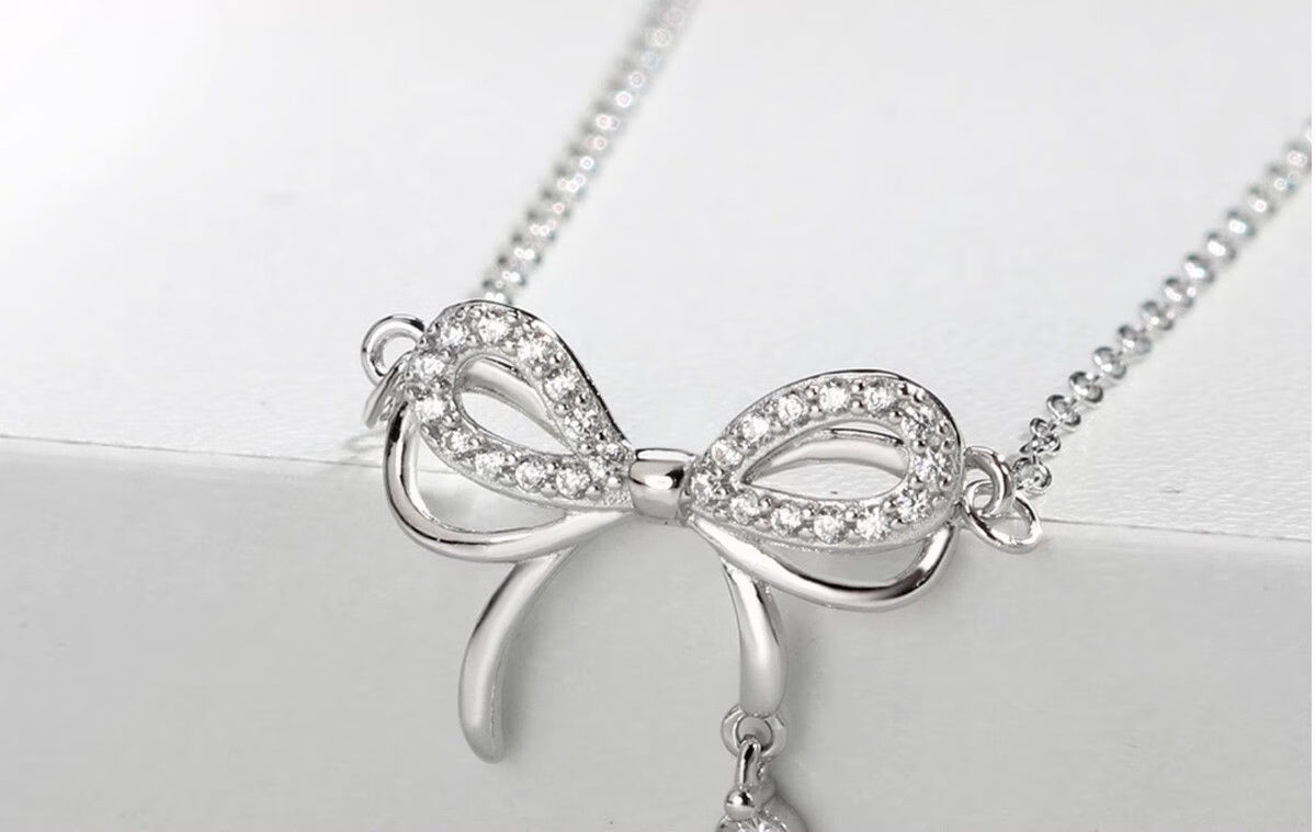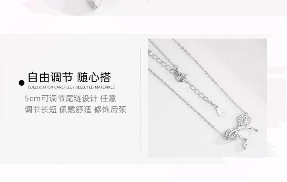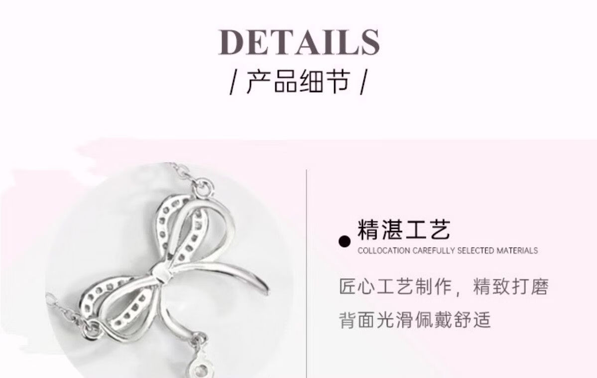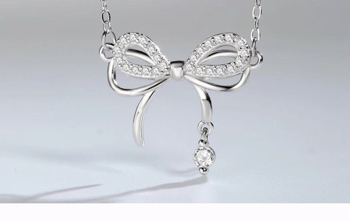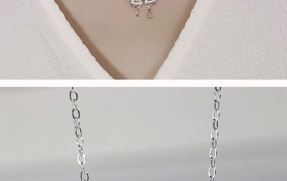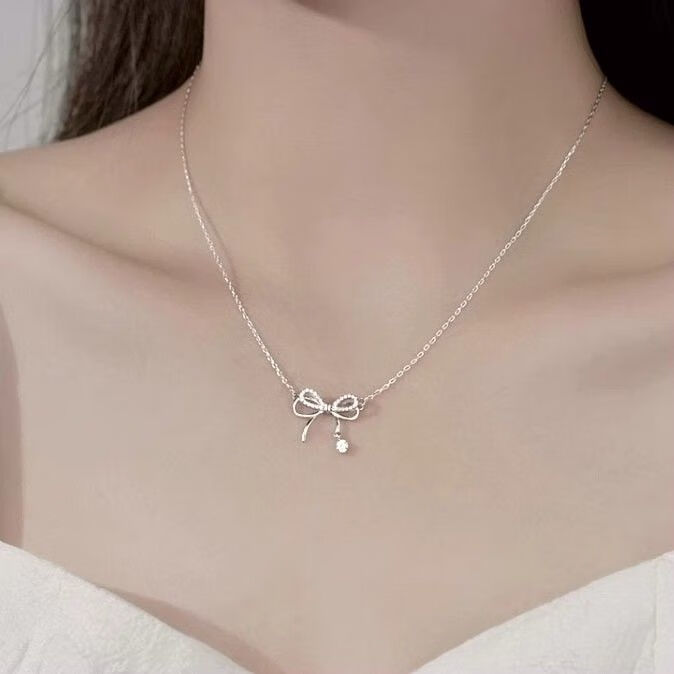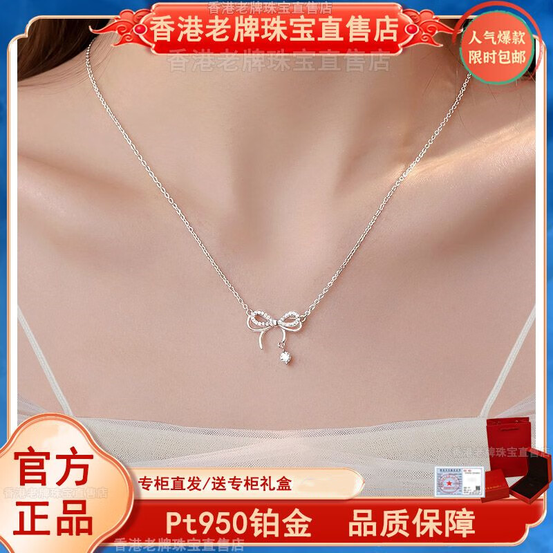 Genuine pt950 platinum bow necklace for women, versatile niche clavicle chain, birthday and Valentine's Day gift for girlfriend, platinum bow chain set-rose gift box
