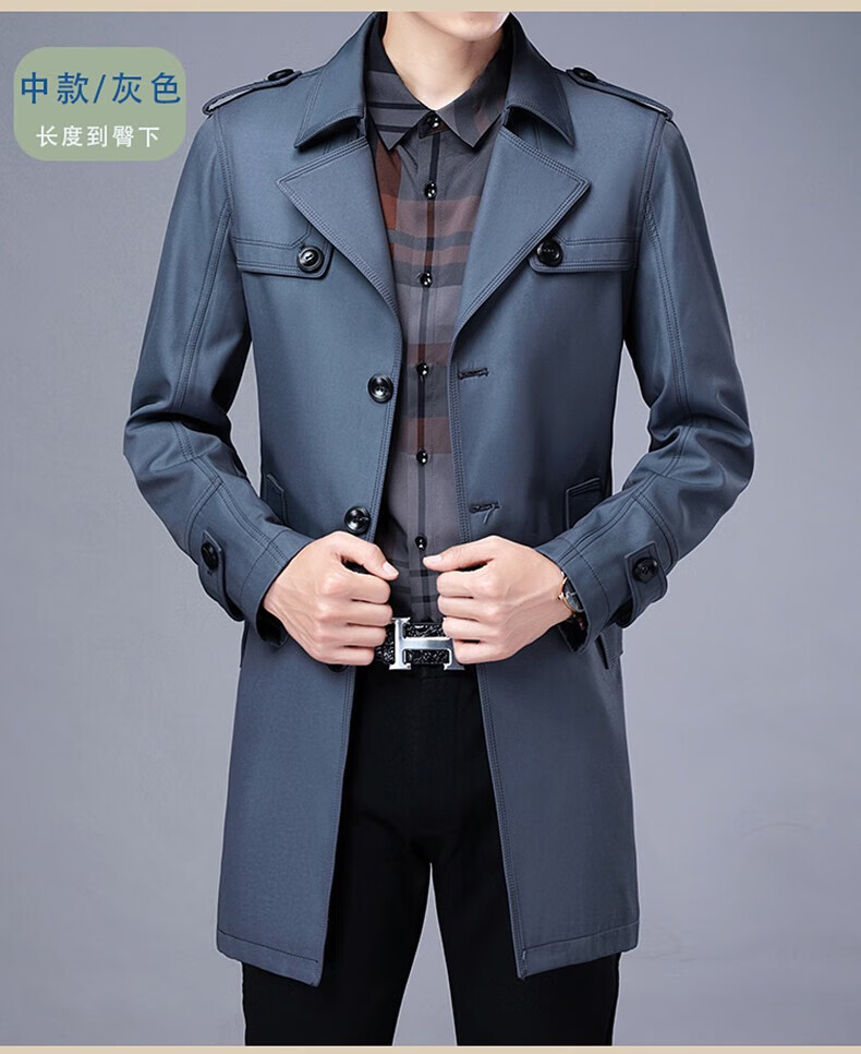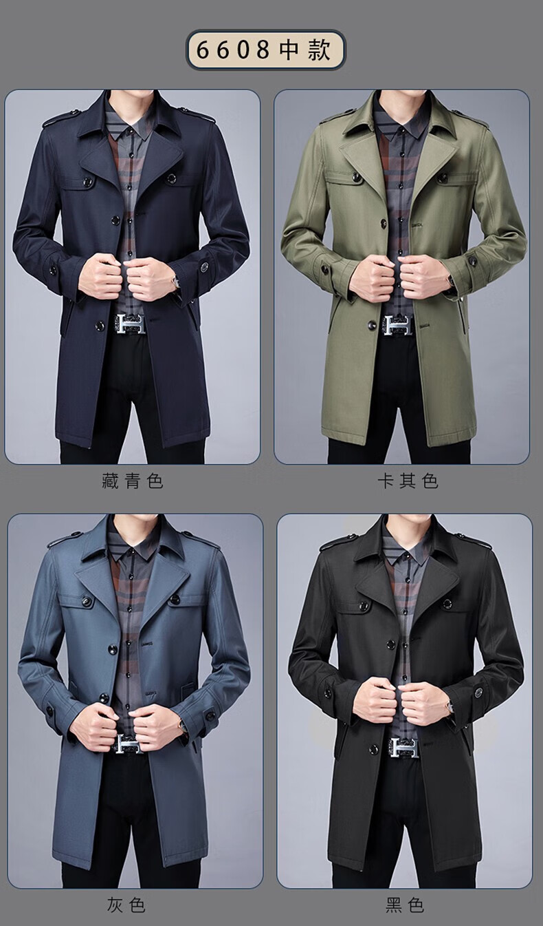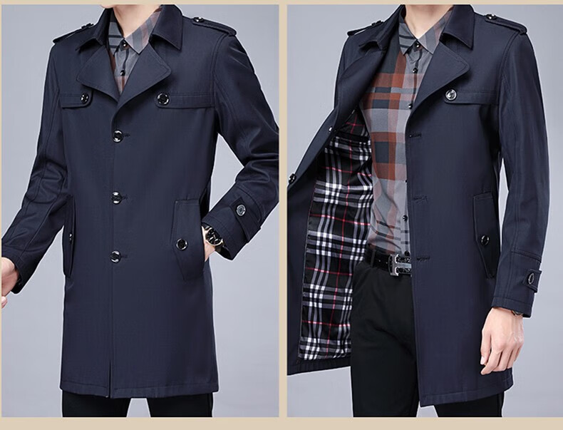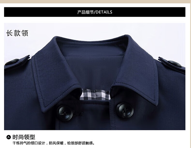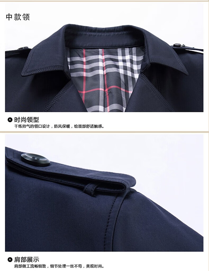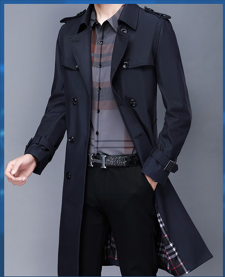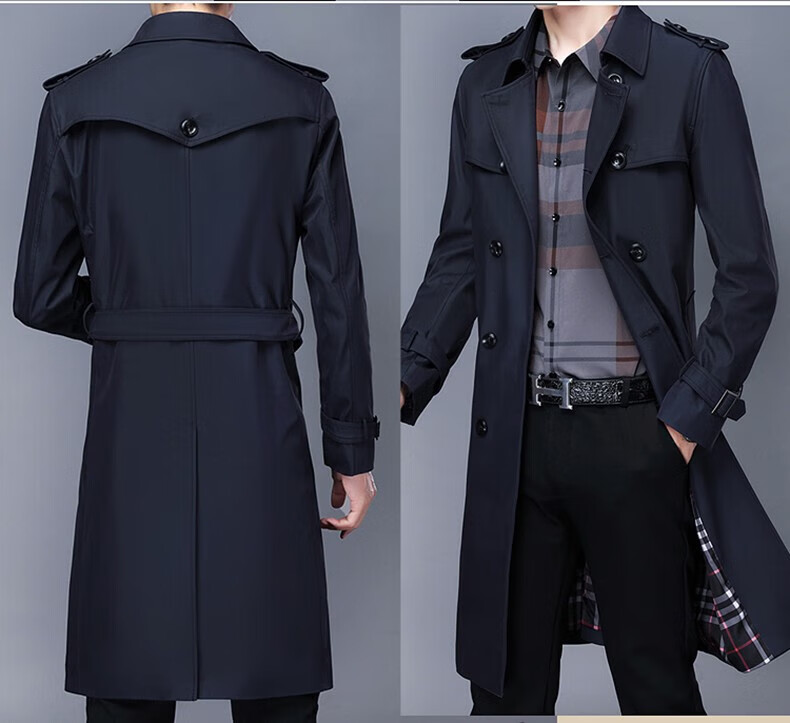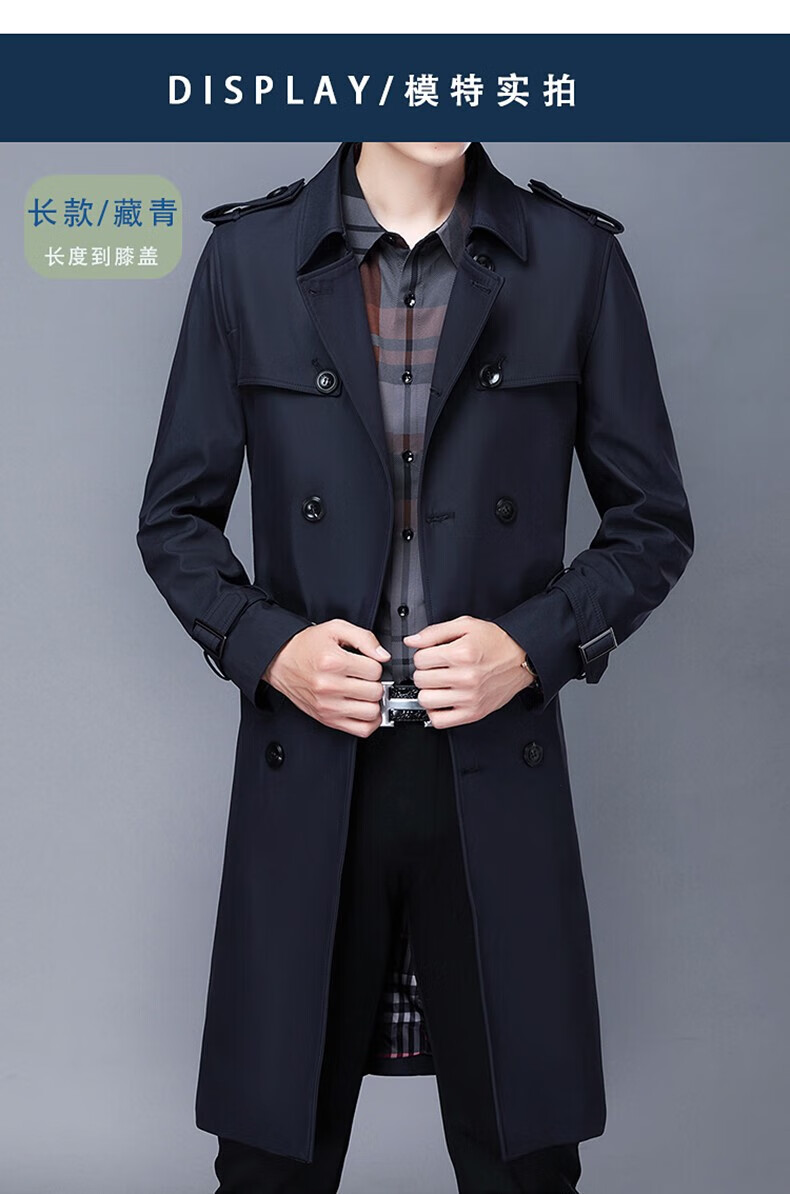 DIFANPU luxury high-end brand mid-length windbreaker men's business casual spring and autumn solid color lapel double-breasted commuter coat navy blue long 2XL 185