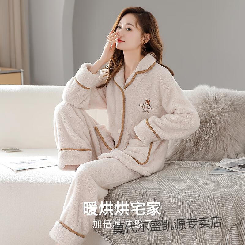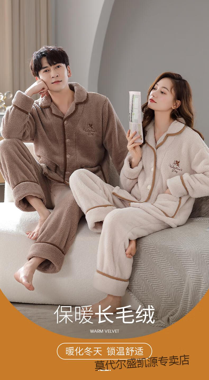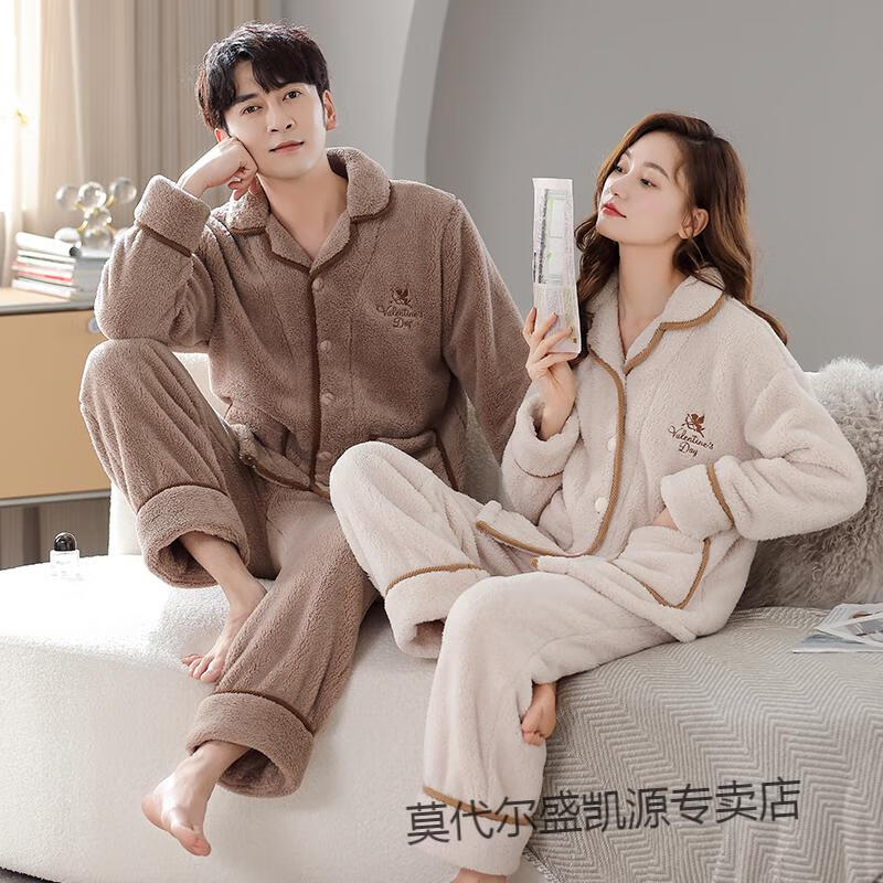 Modal pajamas couple wear for one man and one woman, autumn and winter coral velvet and velvet thickened winter home wear set, winter, main picture MZD 1609 (G) Apricot 2609 (B) Brown M Female