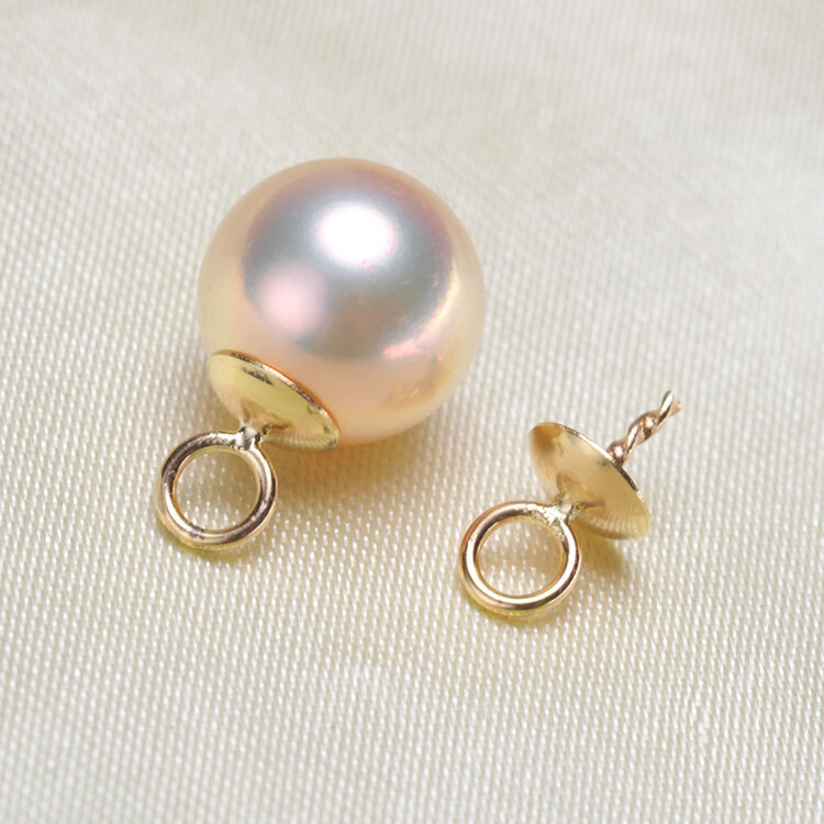 Beiyou DIY accessories G18K gold pendant empty support 4.5mm large cap thick version pearl pendant necklace with 8-12mm 18K gold pendant empty support not including beads and chain