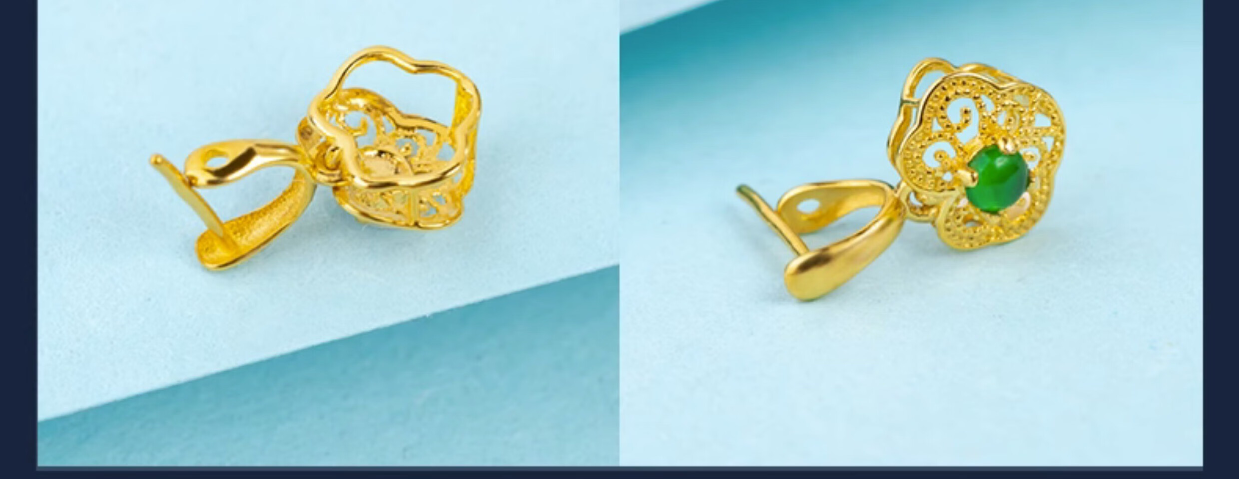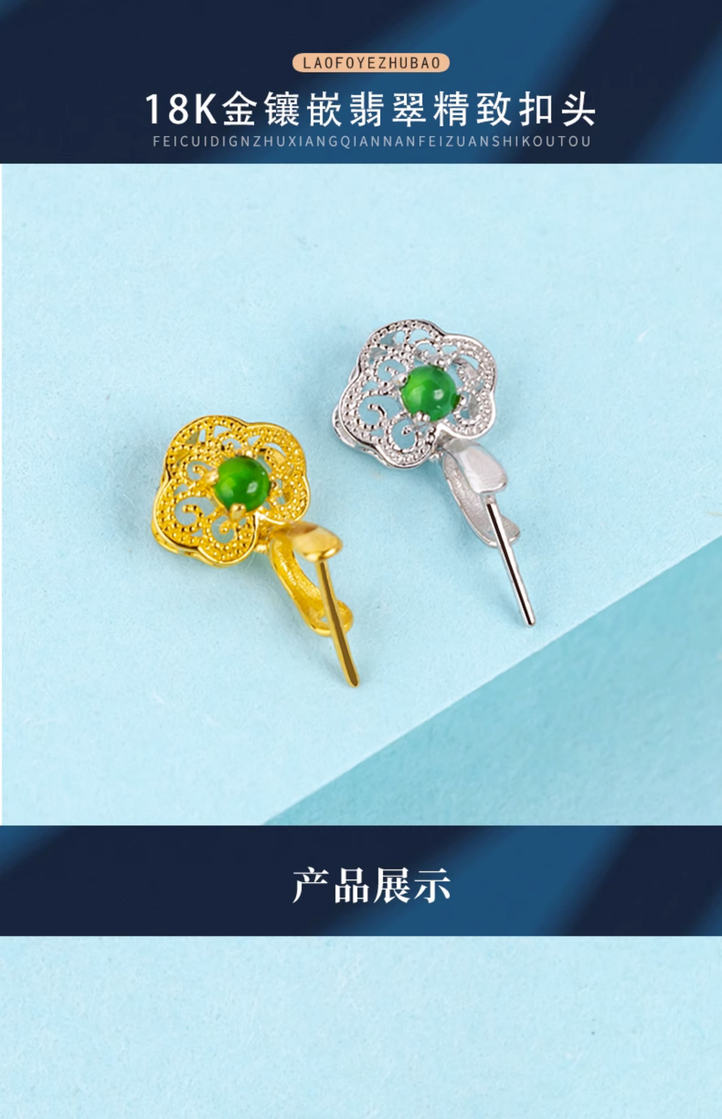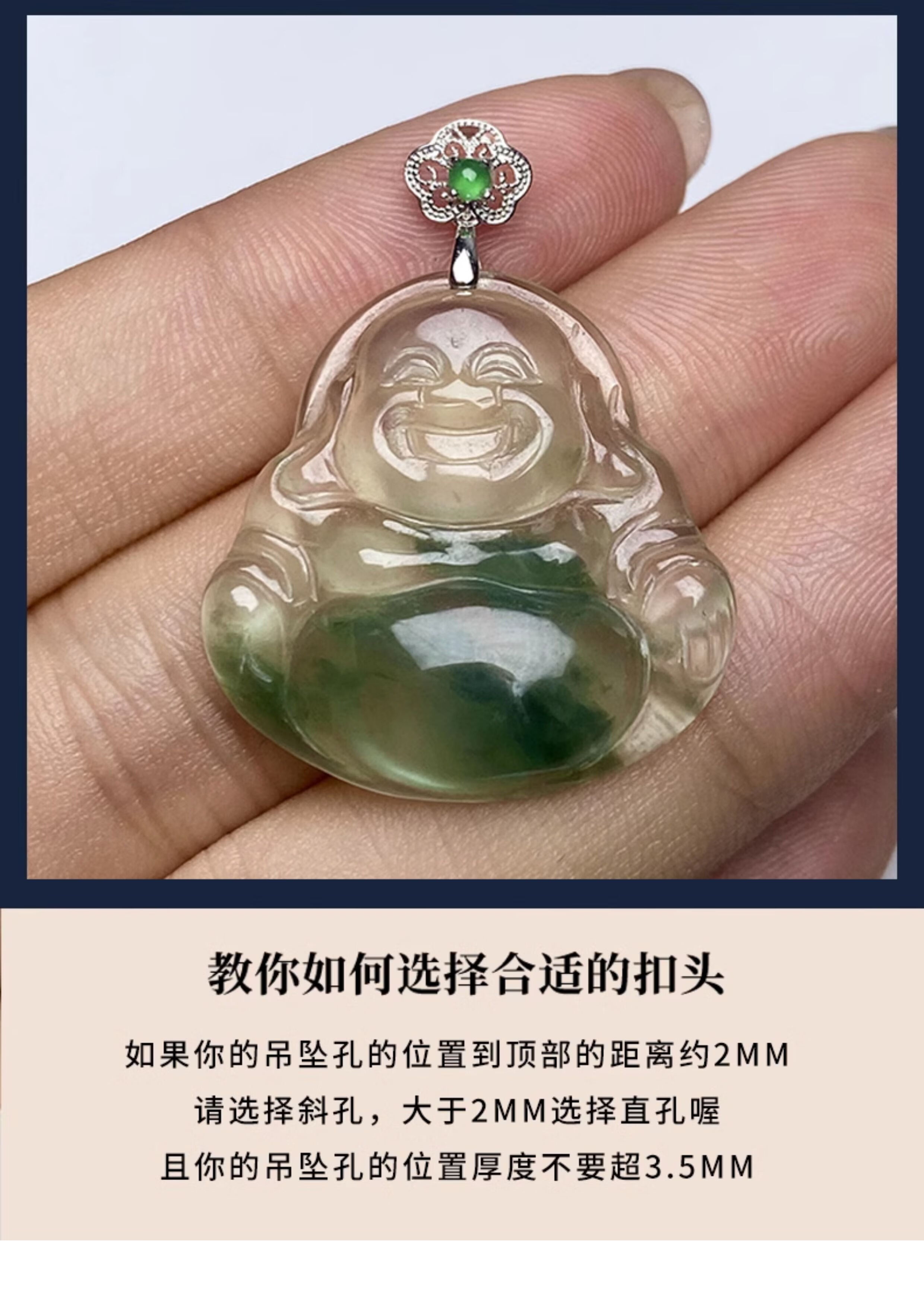 Beyou 18K gold buckle head with retro pattern craftsmanship, jadeite A top bead inlaid with K gold jade pendant, melon seed buckle, versatile buckle, 18k gold, white straight hole
