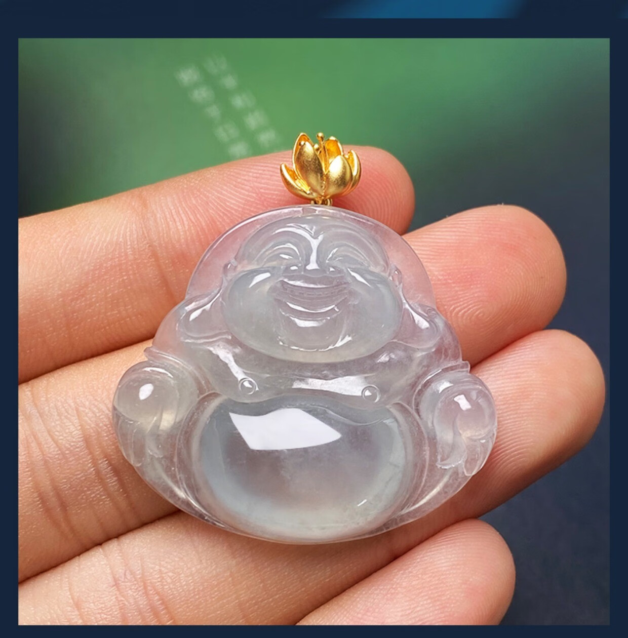 Peiyou 18k gold buckle retro frosted three-dimensional lotus buckle jadeite Guanyin Buddha jade pendant pendant buckle clip 18k gold k yellow oblique hole