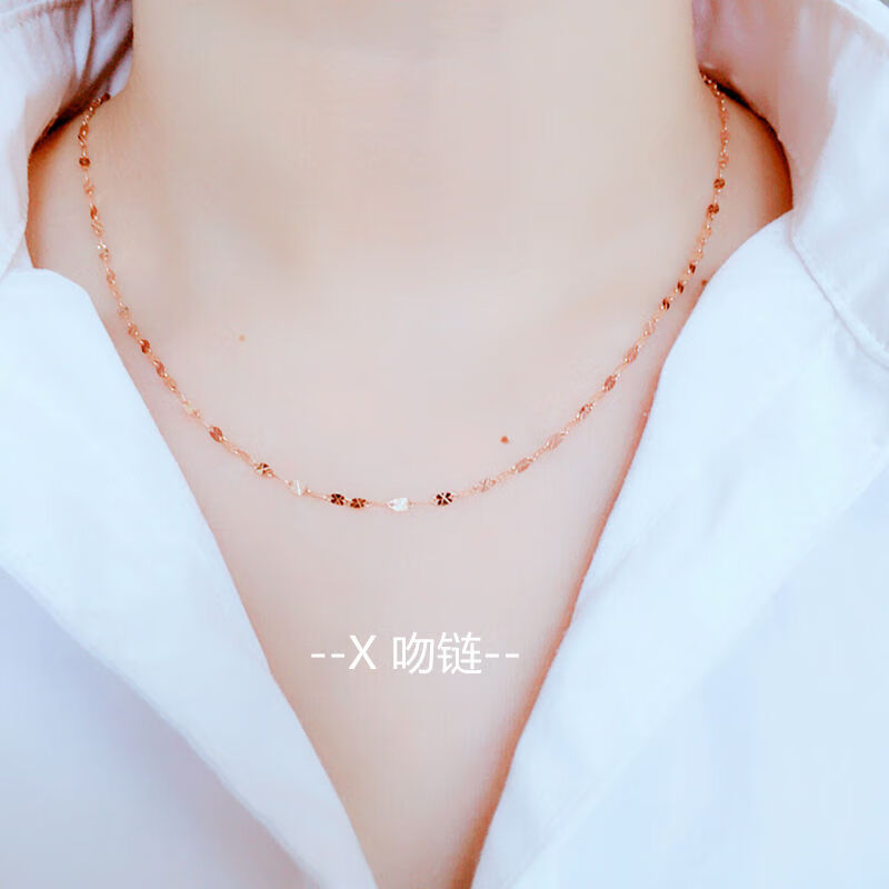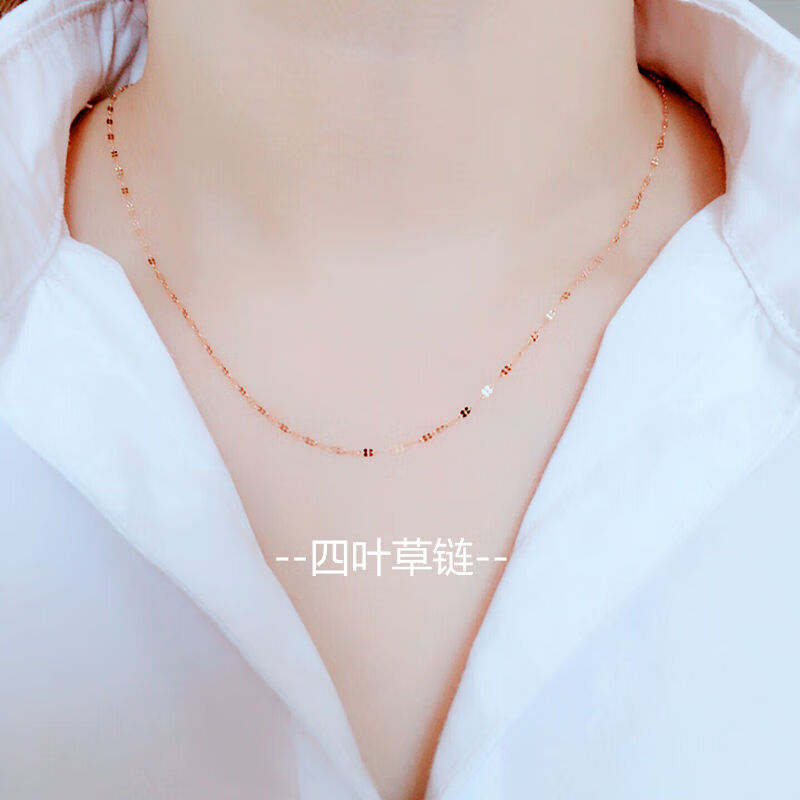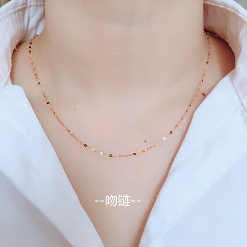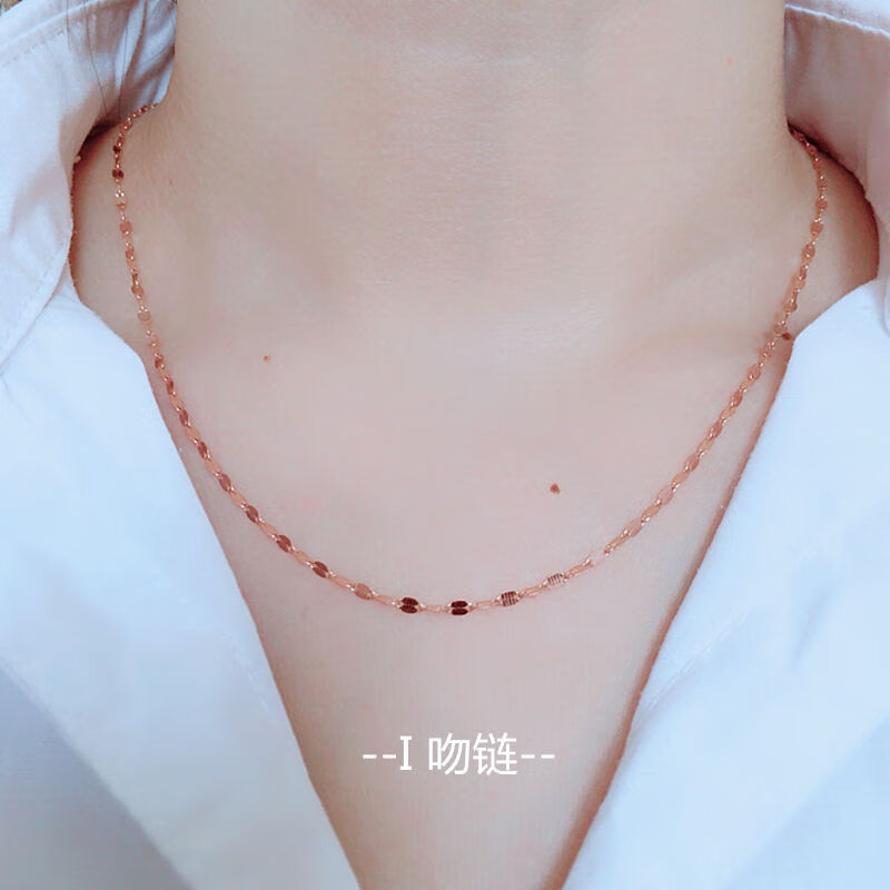 Baozha Pure 14K Gold Russian 585 Purple Gold Necklace Pendant Women's Colorful Gold Rose Purple Gold Clavicle Chain Necklace Birthday Kiss Chain (1.3mm) 50cm