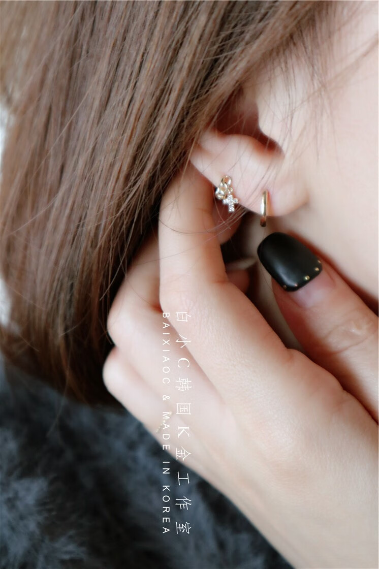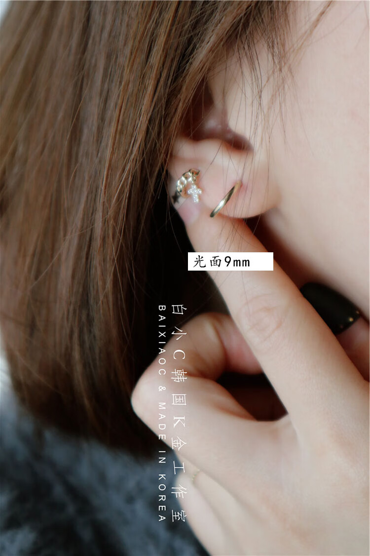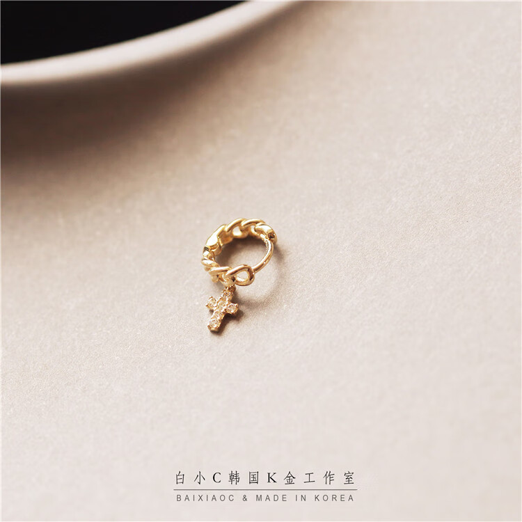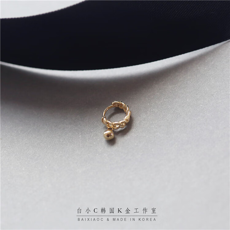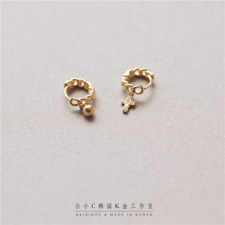 Baozha white small C Korean imported gold 14K/10K gold earrings twist chain cross gold ball pendant ear buckle earrings gold ball inner diameter 6mm 1 piece