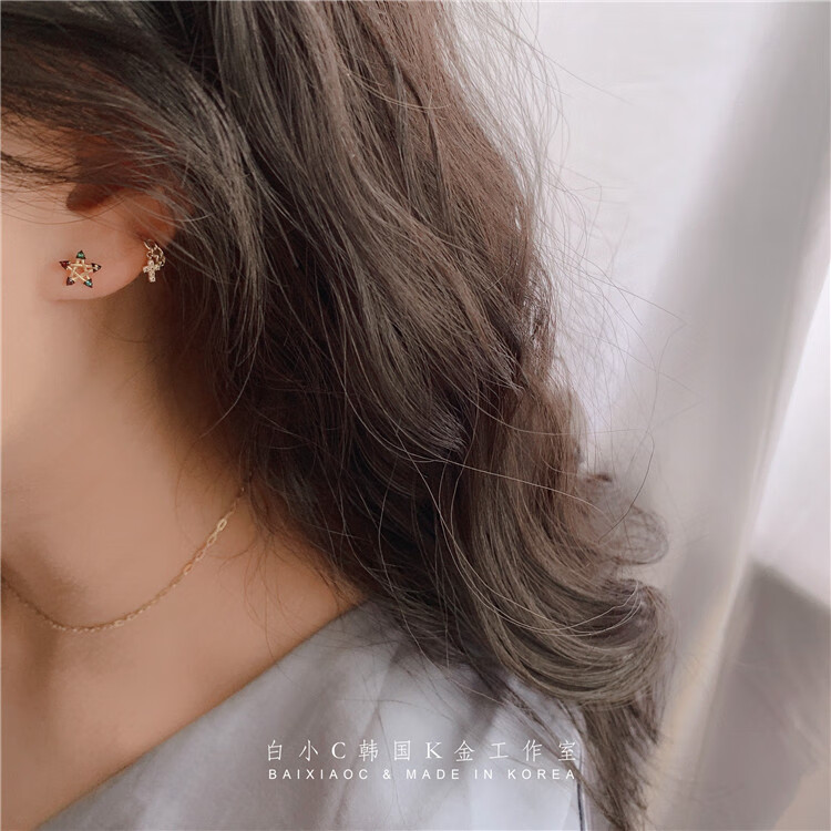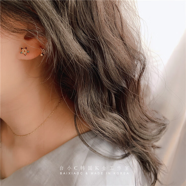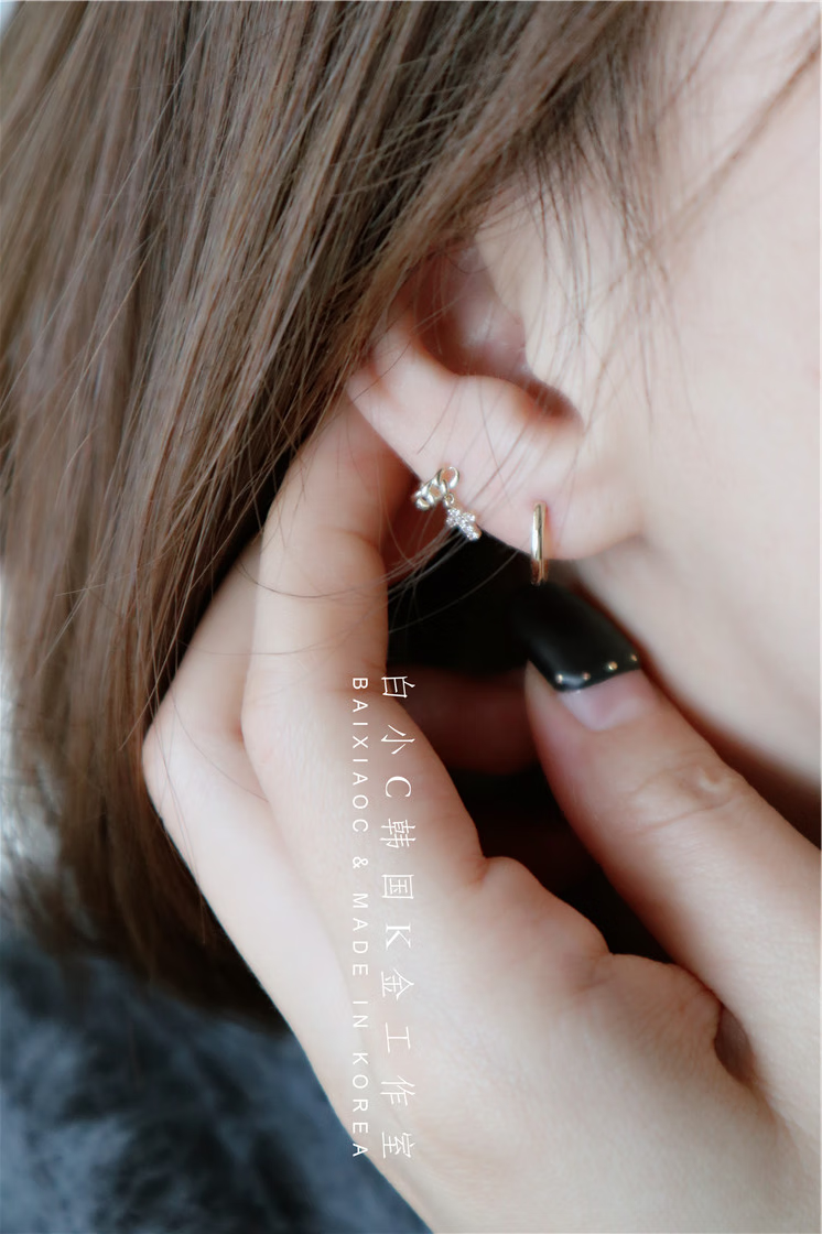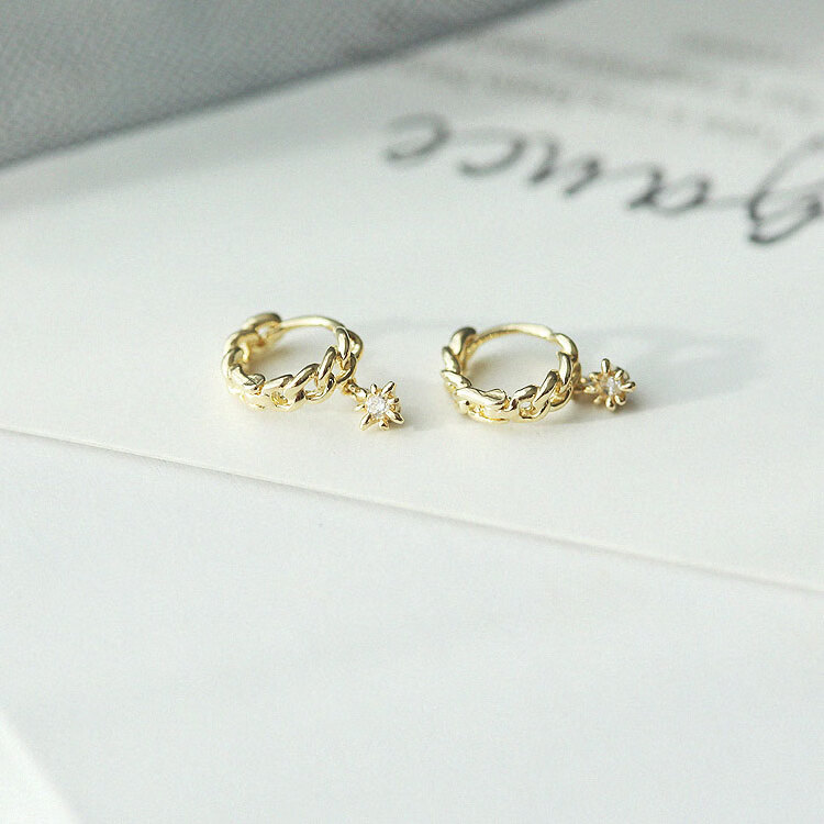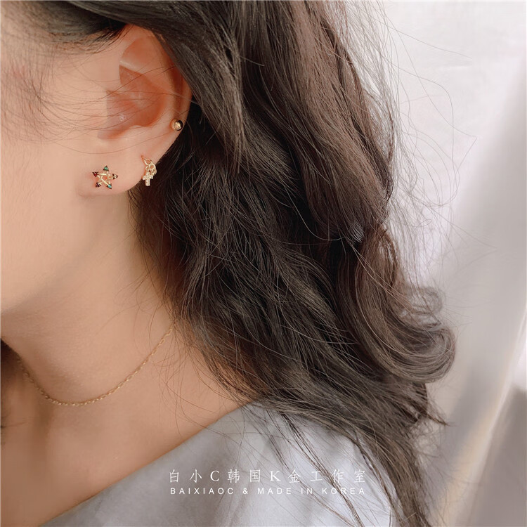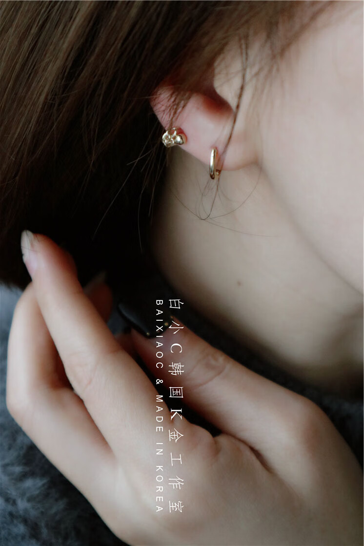Baozha white small C Korean imported gold 14K/10K gold earrings twist chain cross gold ball pendant ear buckle earrings gold ball inner diameter 6mm 1 piece