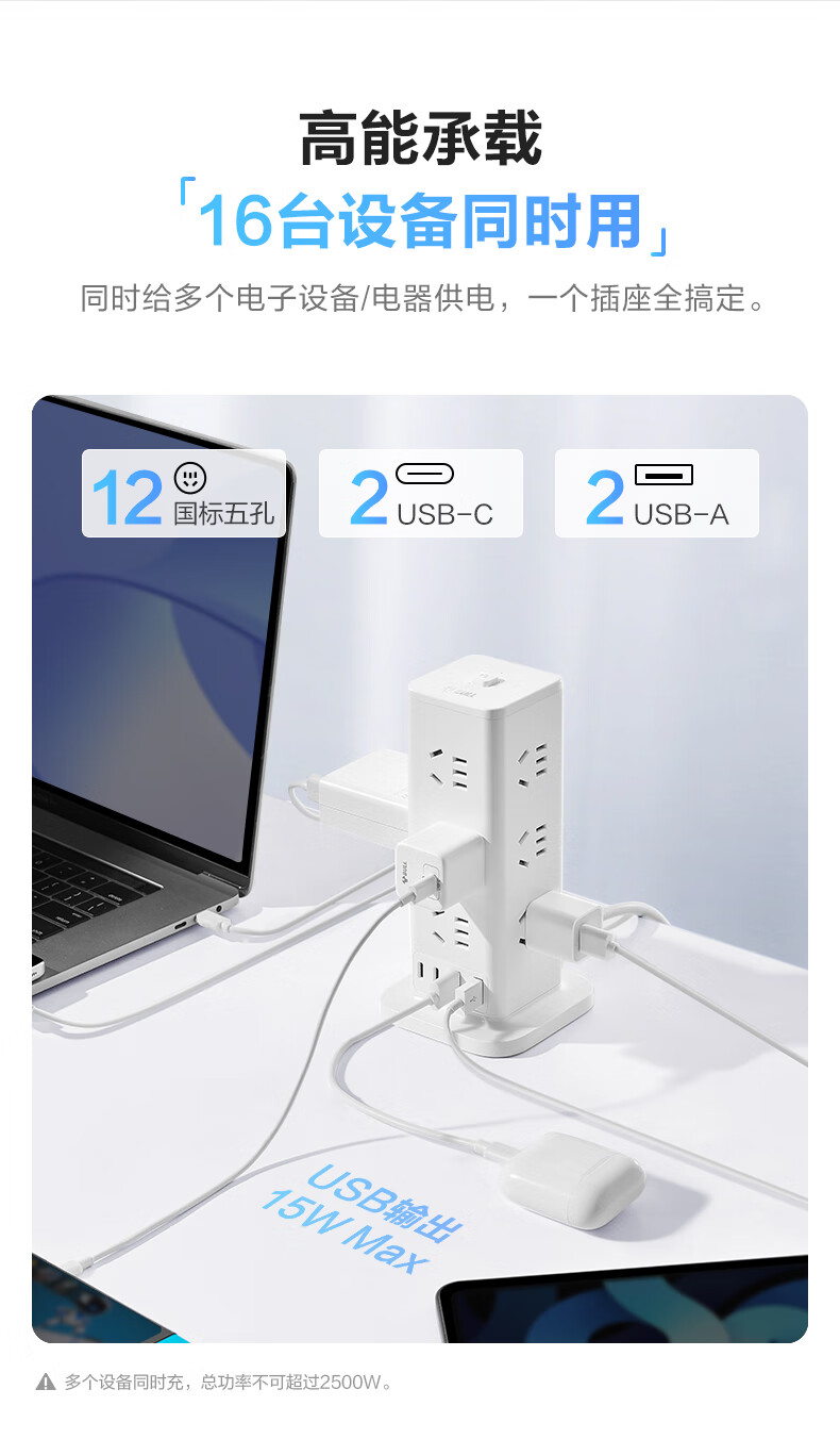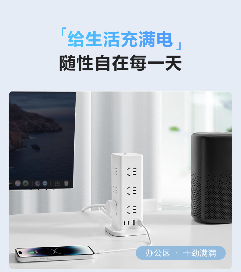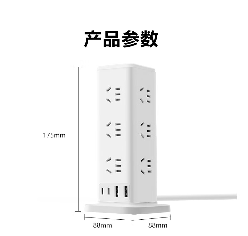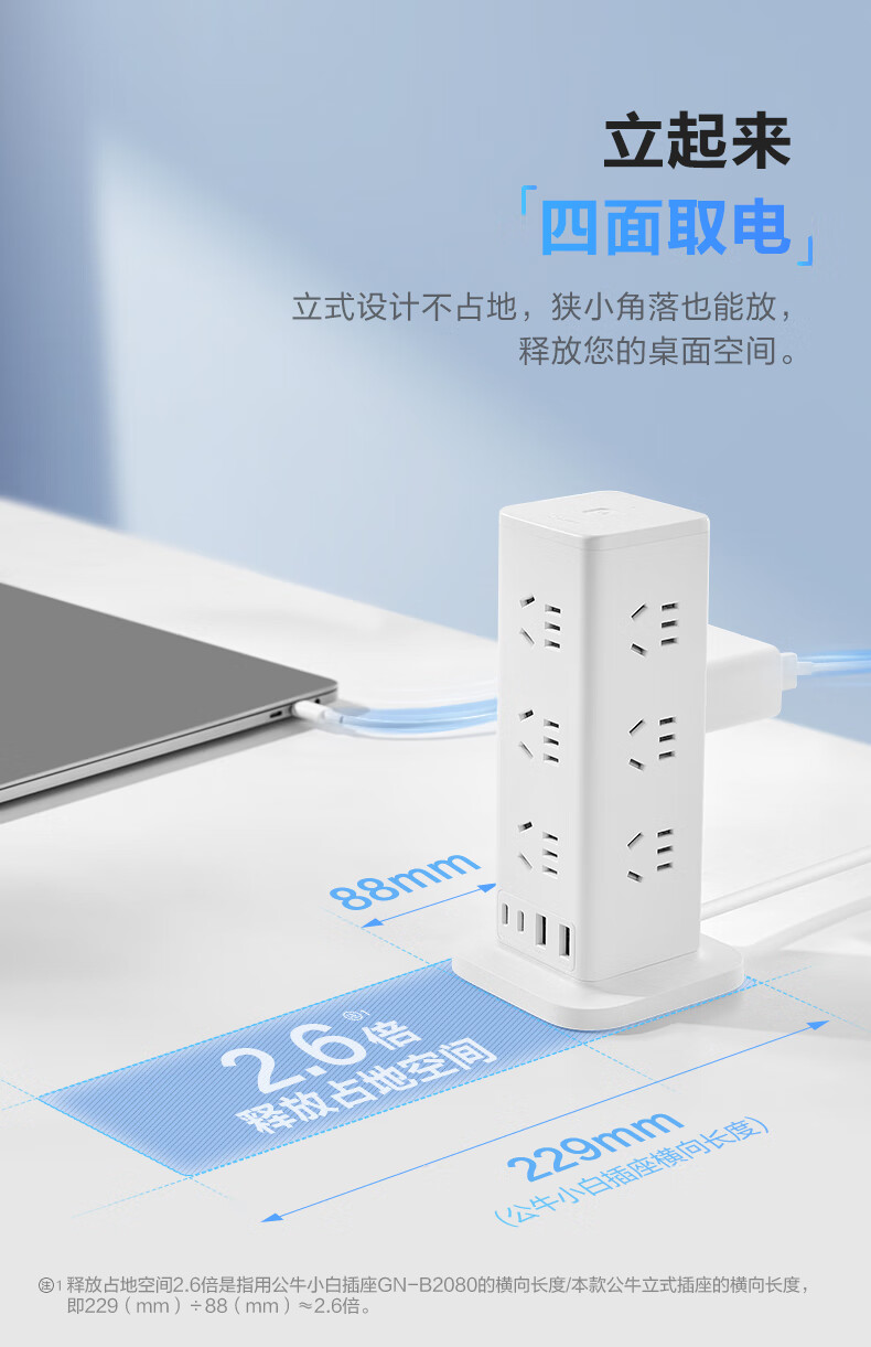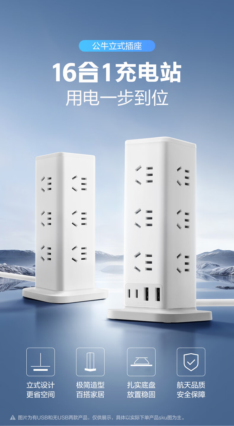 Bull vertical socket with USB multi-function charging station plug board multi-hole Rubik's cube power strip desktop power supply one turn multi-row plug multi-socket with overload protection drag strip overload protection USB + 12-bit master control 1.6 meters white