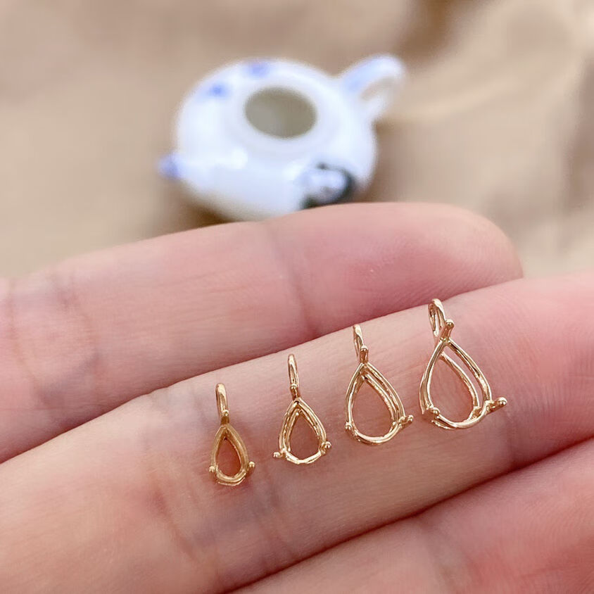 Baozha 18k gold water drop 3*5mm4*6mm 18K rose gold pendant empty support can be inlaid with V. Three colors are optional. 18K gold. Three colors are optional. Gold rose gold.