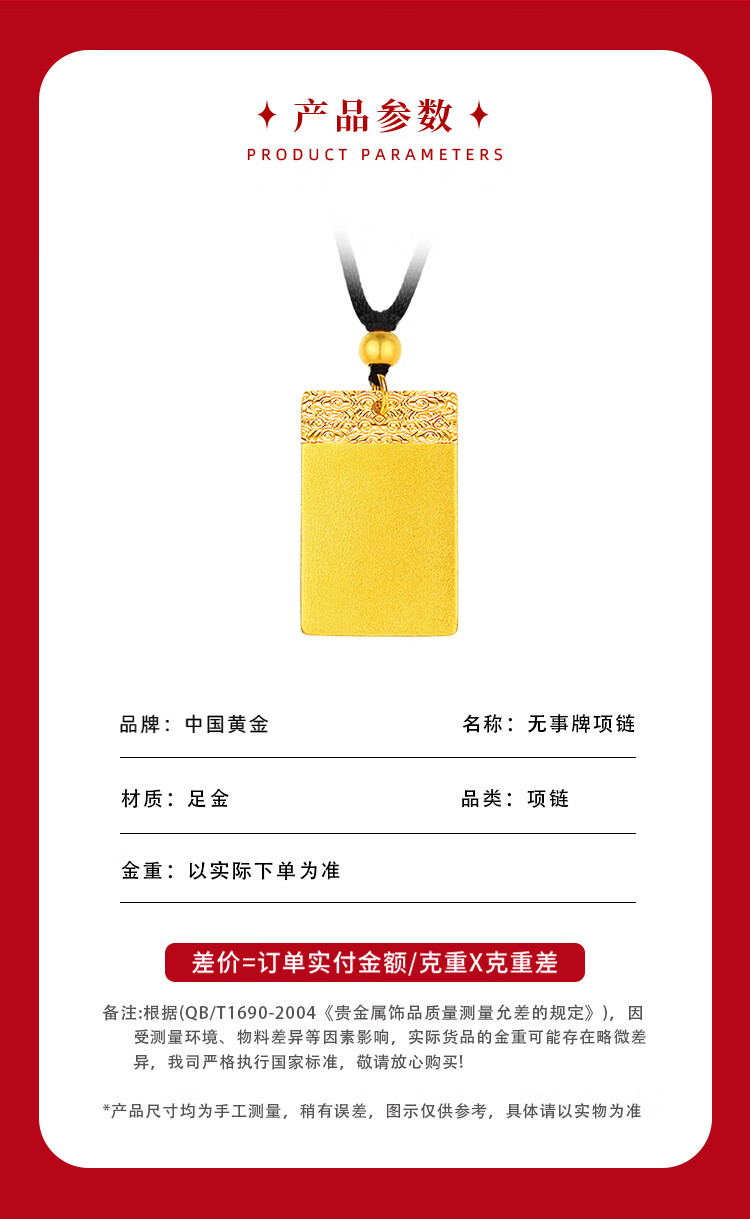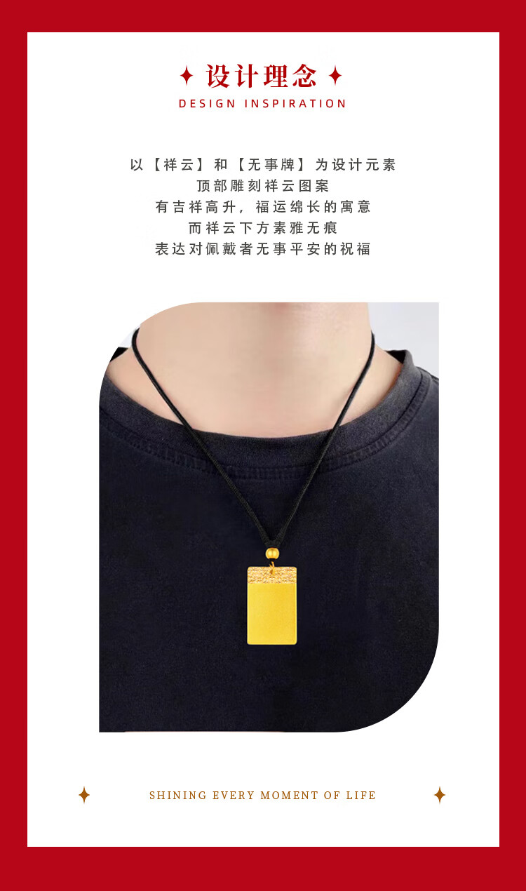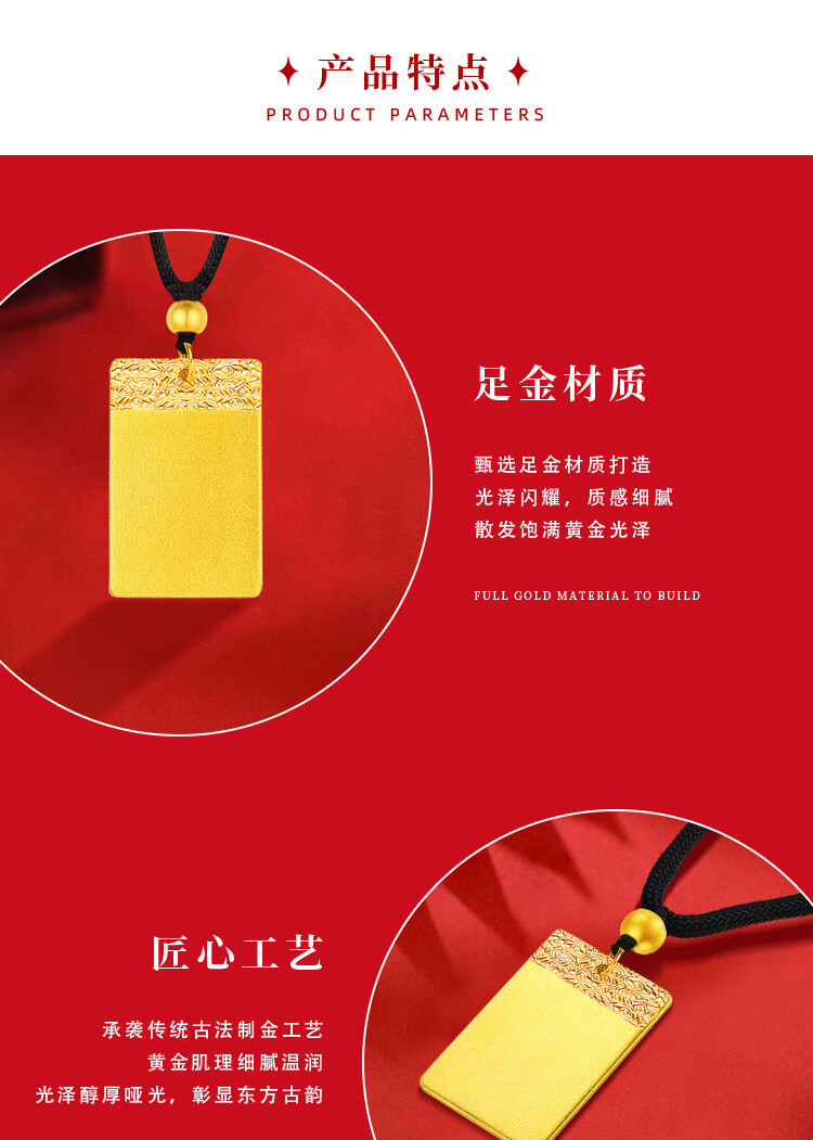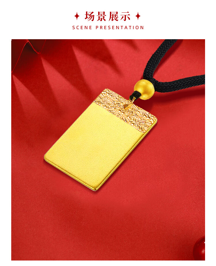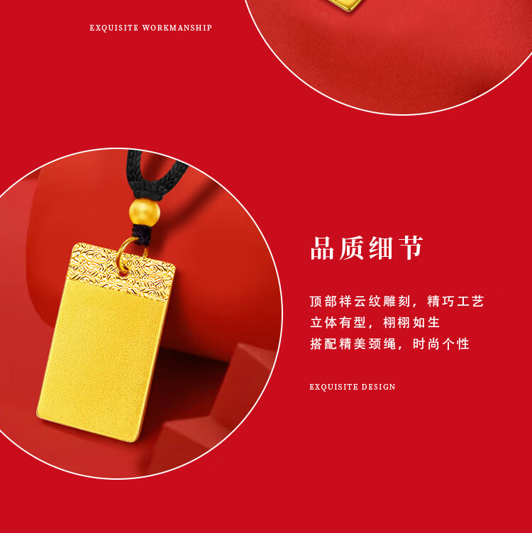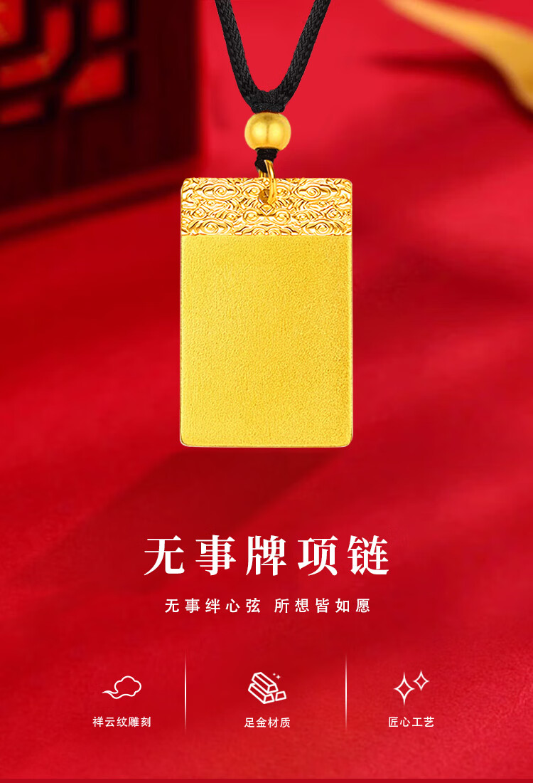 China Gold (CHINA GOLD) gold ancient Wushi brand necklace for women three-dimensional solid gold pendant Christmas and New Year birthday gift for girlfriend and wife Wushi brand necklace black rope 2.74g