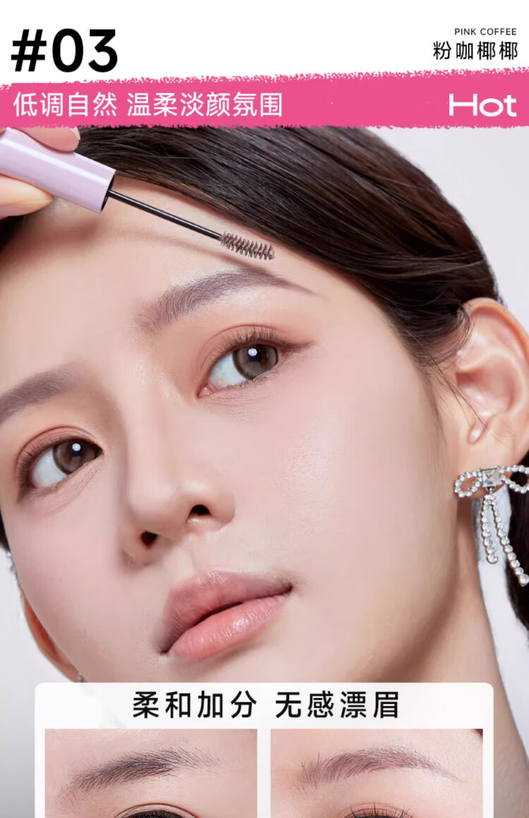 Rock Sweetheart ROCK SWEET Velvet Mist Eyebrow Cream Waterproof Long-lasting Non-fading Quick-drying Natural Non-fading Eyebrow Cream Wild Eyebrow Gift 03# Pink Coconut (Pink Brown)