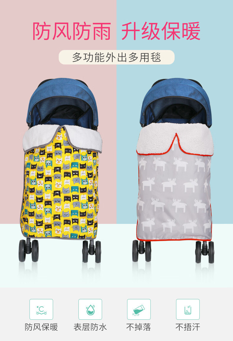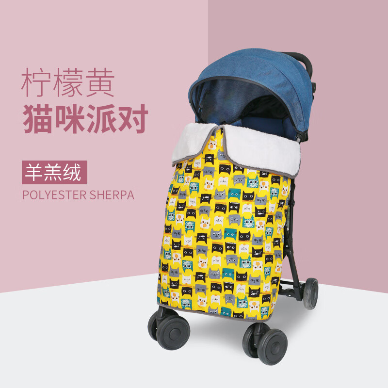 Qiaobeibi stroller windproof blanket stroller cover blanket baby universal baby walking artifact is winter windproof warm blanket thickened in autumn and winter Cat Party lemon yellow 2024 upgraded and thickened
