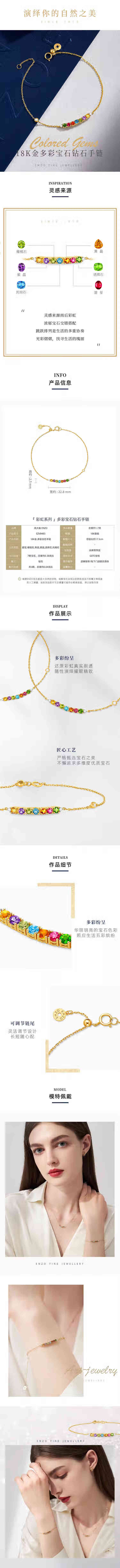 Beiyou Rainbow Series 18K Gold Colorful Gemstone Diamond Bracelet for Women 18K Gold Colorful Gemstone Diamond Bracelet 17.5cm