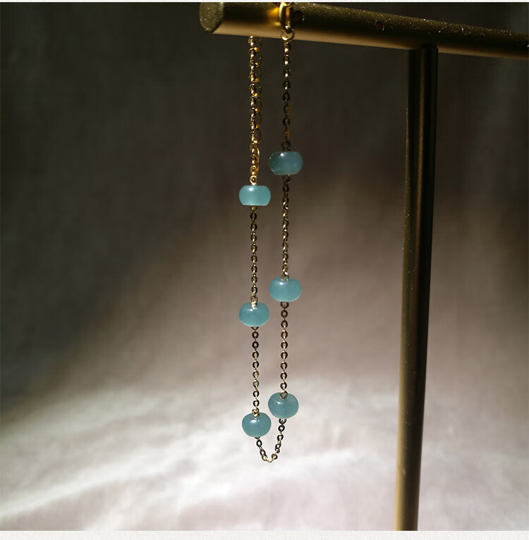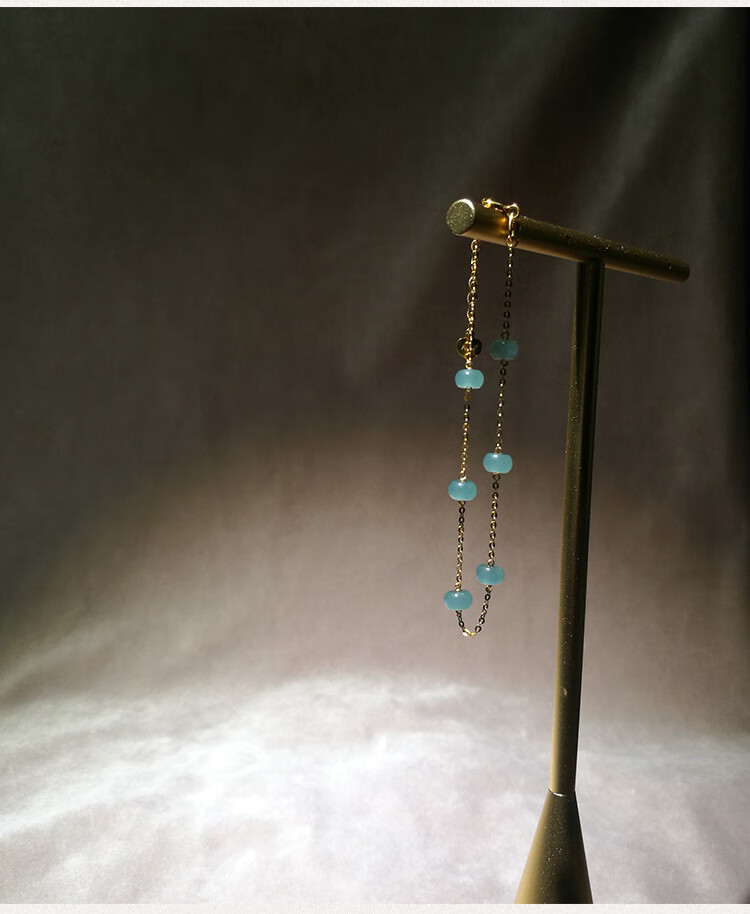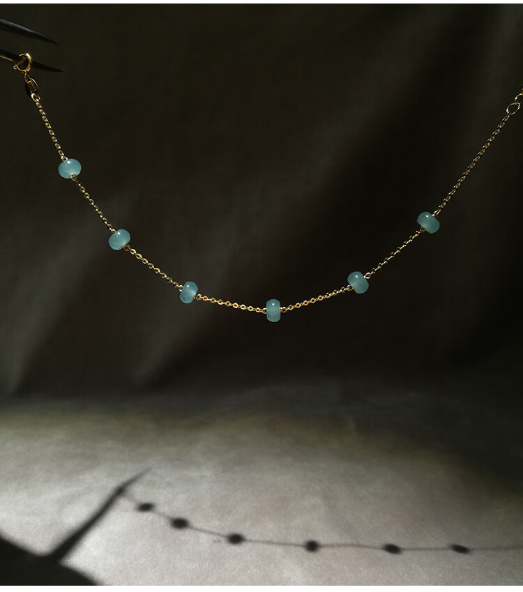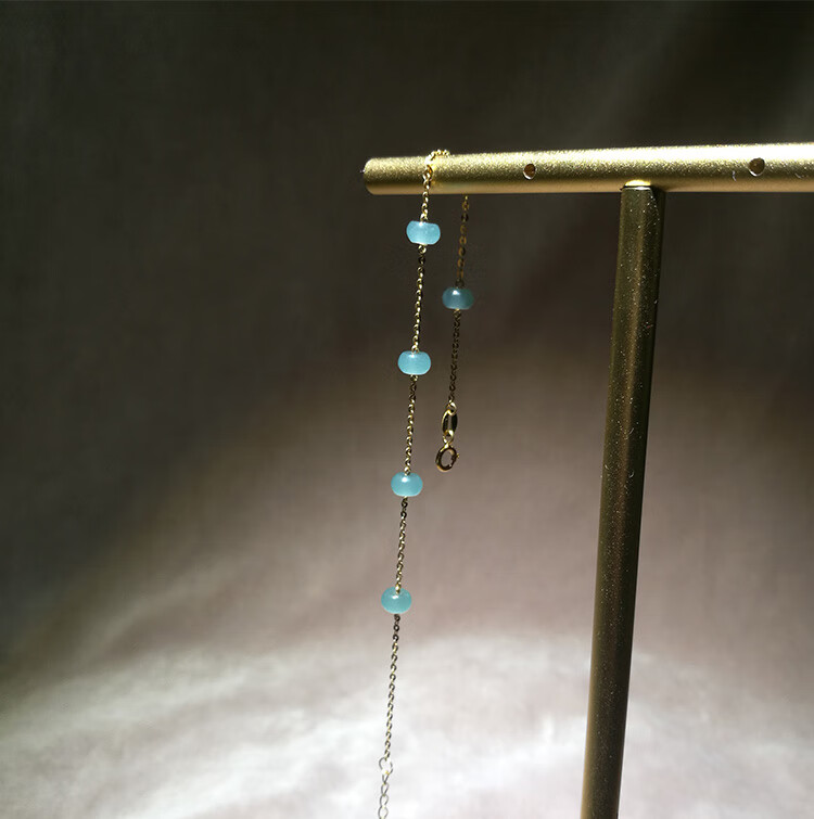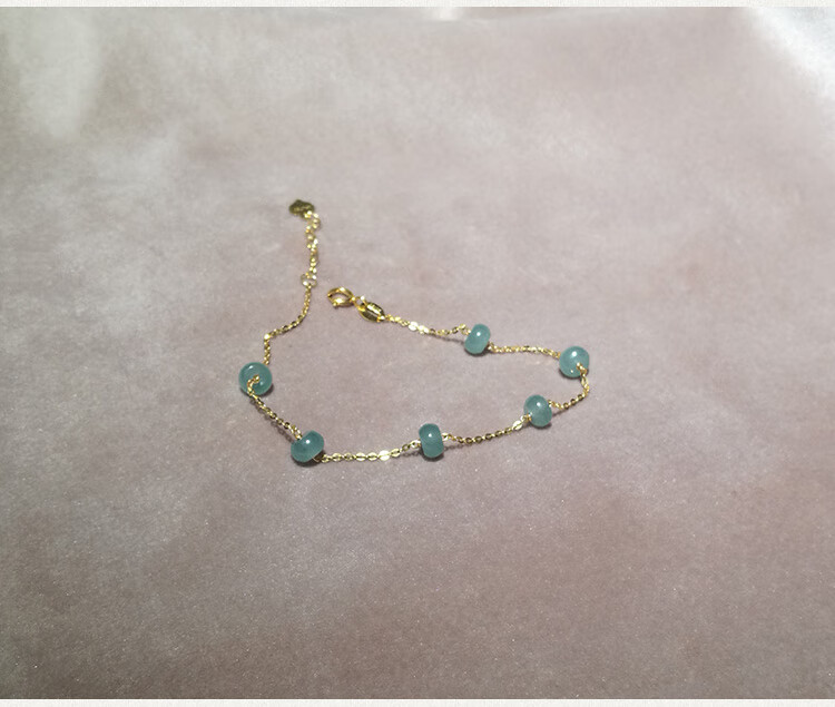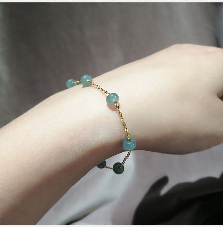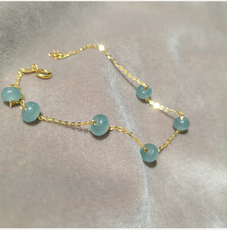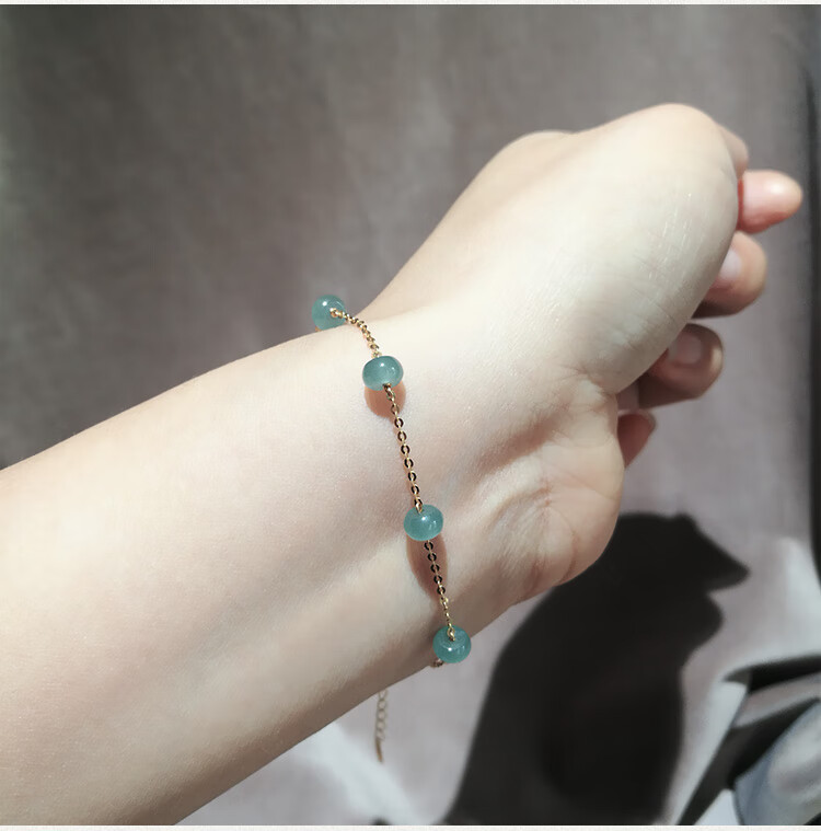 Beyou 18k gold ice blue water jade A-grade abacus bead bracelet adjustable light luxury simple versatile hand jewelry female gift hand circumference 15