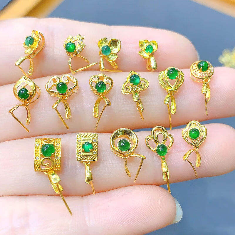 Peiyou pure 18K gold buckle head thickened clip melon seed buckle jade jade top bead inlaid K gold pendant buckle necklace pendant 1 small three-petal lotus 18K dark yellow (10% off for fake ones)