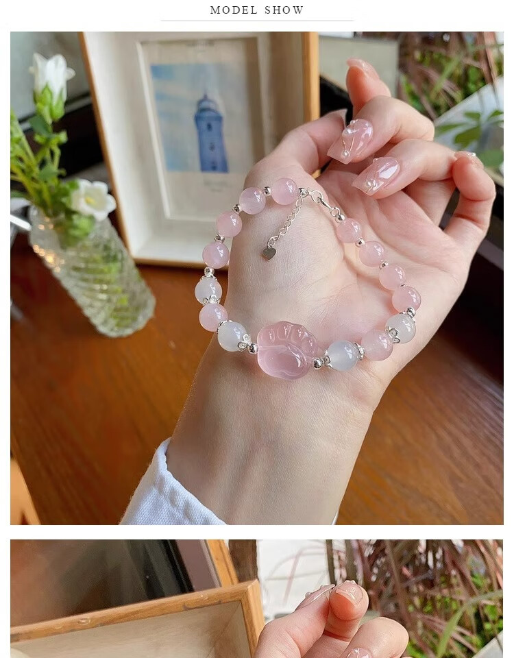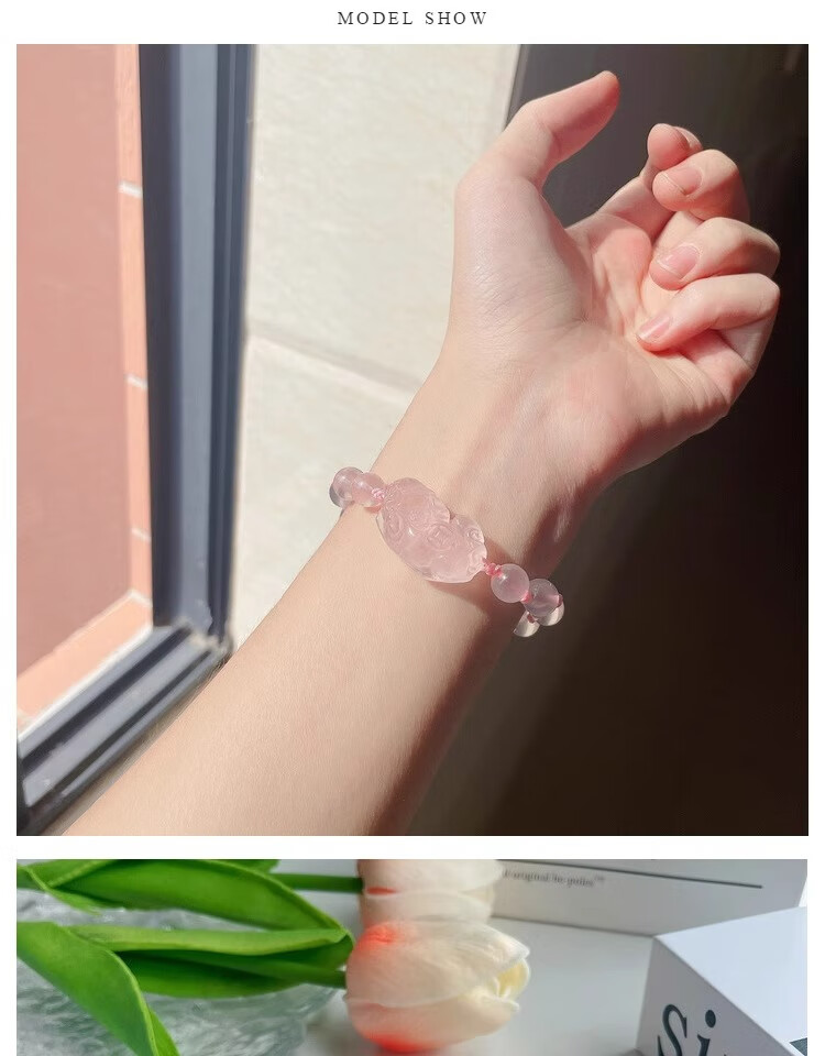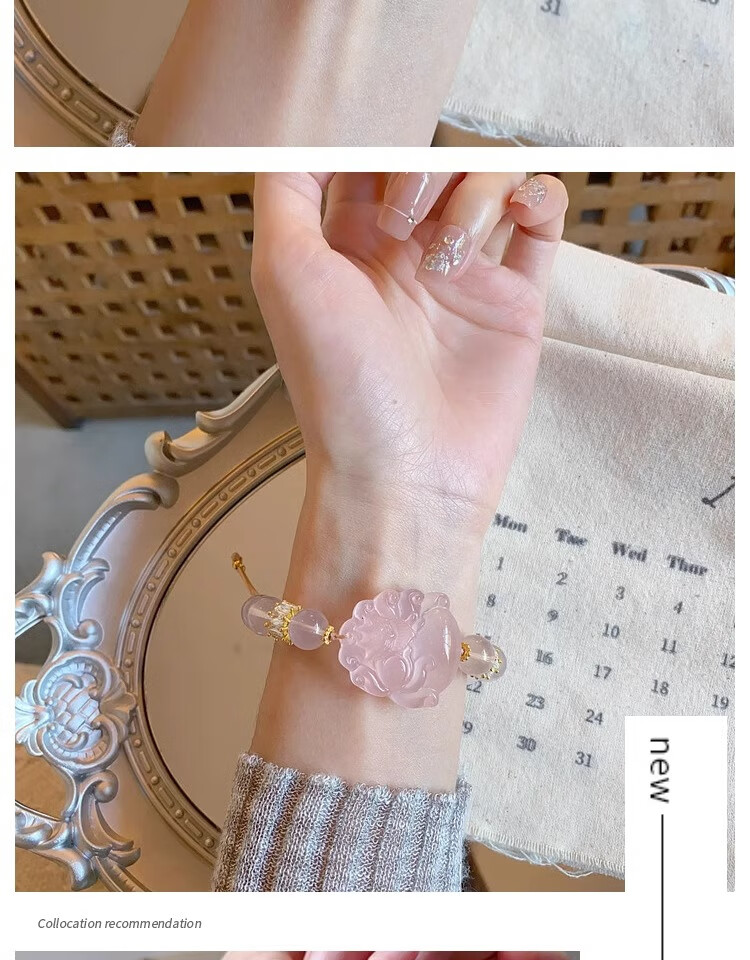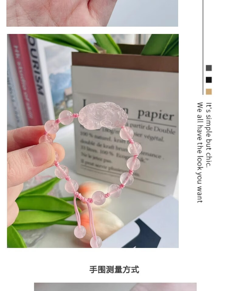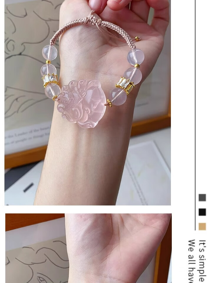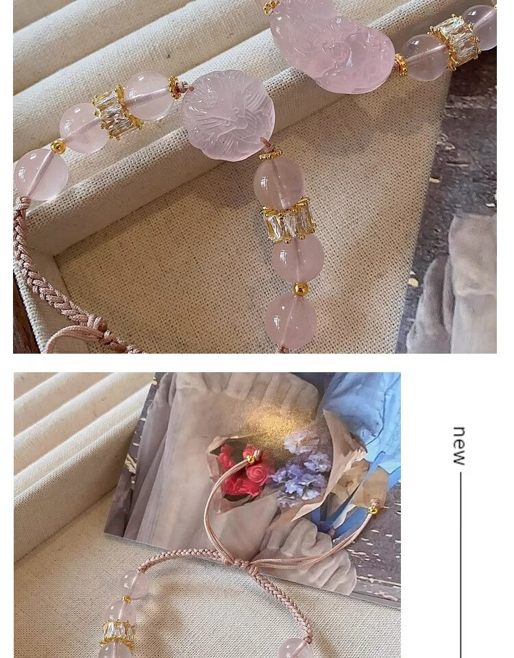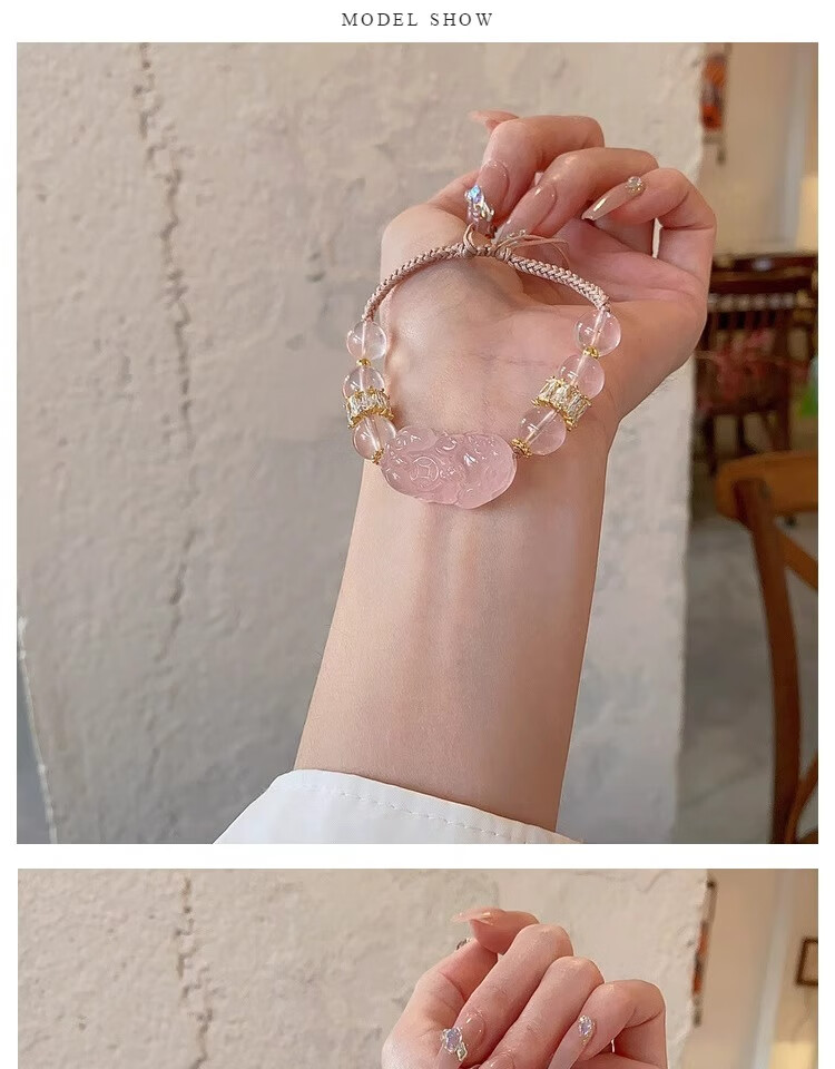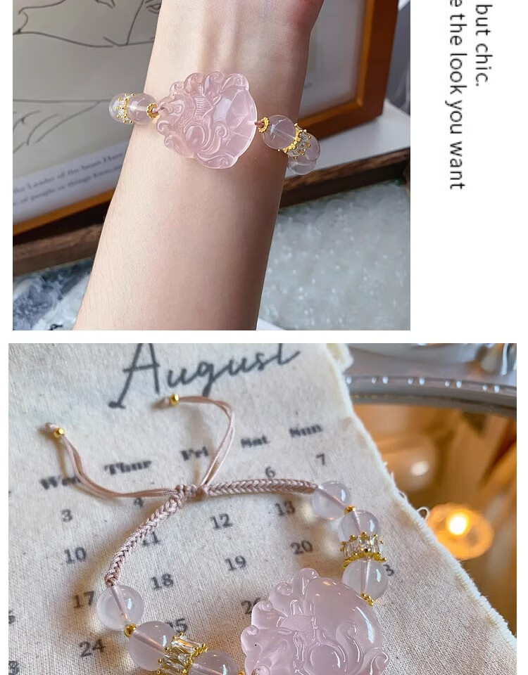 Pink crystal bracelet for women, peach blossom awakening lion, Pixiu braided rope, pink crystal bracelet, a niche gift for girlfriends and besties, Pixiu style 15cm