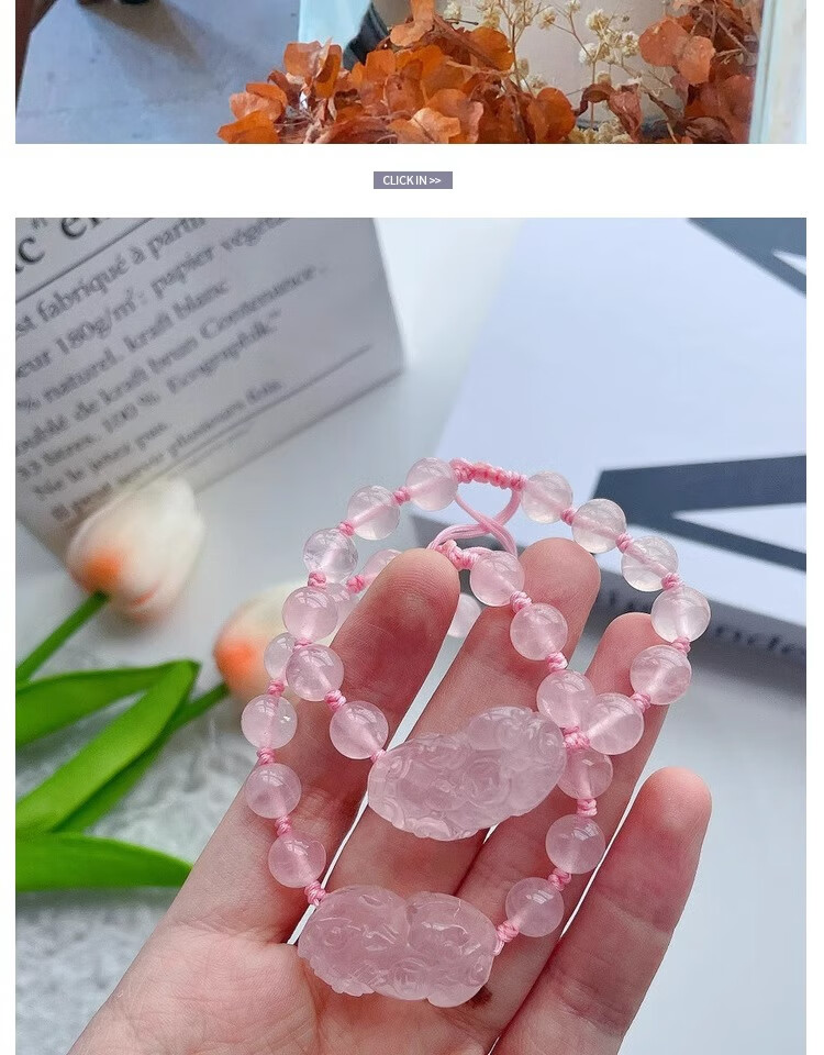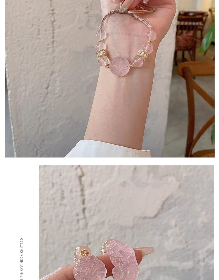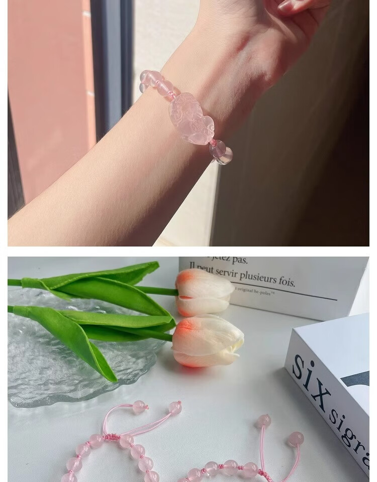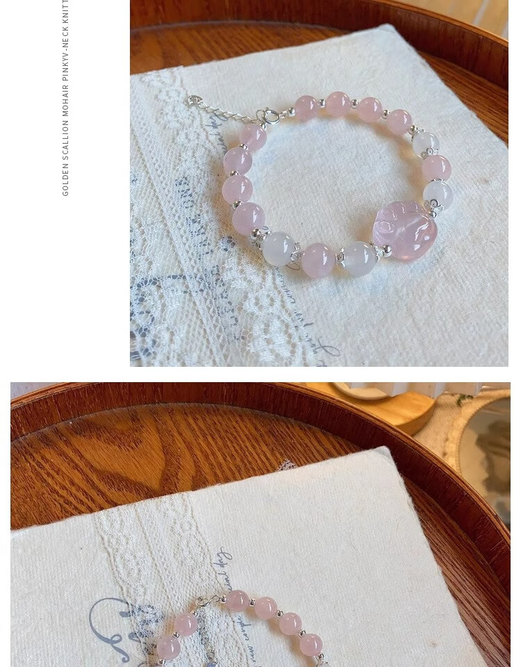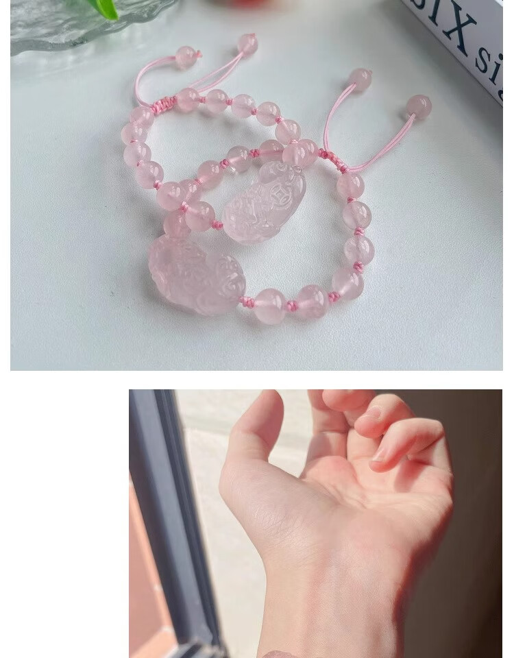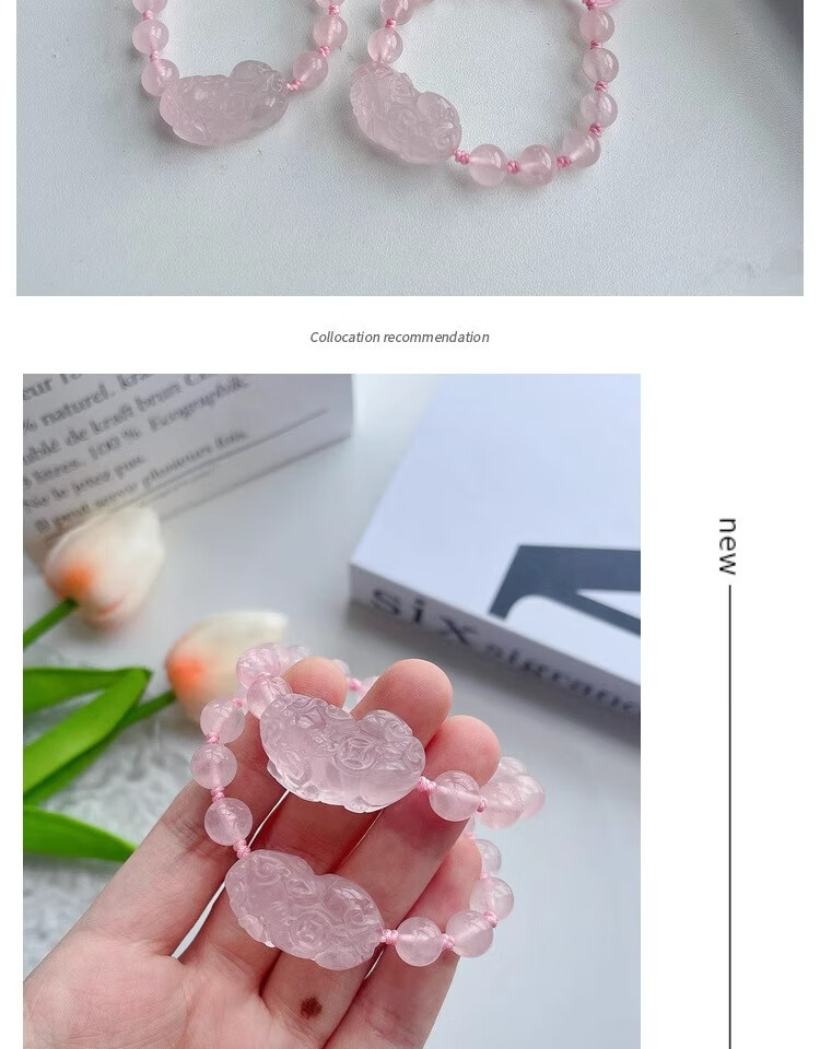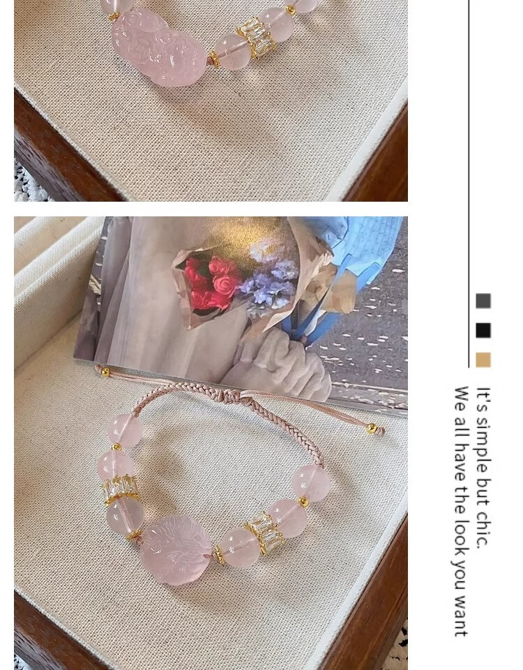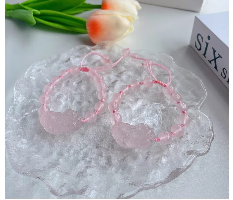 Pink crystal bracelet for women, peach blossom awakening lion, Pixiu braided rope, pink crystal bracelet, a niche gift for girlfriends and besties, Pixiu style 15cm