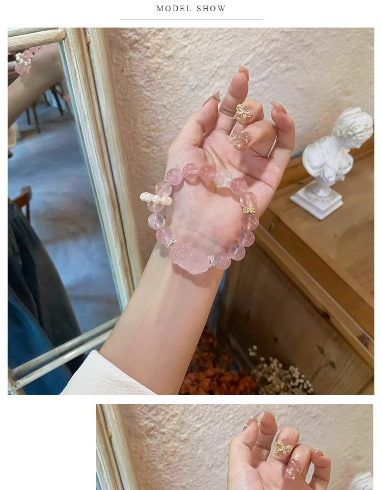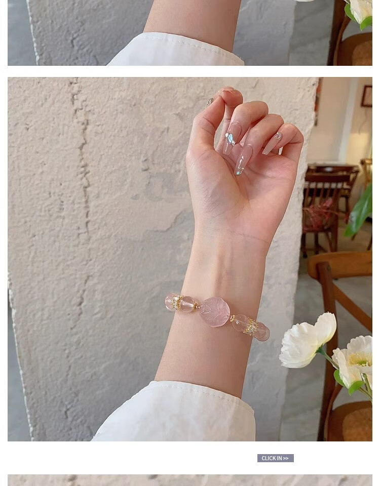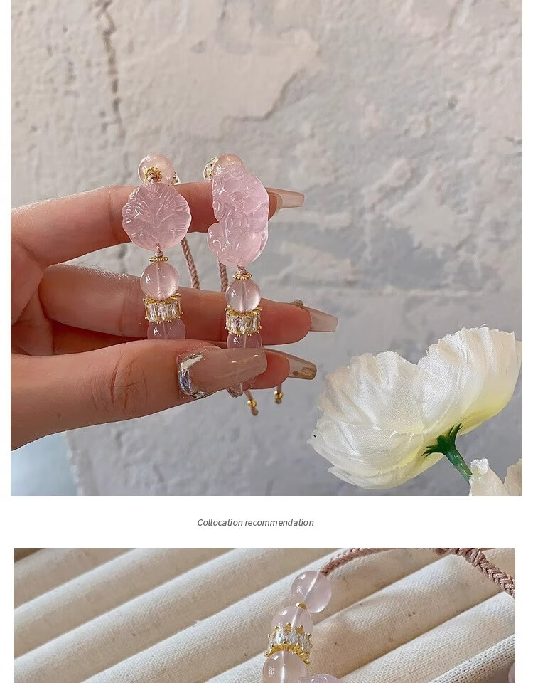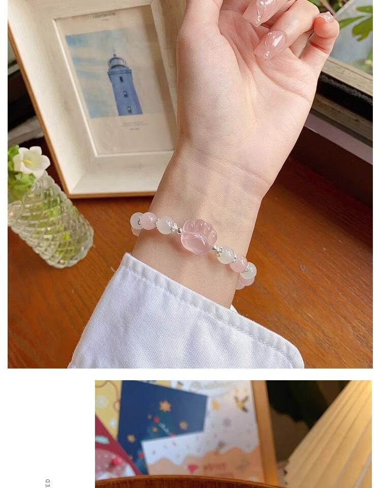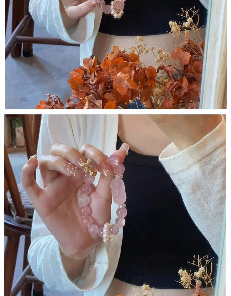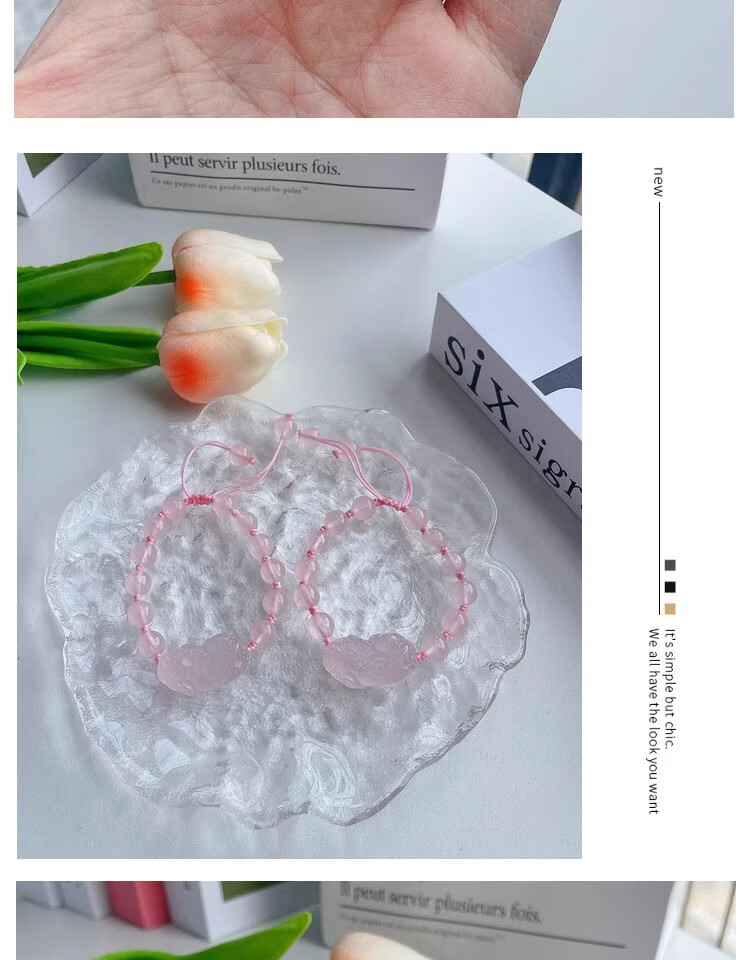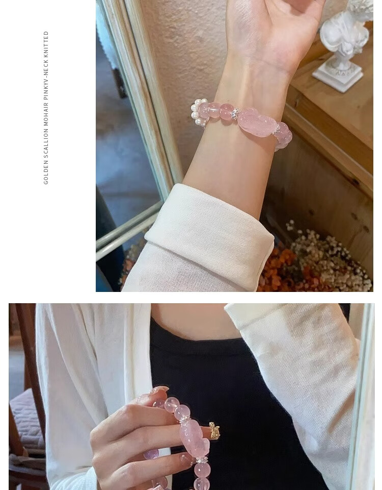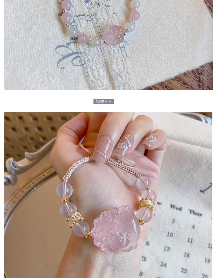 Pink crystal bracelet for women, peach blossom awakening lion, Pixiu braided rope, pink crystal bracelet, a niche gift for girlfriends and besties, Pixiu style 15cm