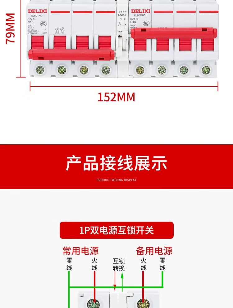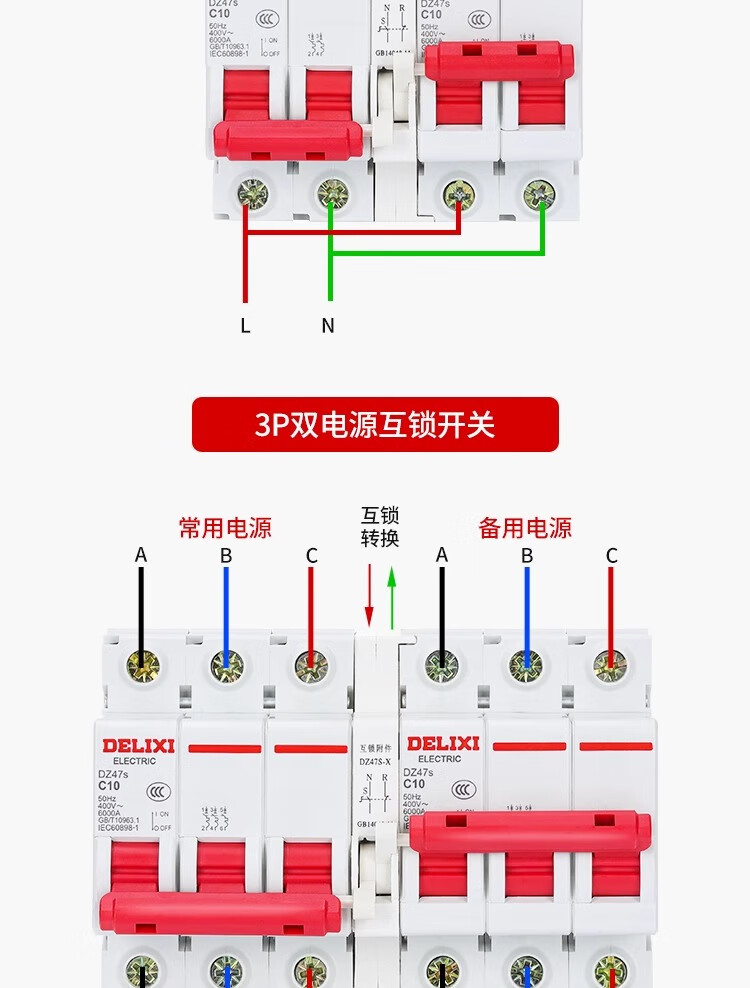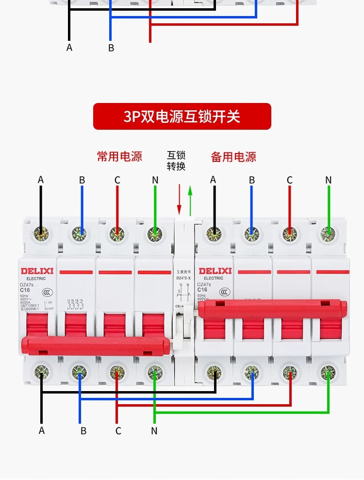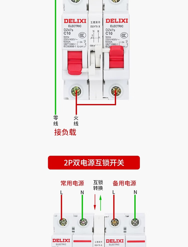 Delixi dual power supply two-way switching controller air switch 220V switch air interlock automatic conversion manual 63A 2P