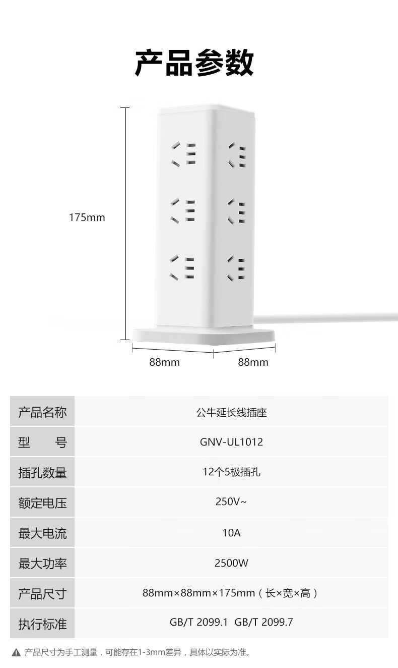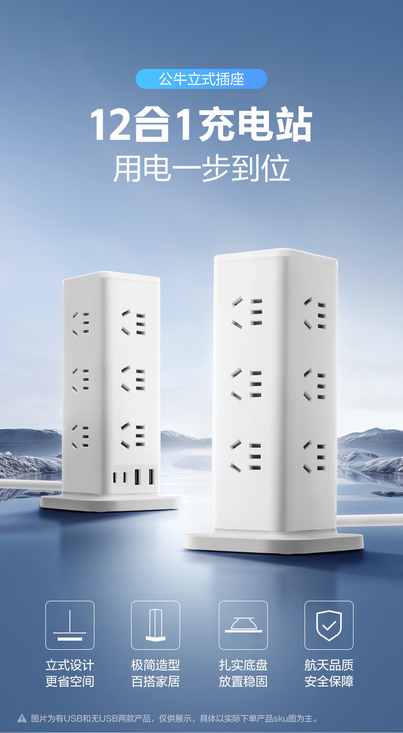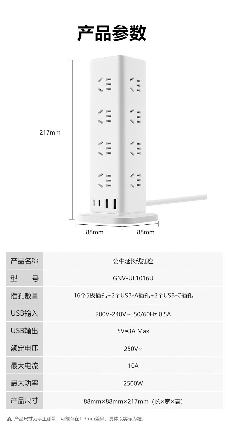 Bull vertical socket desktop power strip drag strip office three-dimensional socket multi-purpose plug-in multi-function plug-in board with line USB charging plug-in tower type wiring board 1.6 meters UL1012U 16 jack/with USB