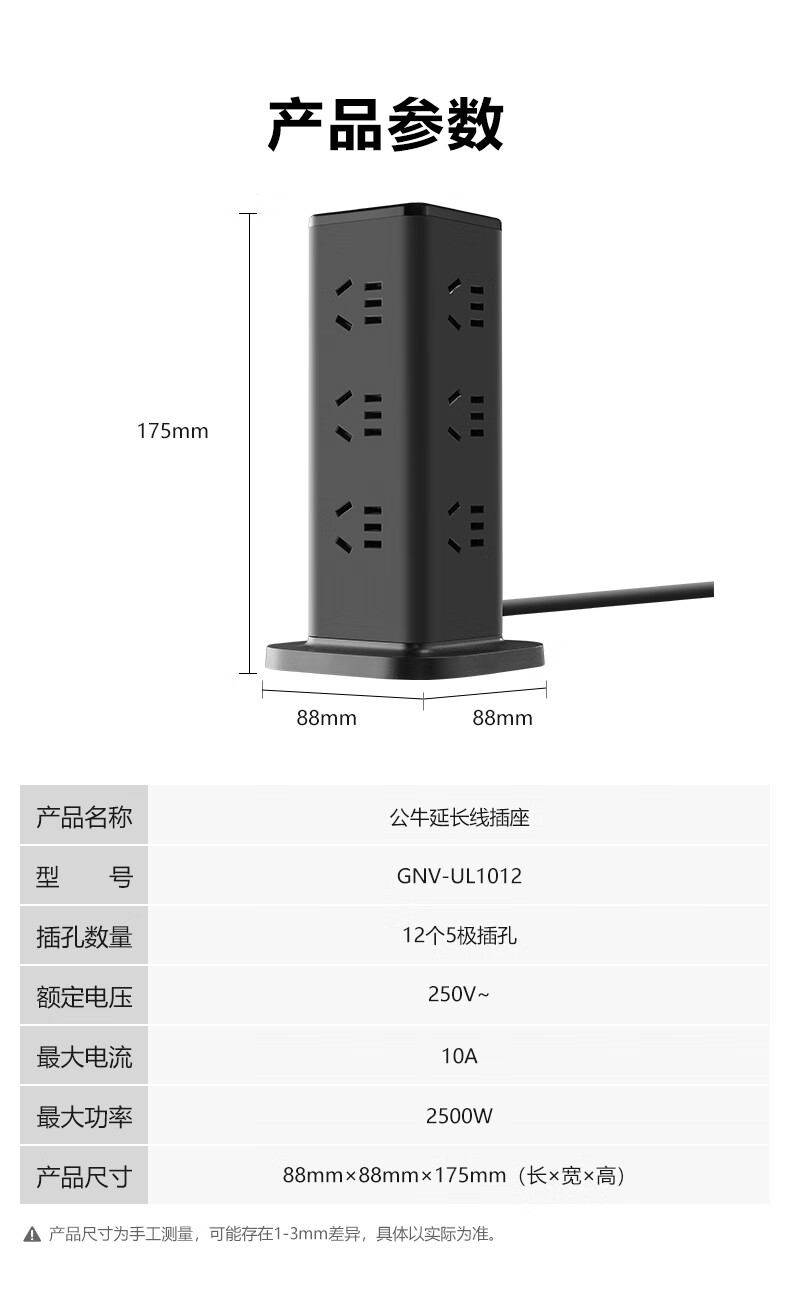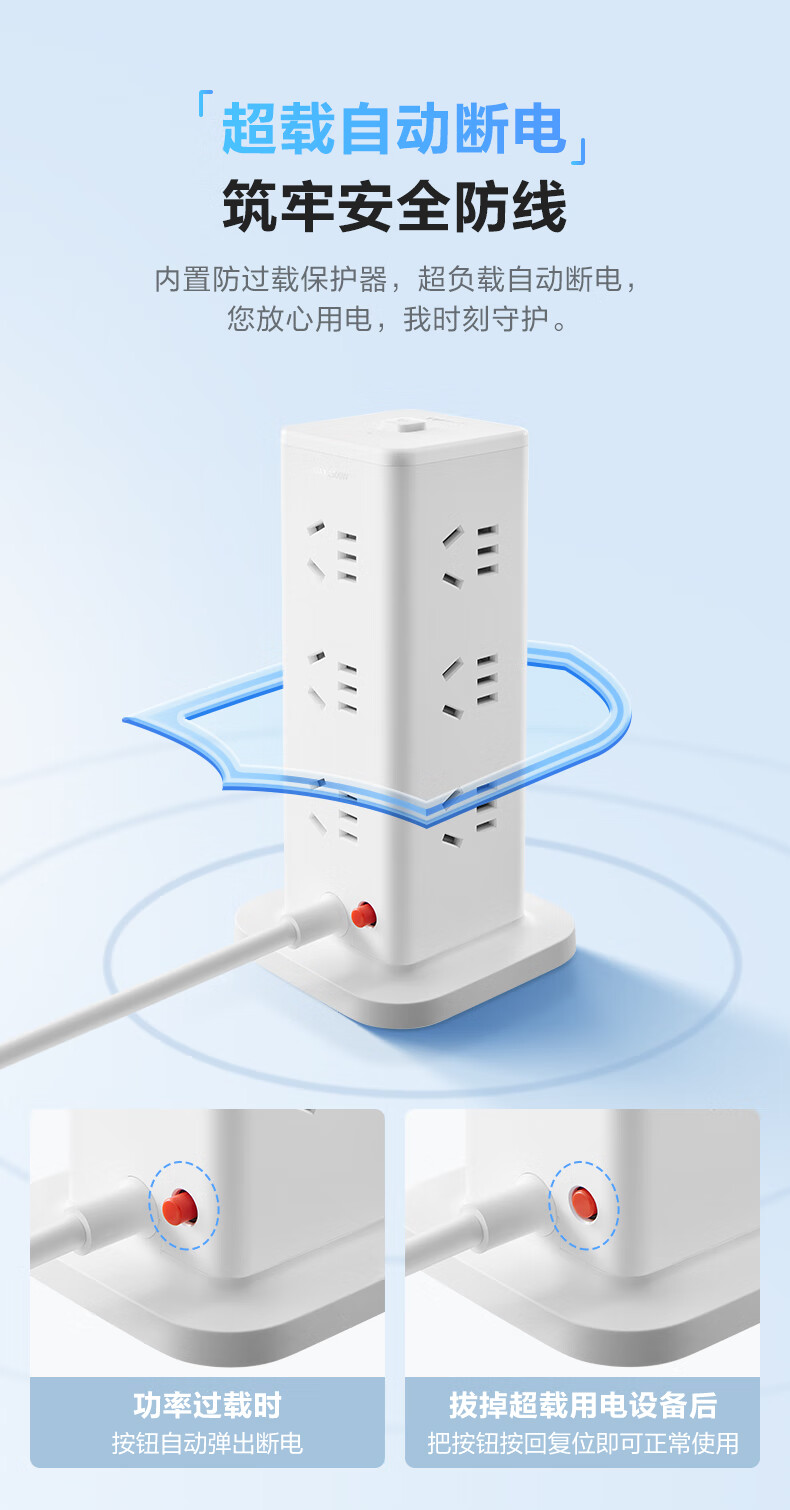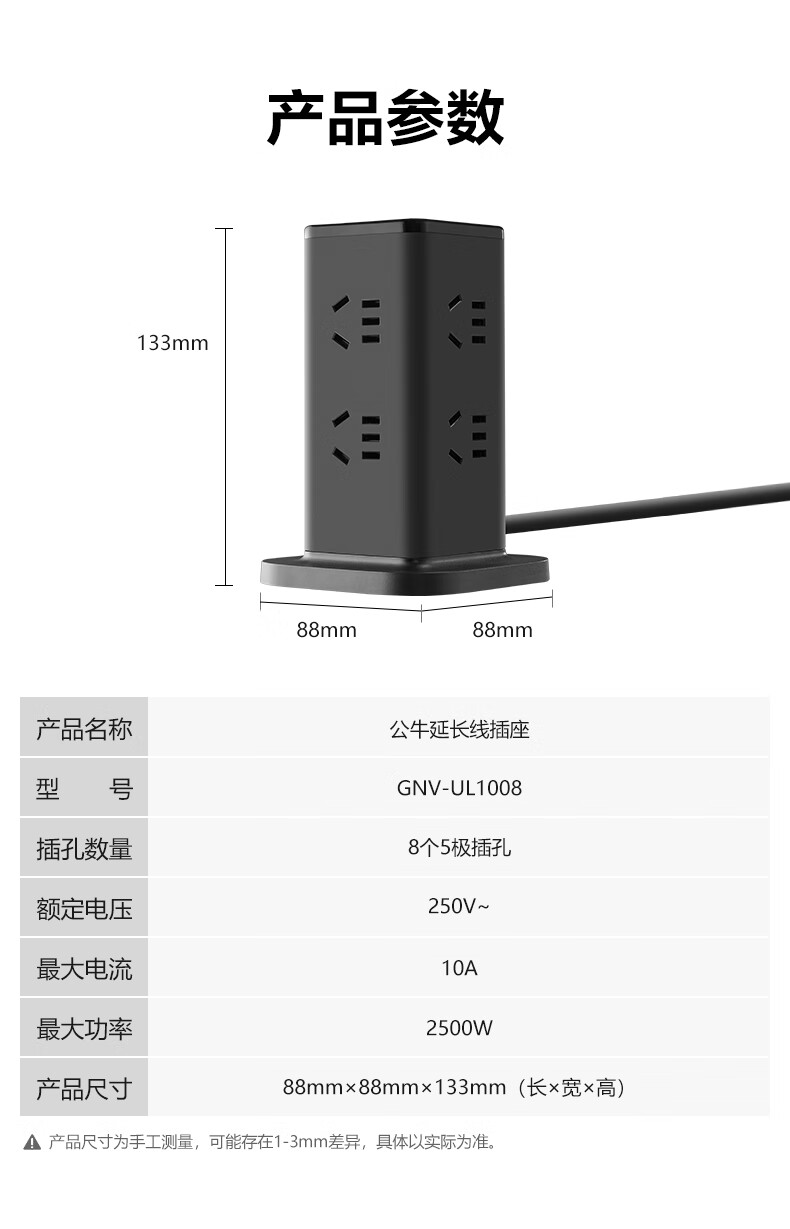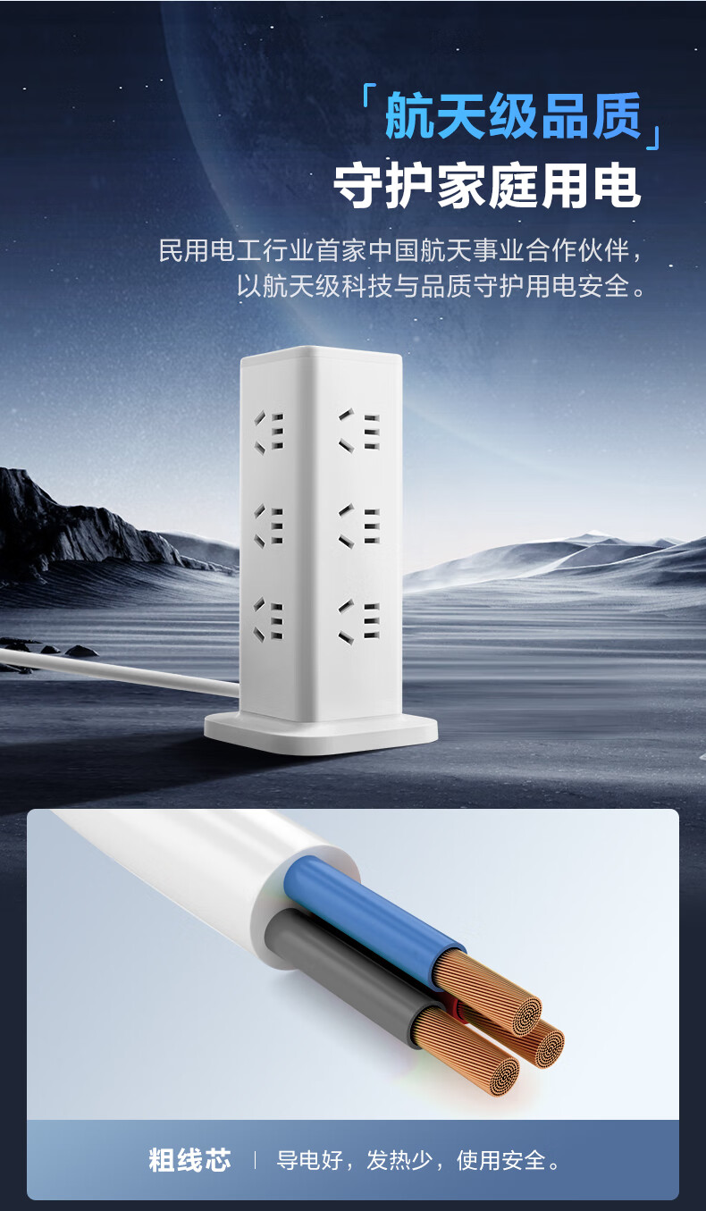 Bull vertical socket desktop power strip drag strip office three-dimensional socket multi-purpose plug-in multi-function plug-in board with line USB charging plug-in tower type wiring board 1.6 meters UL1012U 16 jack/with USB