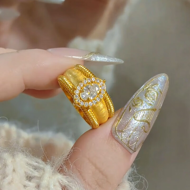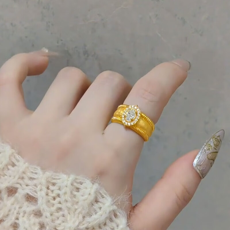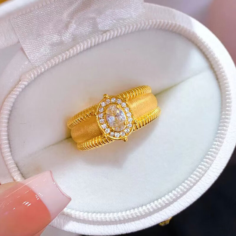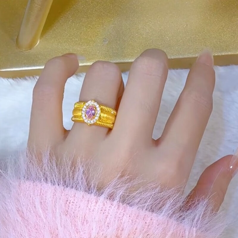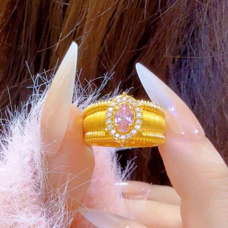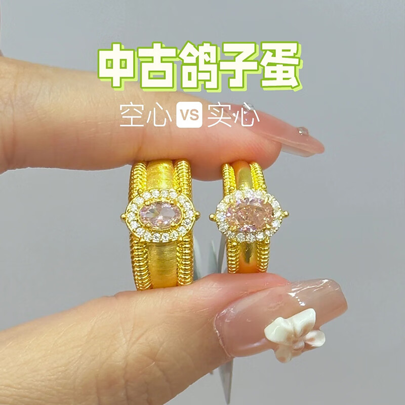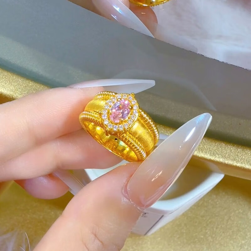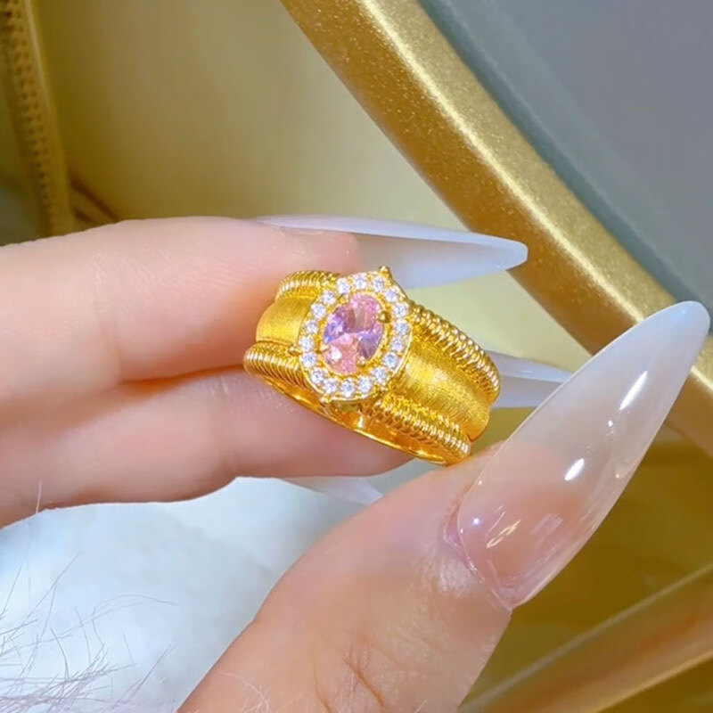 Ruinuo Gold Medieval Pigeon Egg Ring Women's 999 Pure Gold Niche Design Closed Ring Birthday Gift for Girlfriend Gold Ring Pink Gold Weight About 3g/Number 10-19 Available