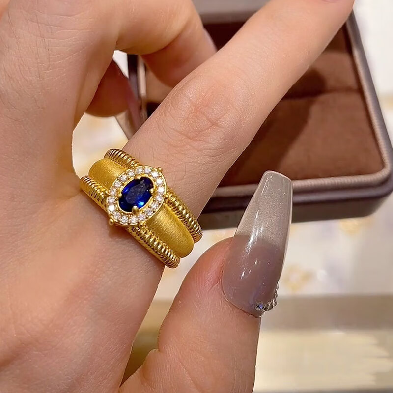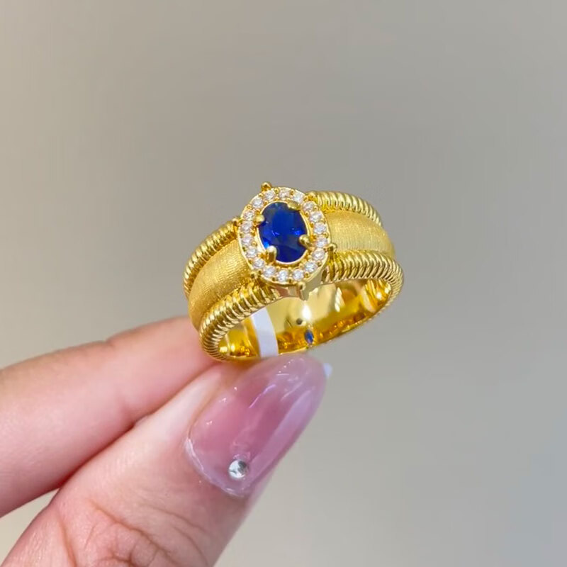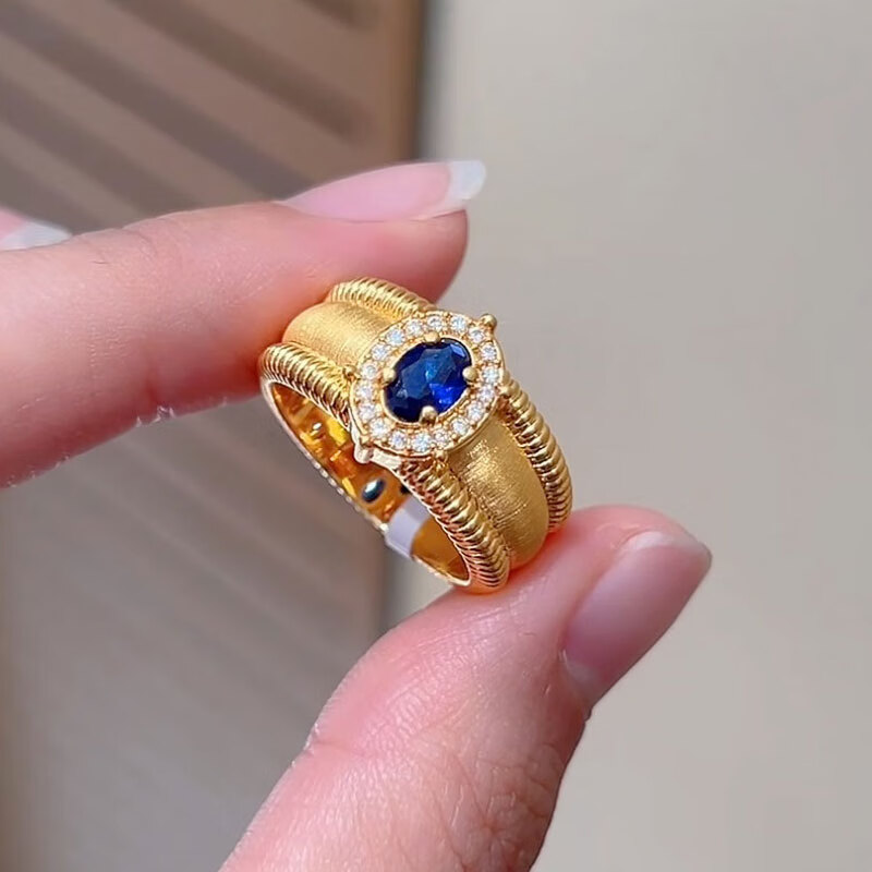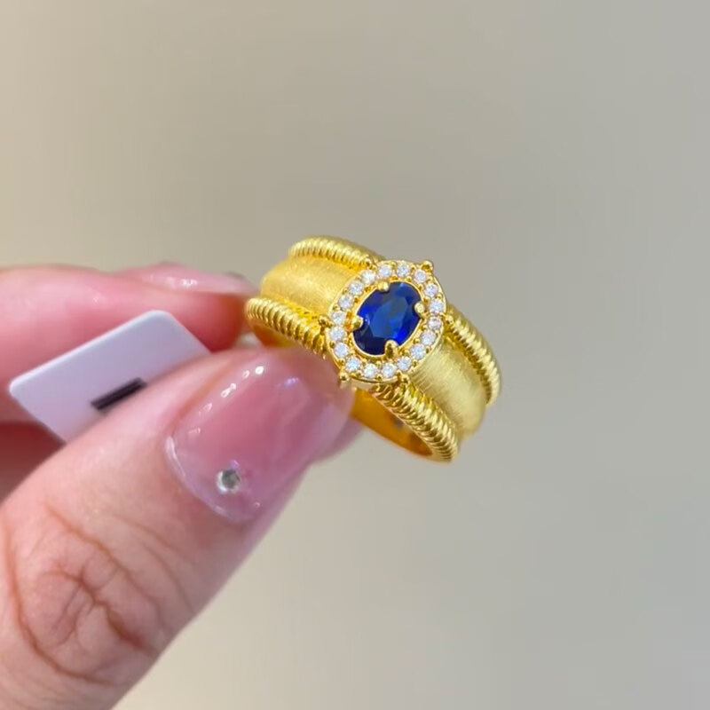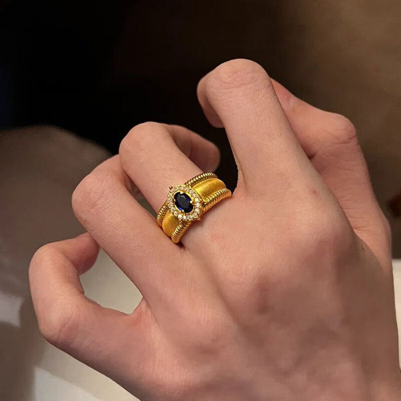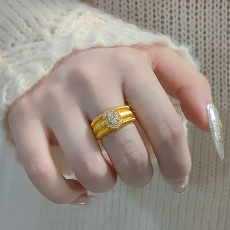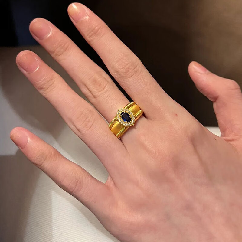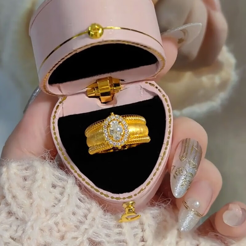 Ruinuo Gold Medieval Pigeon Egg Ring Women's 999 Pure Gold Niche Design Closed Ring Birthday Gift for Girlfriend Gold Ring Pink Gold Weight About 3g/Number 10-19 Available