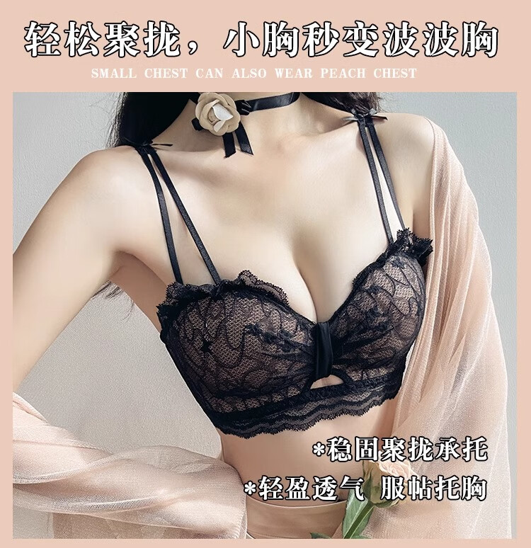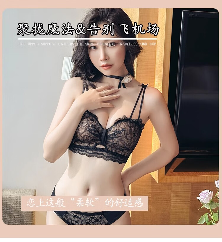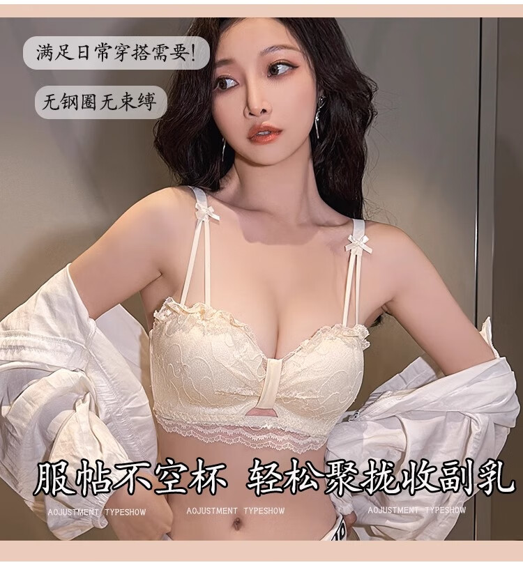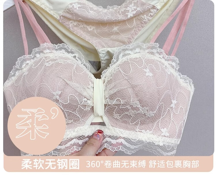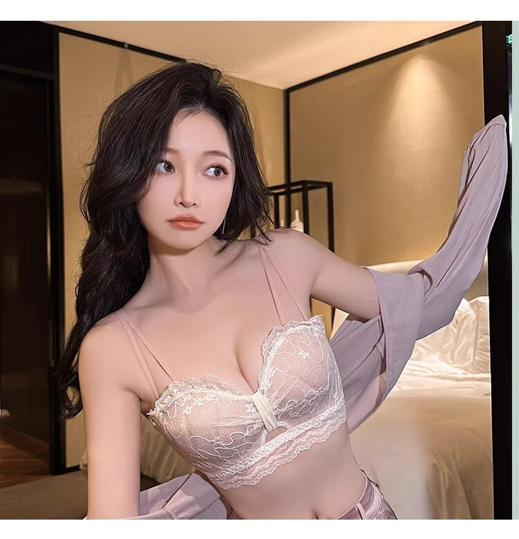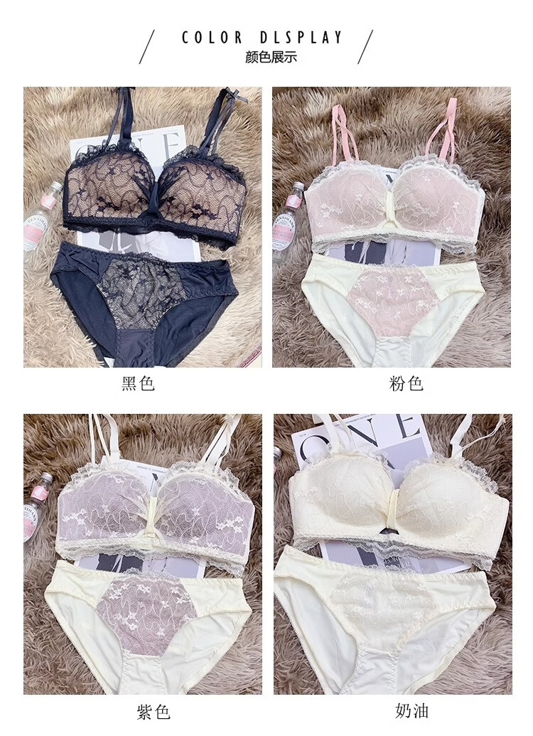 Adore Autumn and Summer Sexy Lace Zodiac Year Underwear Women's Small Breast Gathering to Show Bigger Side Breasts Anti-Sagging Wireless Bra Set Lilac Purple Set 38/85B