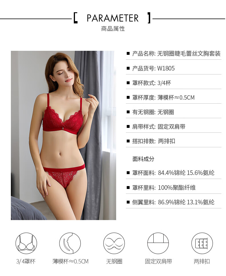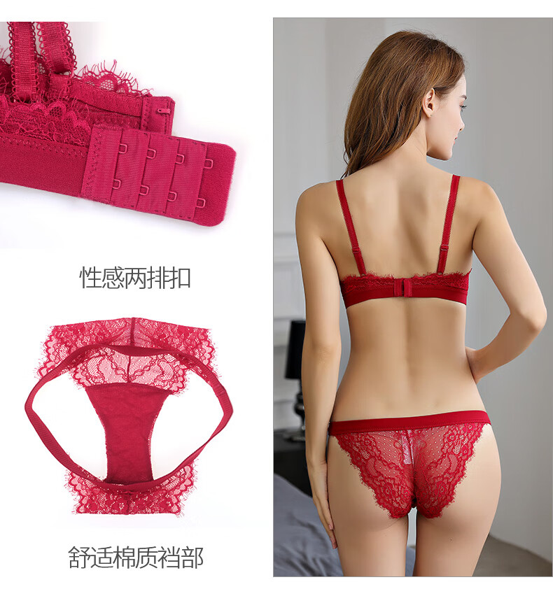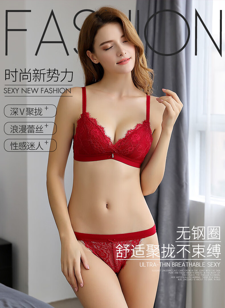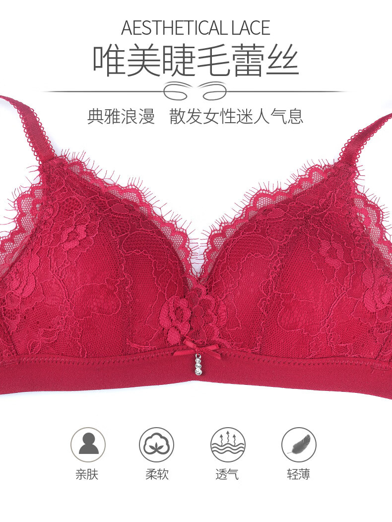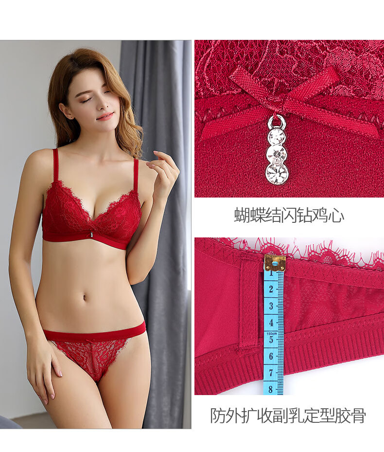 Adore Autumn and Summer Sexy Underwear Women's Wireless Thin Small Breast Push Up Lace Autumn and Winter Red Zodiac Year of the Horse Bra Set Red Set 75B =34B