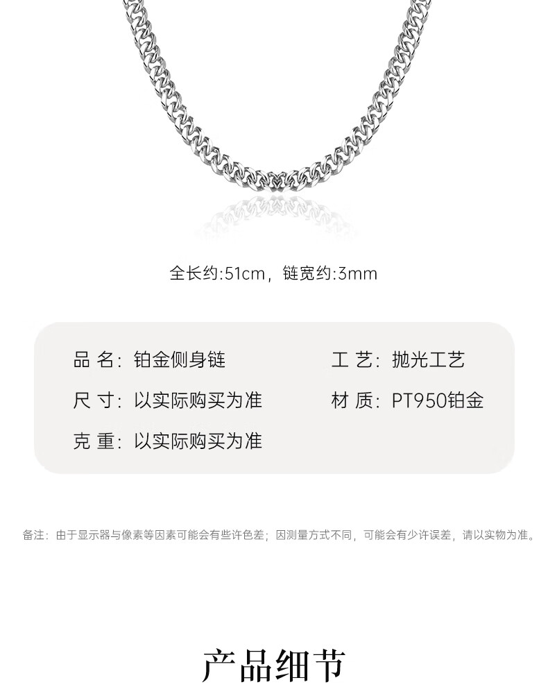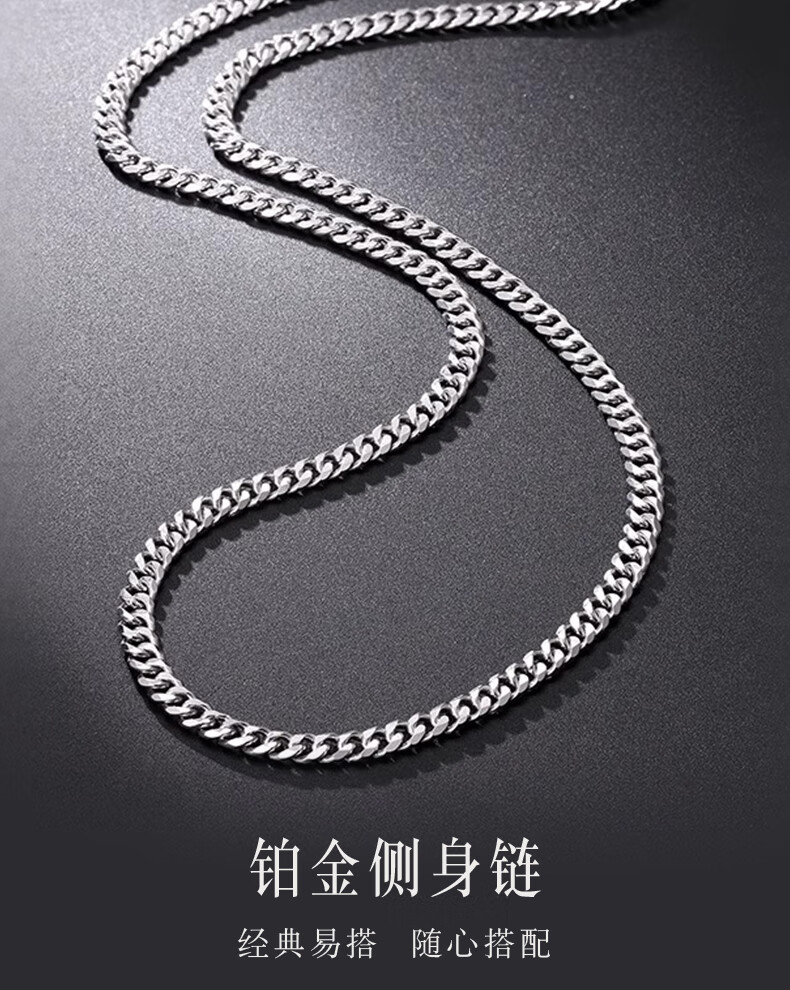 Zhongxin Jewelry platinum necklace men's and women's side chain pt950 semi-solid Cuban chain personalized boss necklace as a gift for husband, more return less replenishment, about 20g (51cm)
