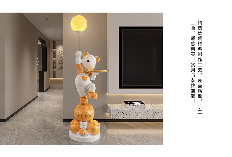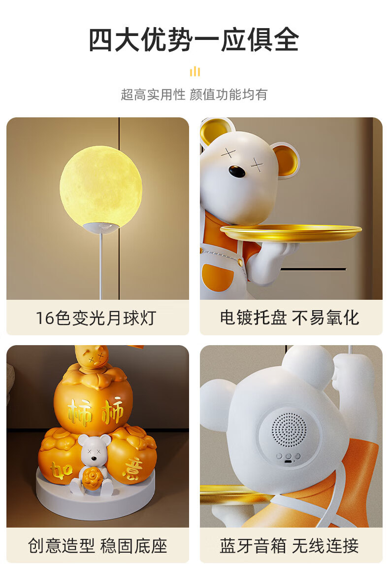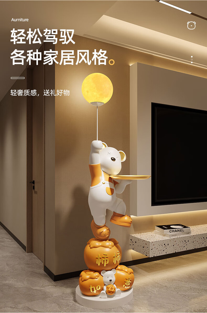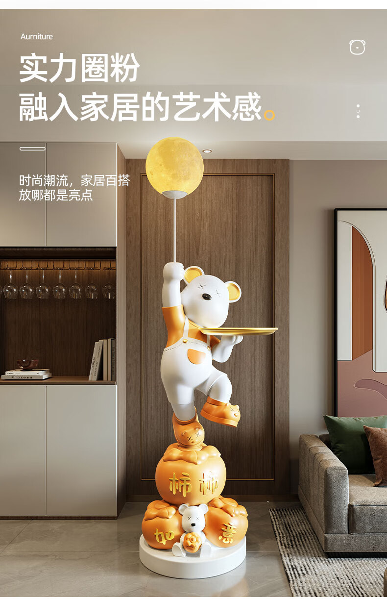 Jizhao Internet celebrity violent bear persimmon persimmon Ruyi large TV cabinet next to the living room floor-standing ornaments large Bluetooth audio practical orange persimmon persimmon Ruyi bear moon lamp style 150CM