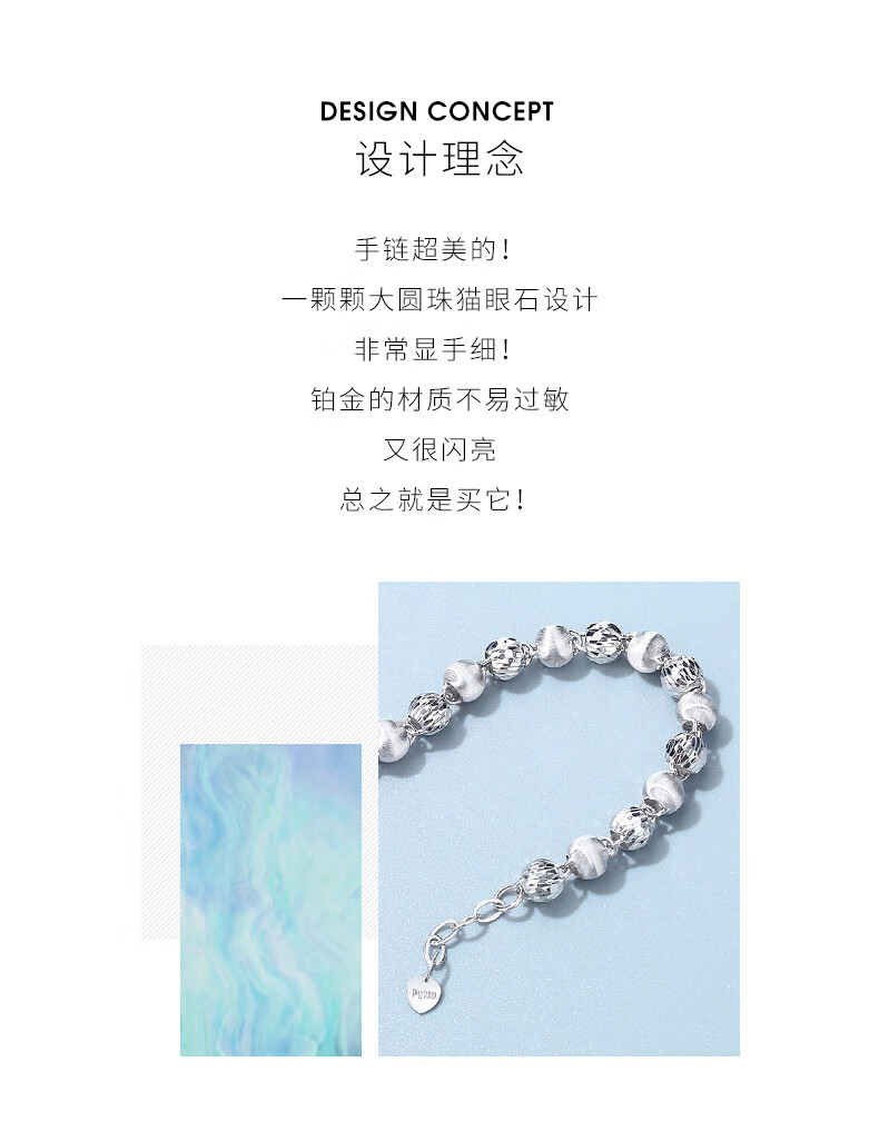 Misu Platinum Cat's Eye Bracelet PT950 Platinum Round Beads Women's Stylish Bracelet Birthday Gift Weight 5.3-5.5g Length 16cm Thickness 4.0mm