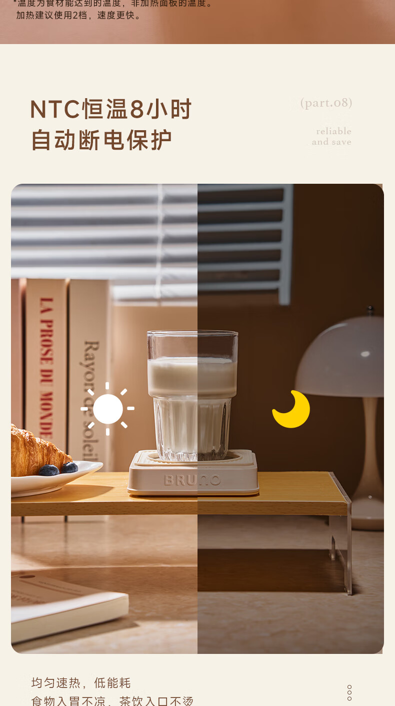 BRUNO Smart Heating Coaster Constant Temperature Office Desktop Hot Milk Artifact Warm Coaster Hand Warmer Queen's Day Gift for Girlfriend Classic White 0.3L Mug Set