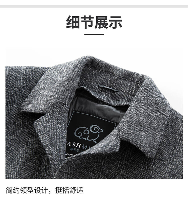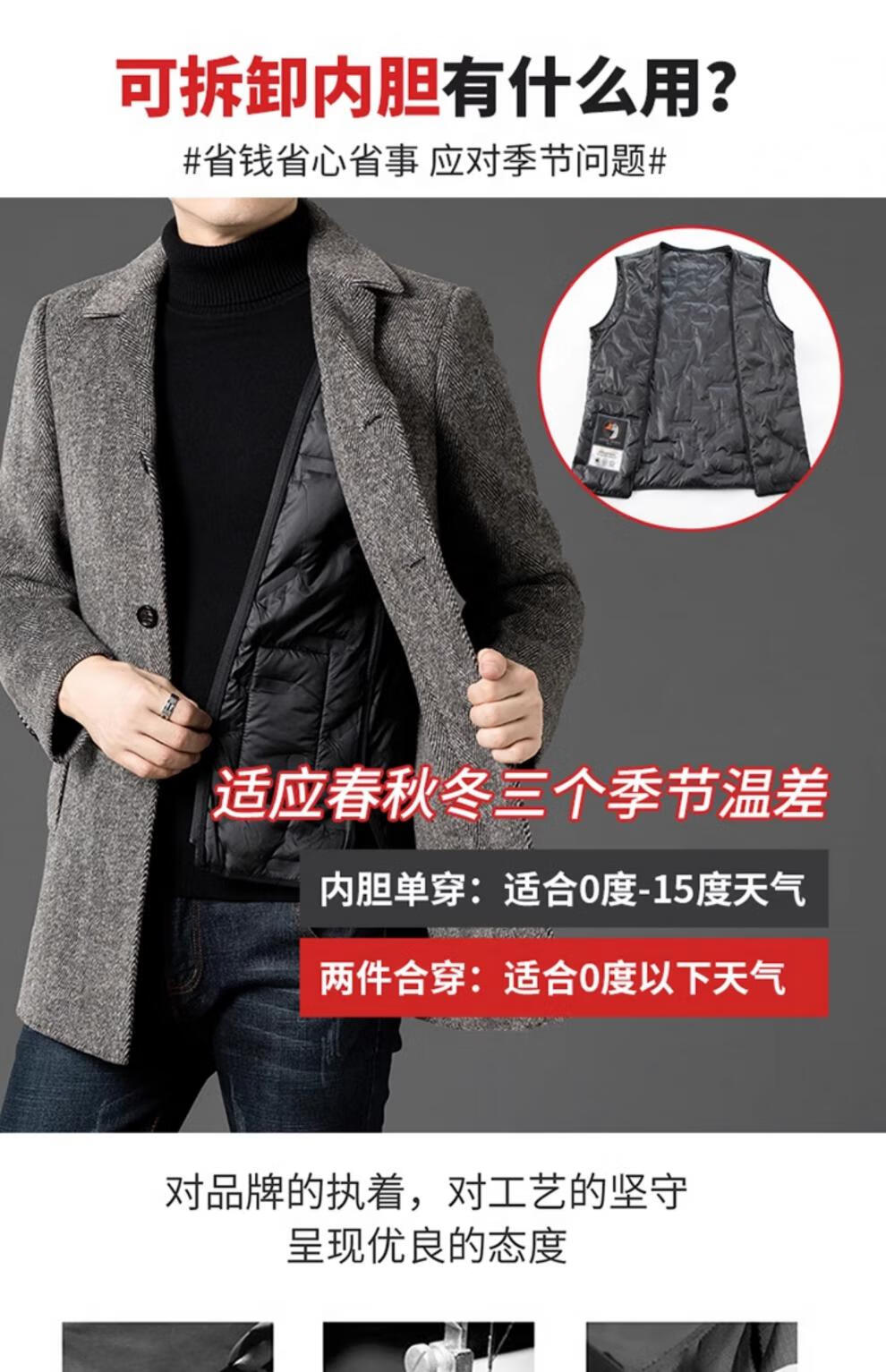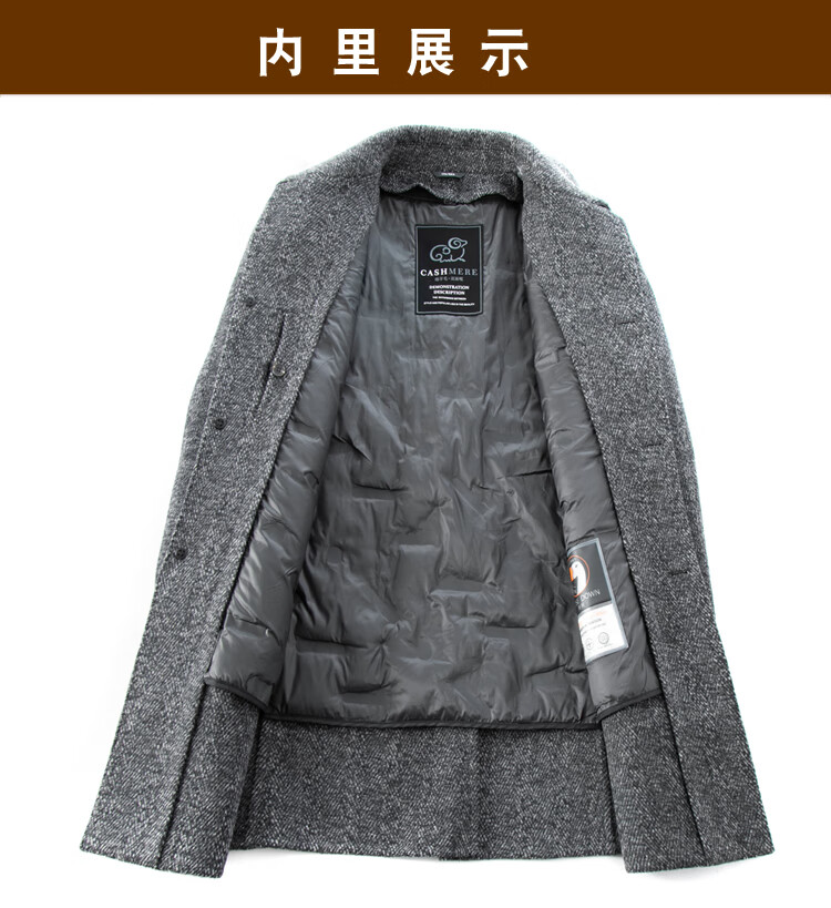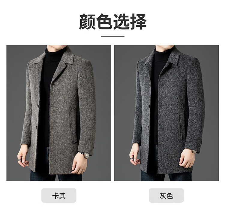 Hengyuan Xiang Sheep Cashmere Coat Men's Mid-Length Removable Goose Down Liner Thickened Sheep Wool Warm Woolen Coat Men's Khaki M 170/48