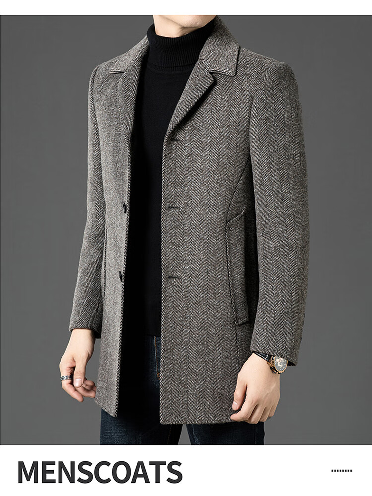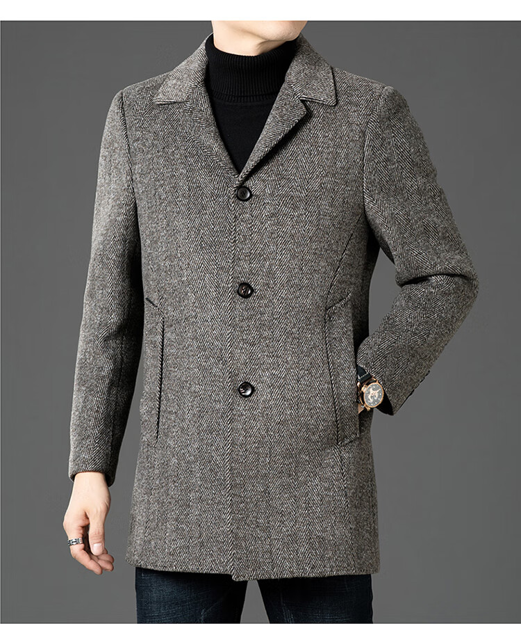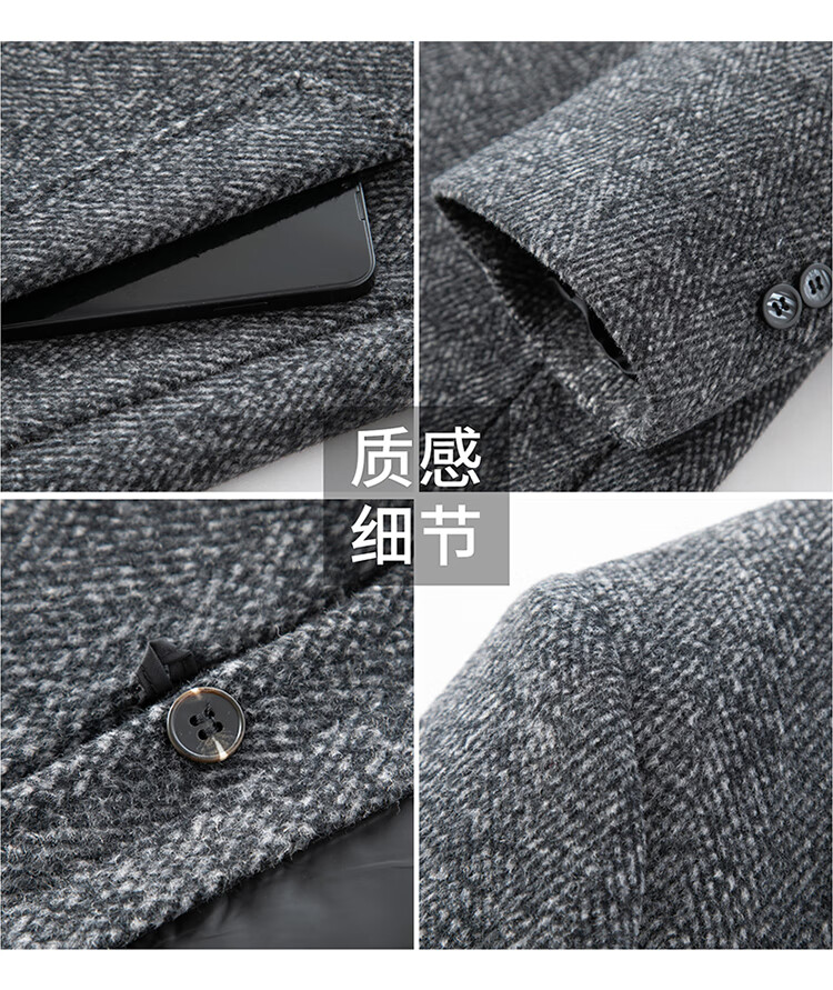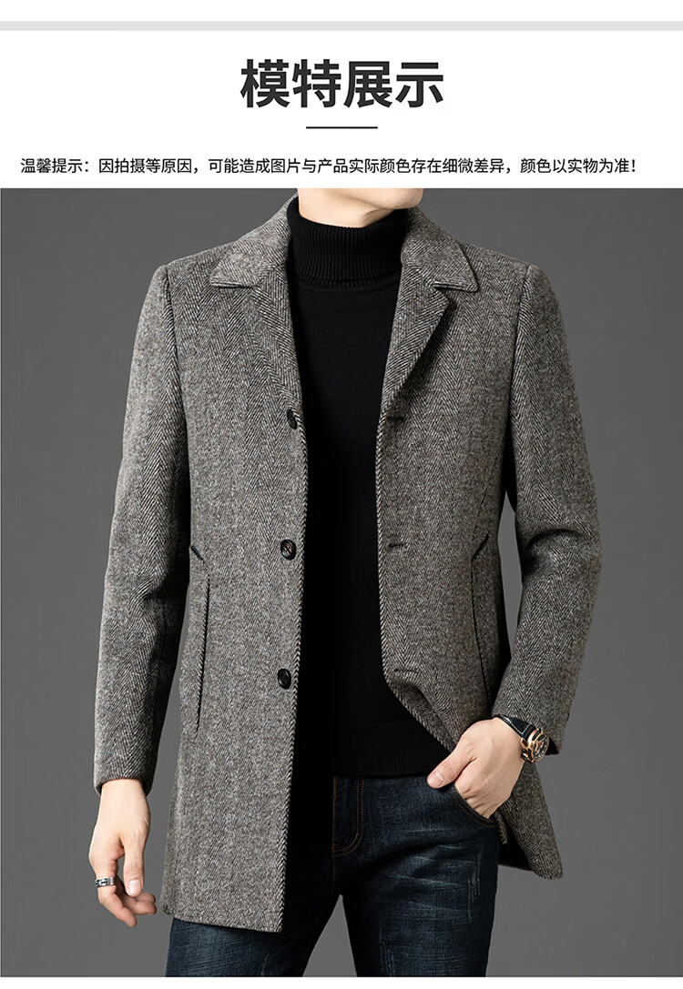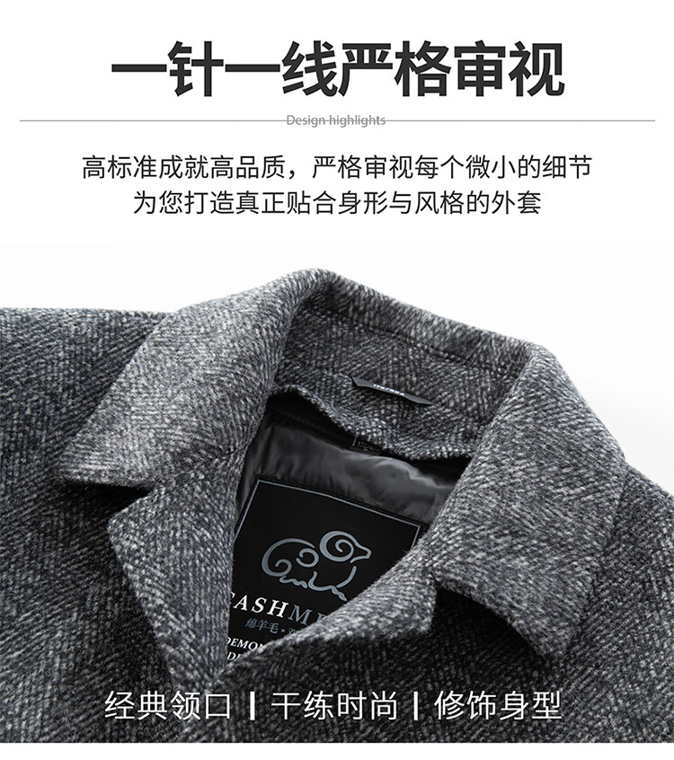 Hengyuan Xiang Sheep Cashmere Coat Men's Mid-Length Removable Goose Down Liner Thickened Sheep Wool Warm Woolen Coat Men's Khaki M 170/48
