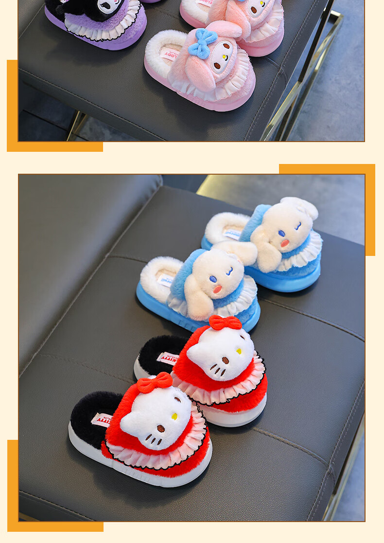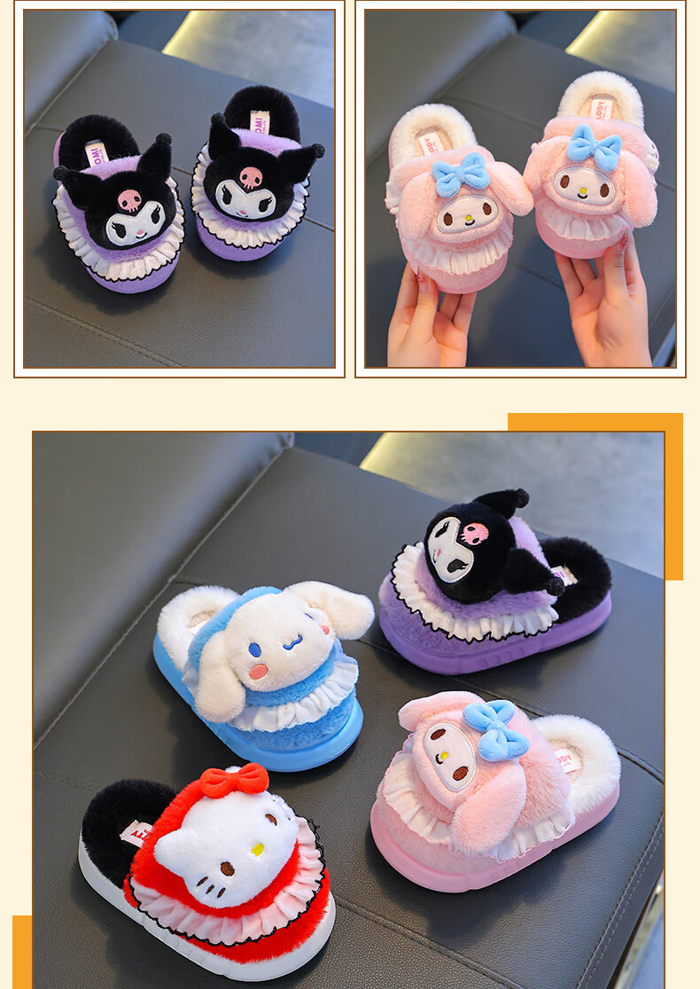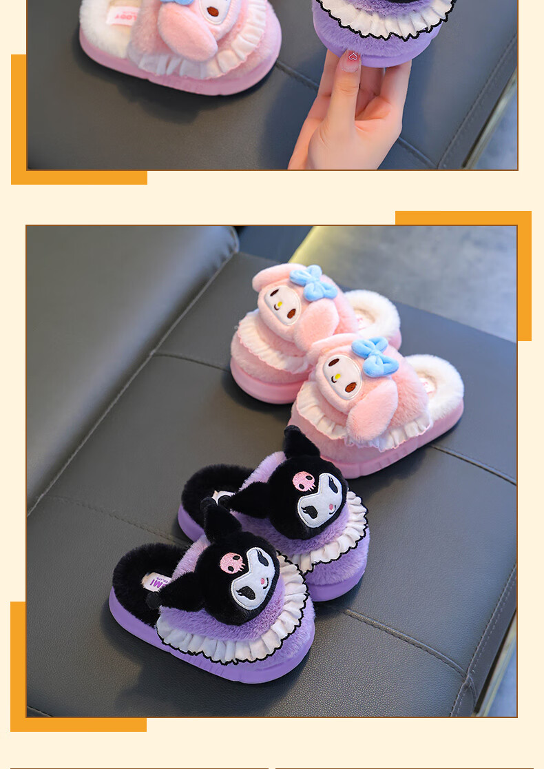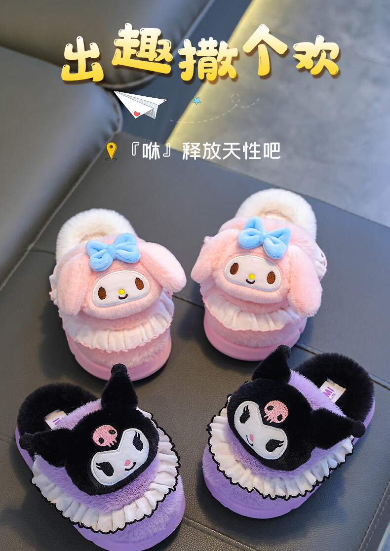 Sanrio Children's Cotton Slippers Autumn and Winter Jade Dog Girls Indoor Non-Slip Parent-child Heel Cotton Shoes 2024 New Pink Melody (Heel Heel) 34-35 Sizes (Inner Length 20CM Suitable for Foot Length 19CM)