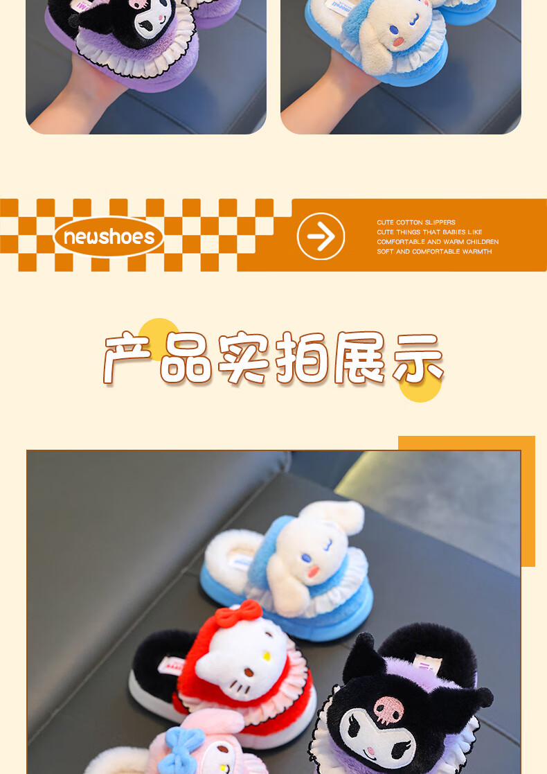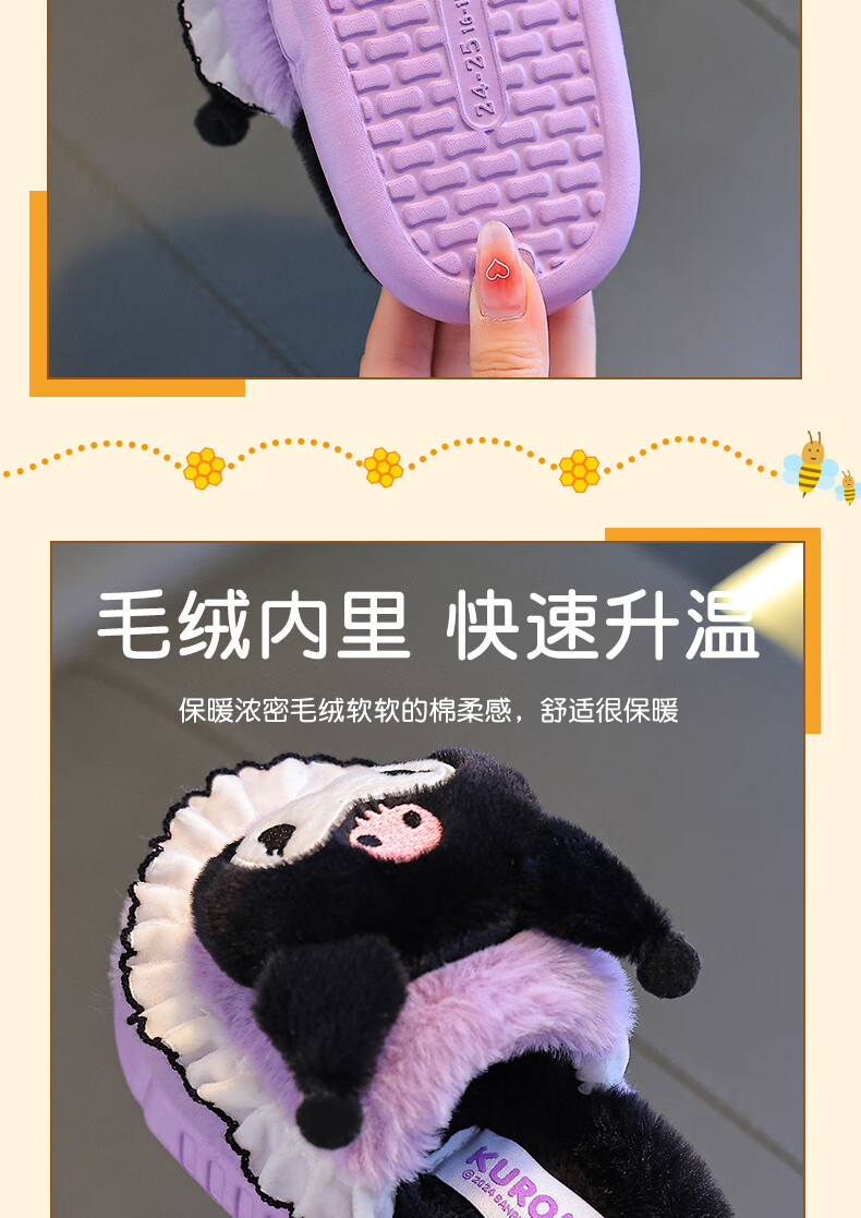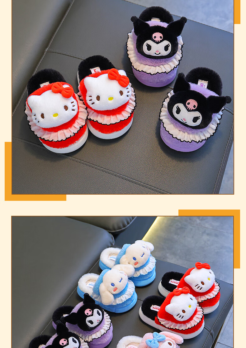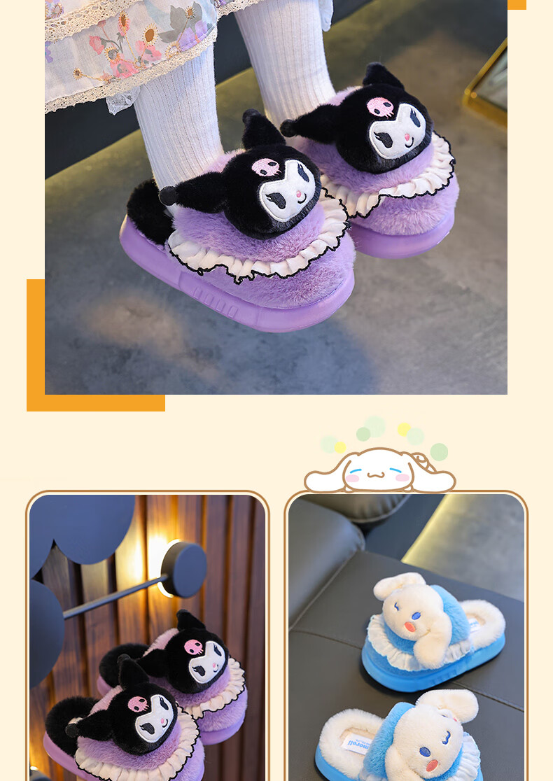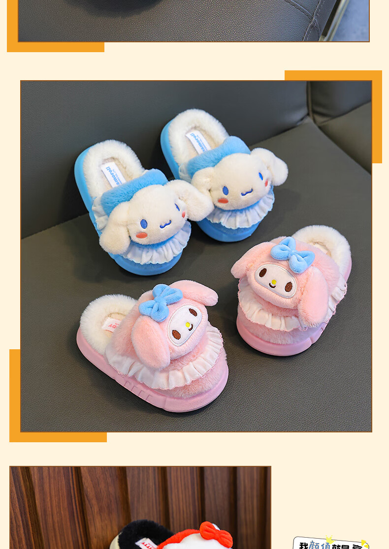 Sanrio Children's Cotton Slippers Autumn and Winter Jade Dog Girls Indoor Non-Slip Parent-child Heel Cotton Shoes 2024 New Pink Melody (Heel Heel) 34-35 Sizes (Inner Length 20CM Suitable for Foot Length 19CM)