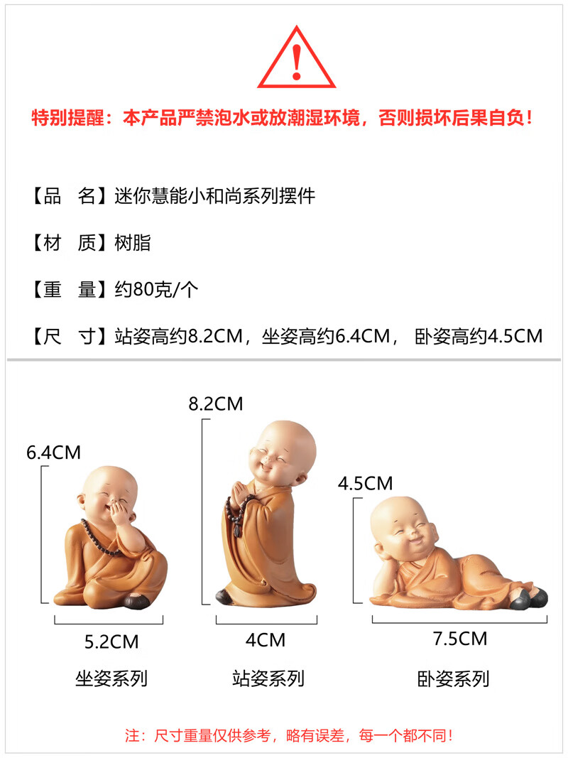 Qia Shuo creative antique little monk ornaments Buddhist Zen home living room tea table character doll bonsai landscaping decoration Suiyuan 17ABC three styles about 8.0CM high