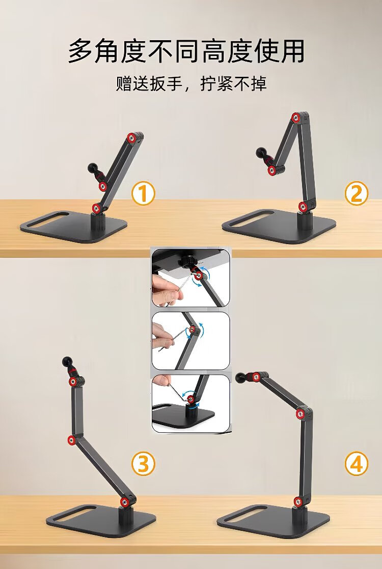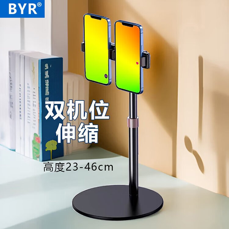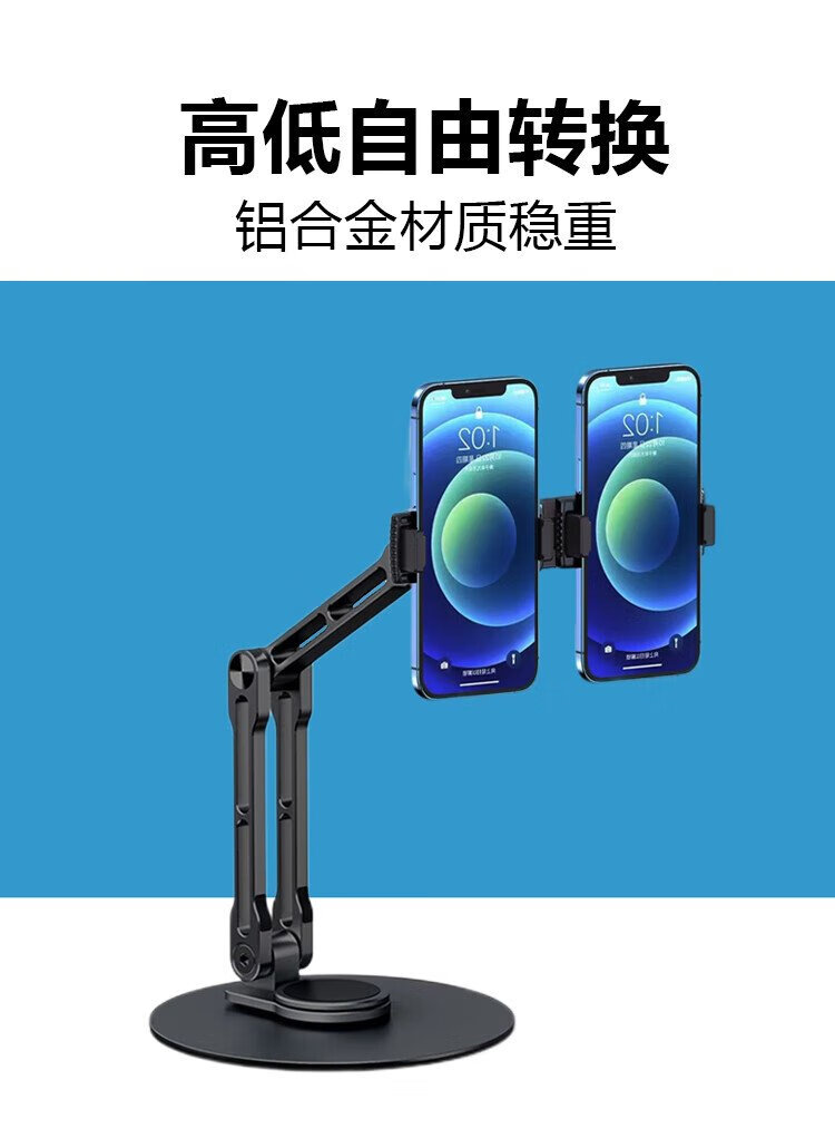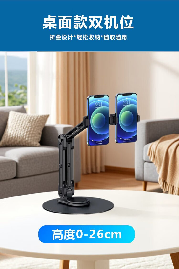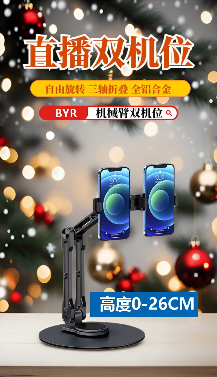 BYR Robotic Arm Dual-Camera Live Broadcast Mobile Phone Stand Aluminum Alloy Rotating Folding Telescopic Short Overhead Photography Jewelry Two-Camera Clip Metal Floor-Standing Double-Head Stable Thick Arm Desktop Dual-Camera Height 0-30cm Weight 780g