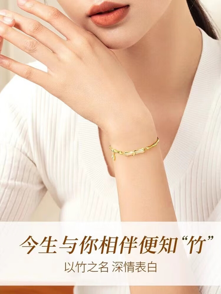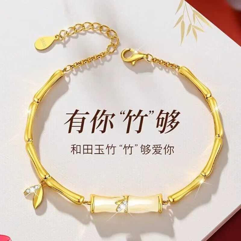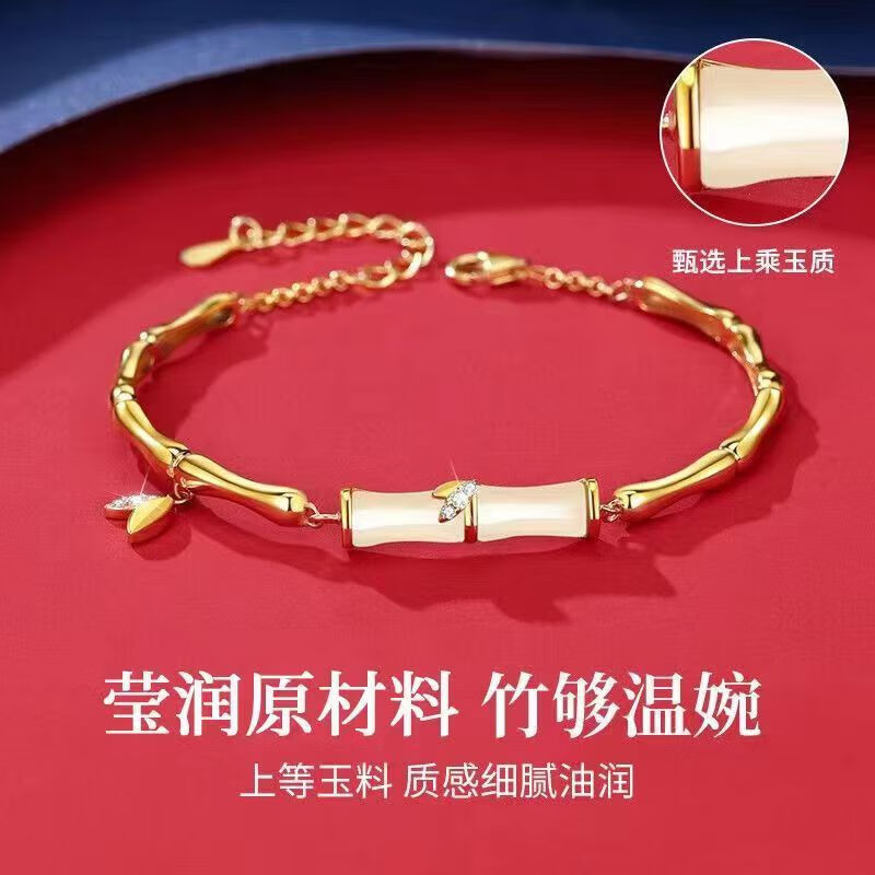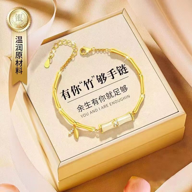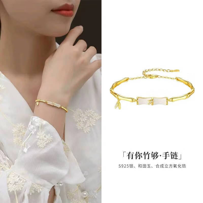 Erli Youni Bamboo Imitation Hetian Jade Bracelet Women's S925 Silver Bamboo Light Luxury Niche National Trend Design Exquisite Youni Bamboo Bracelet Rose Gift Box