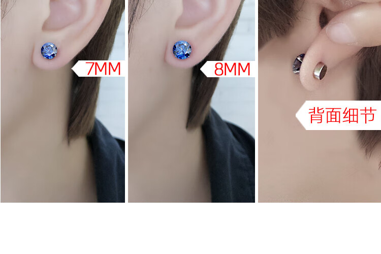 Junkiss No Piercing Magnetic Earrings for Women Magnetic Ear Clamps Magnet Iron Earrings Men's Zircon Diamond High-Quality Earrings 7MM Tanzanite Blue Pair