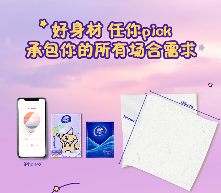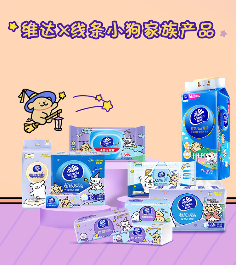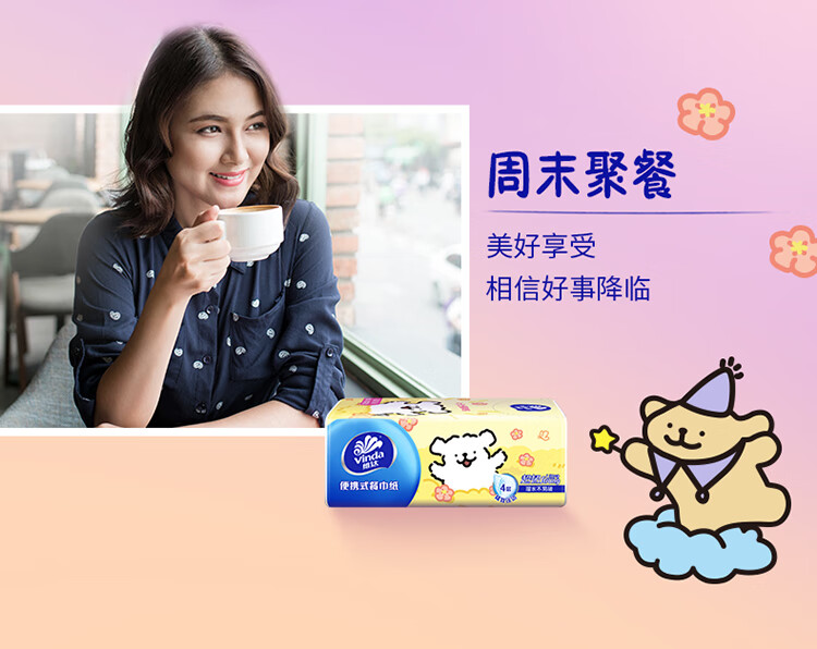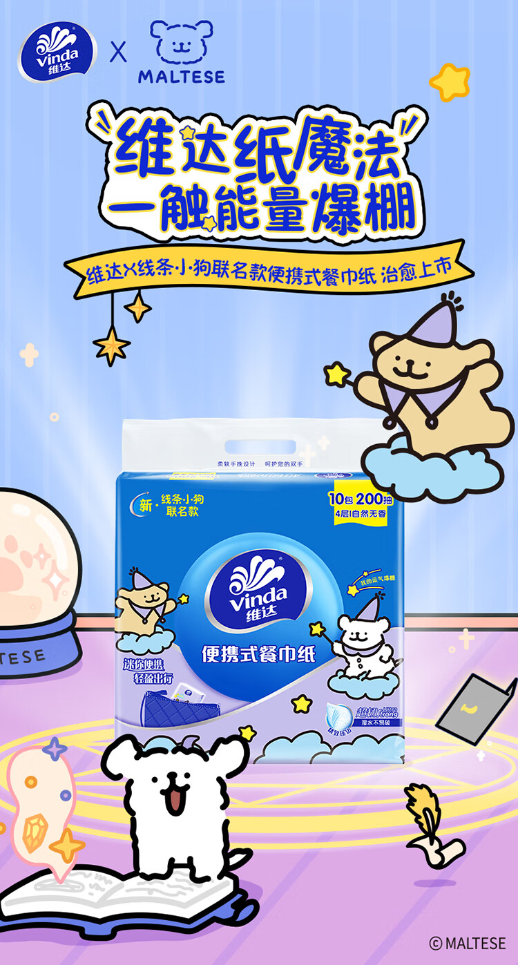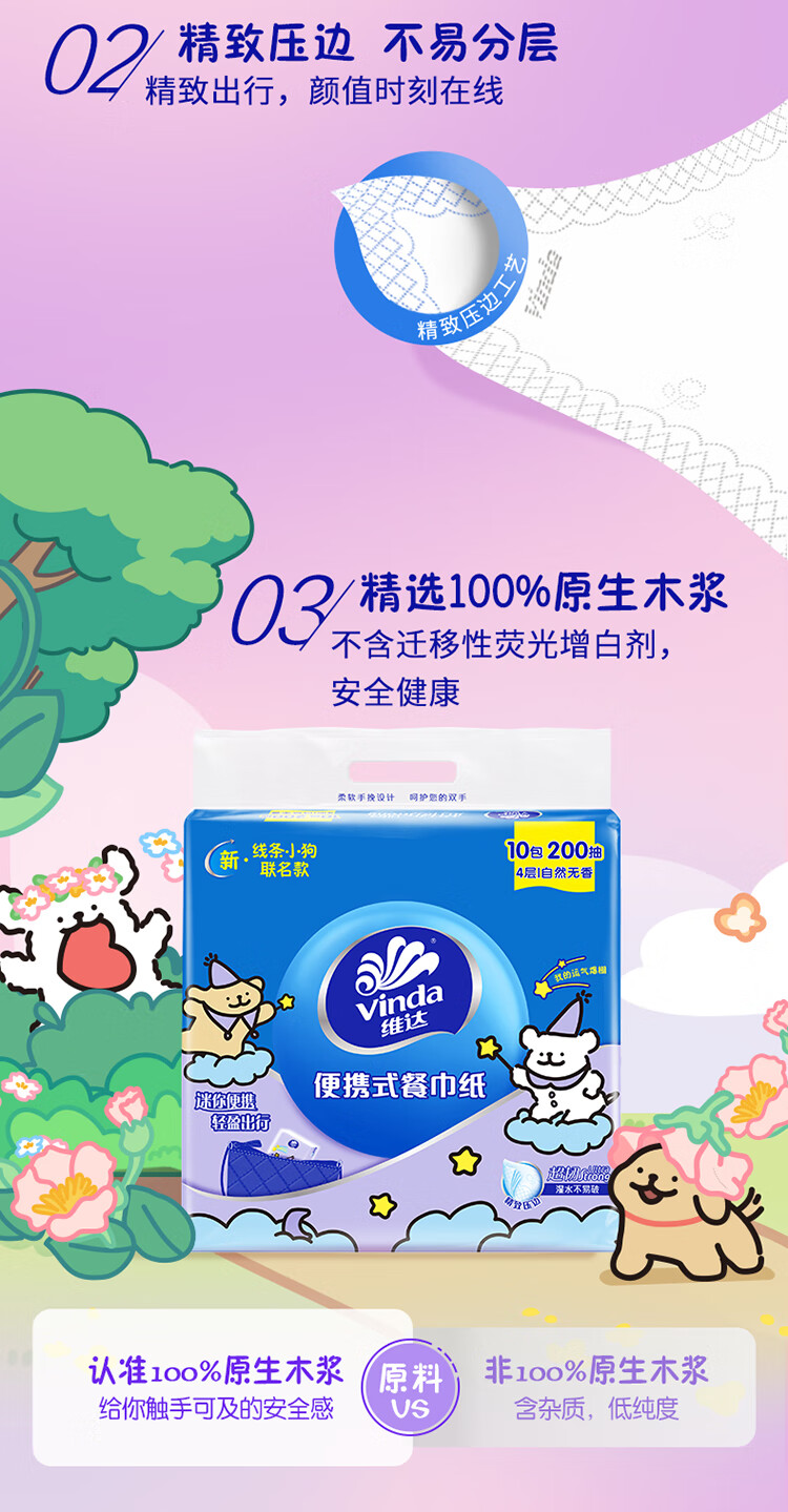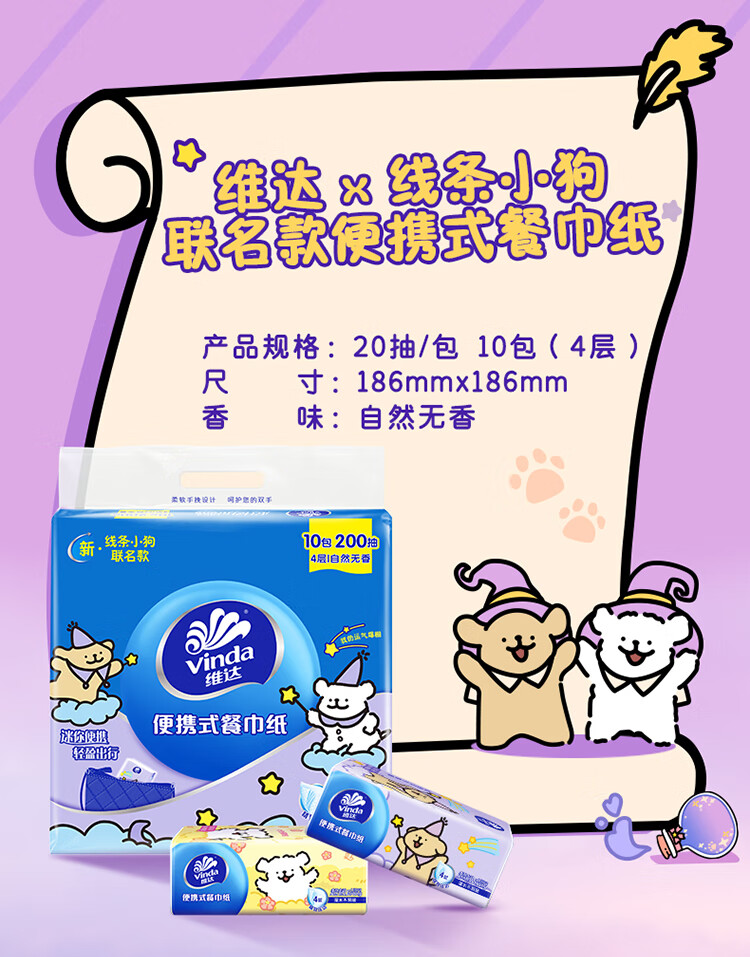 Vinda handkerchief portable tissue paper portable facial tissue toilet paper line puppy joint napkin student small bag 10 packs 1 carry
