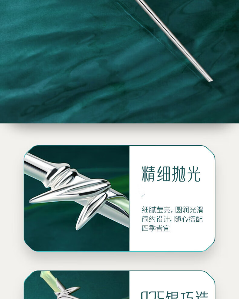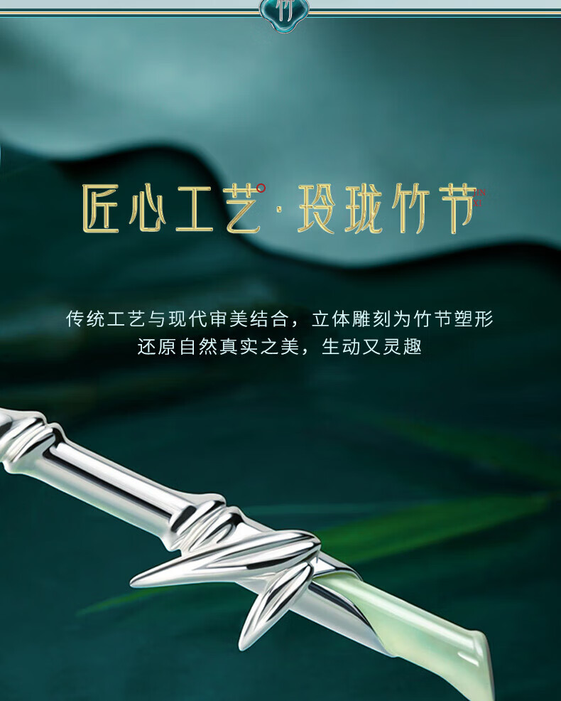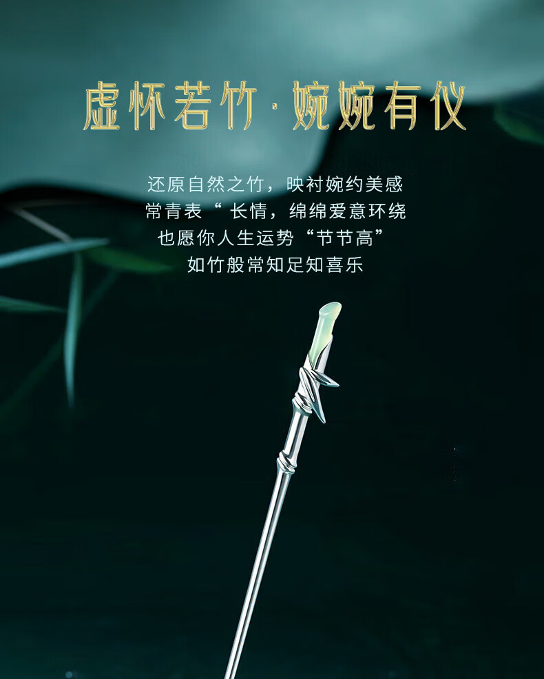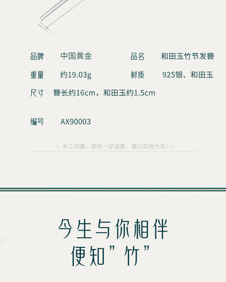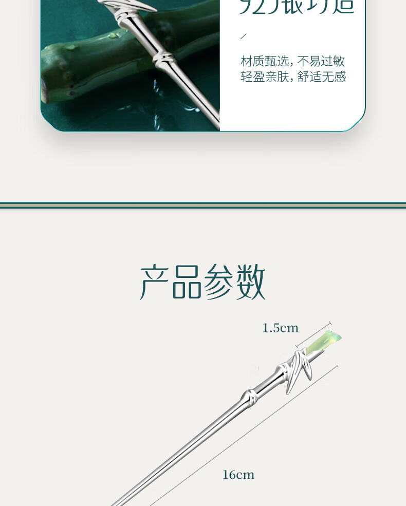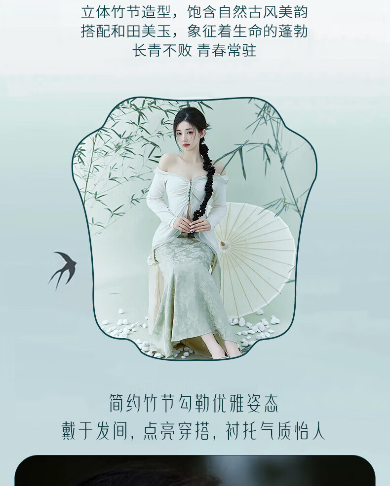 CHINA GOLD Bamboo Hotan Jade Silver Hairpin Hair Accessories Ancient Style Hanfu Silver Hairpin Birthday Gift for Girlfriend and Wife Anniversary Hotan Jade Bamboo Hairpin
