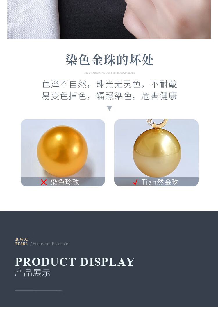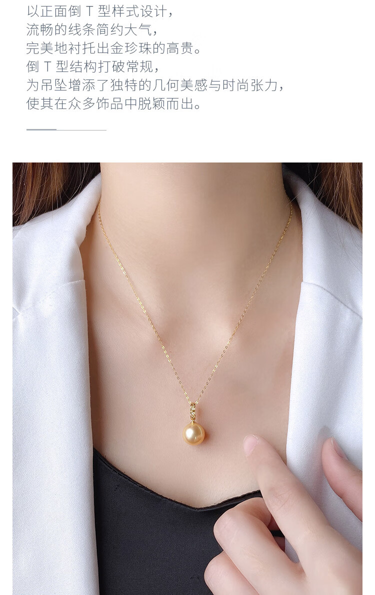 Black and white gold pearl, South Sea seawater gold pearl pendant, 18K gold material, inlaid with elegant gold beads, universal buckle style, inverted T shape 8-9mm