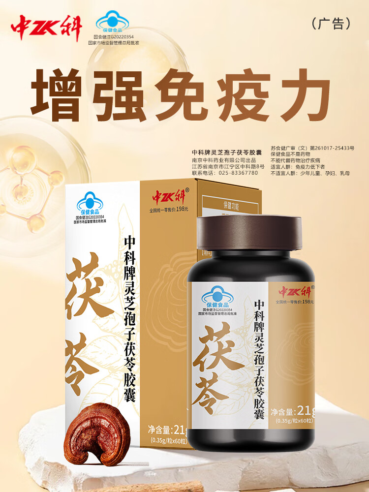 Zhongke Ganoderma Spores and Poria Capsules to enhance immunity and moisture-heavy nutrition gift box spore powder health product gift 4 bottles in gift box to enhance physical fitness and insist on taking it is the key
