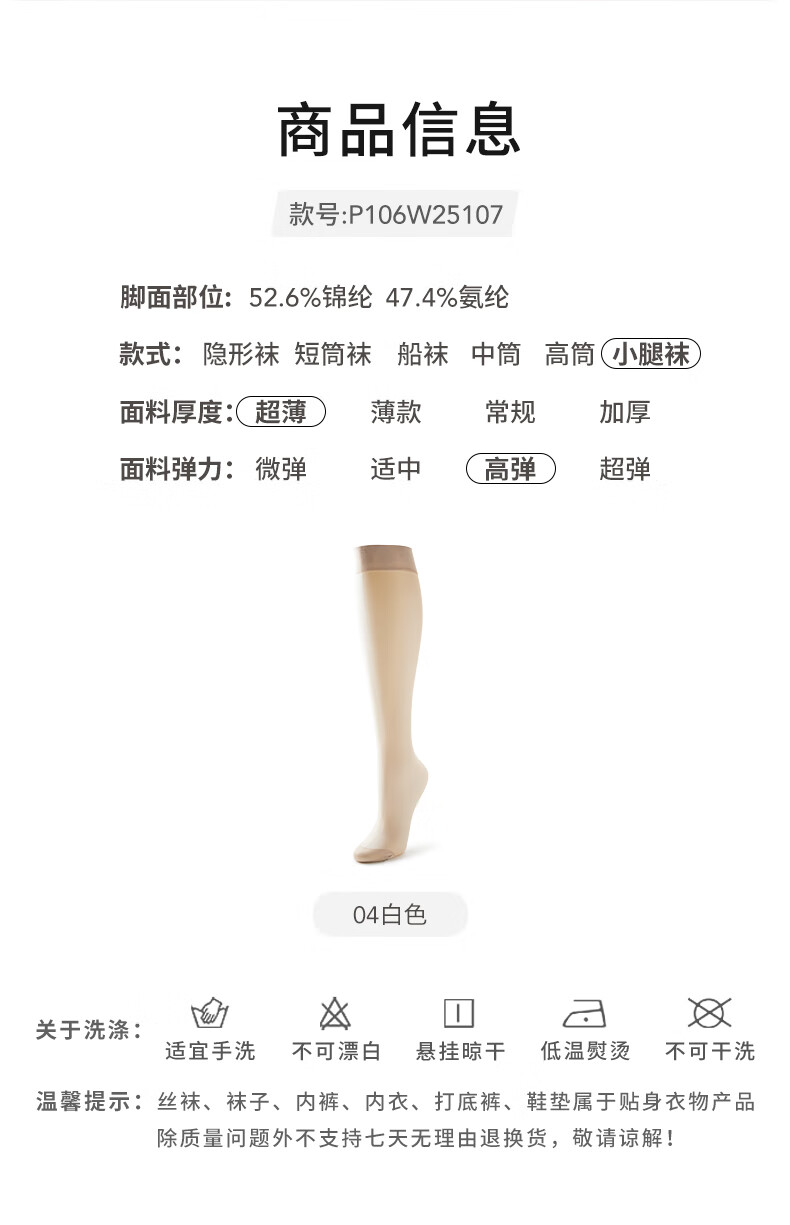 Hot Wind 2025 Spring New Women's Calf Long Stockings-Skin 43 Flesh Color 1 Pair One Size