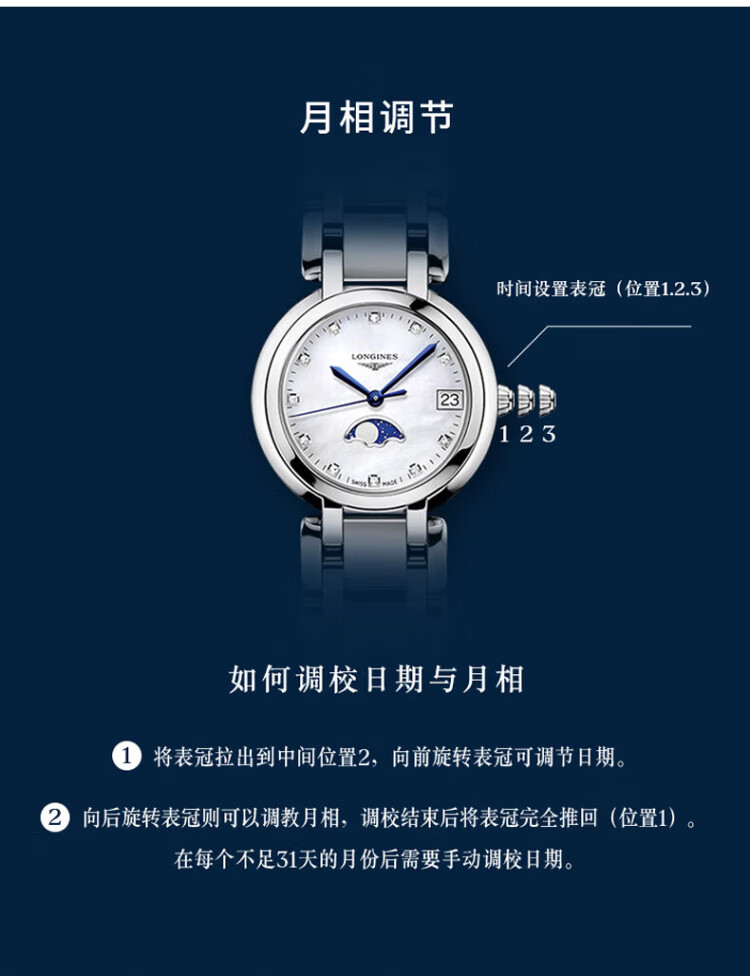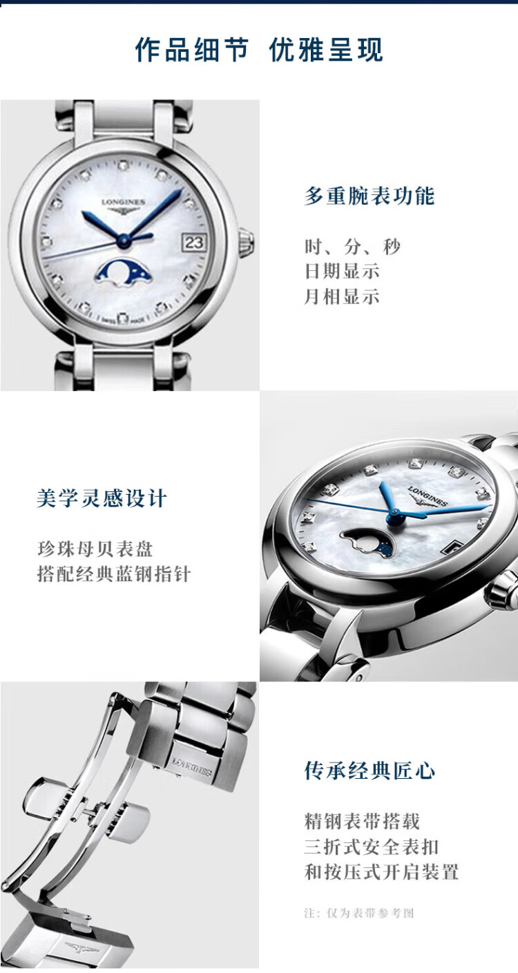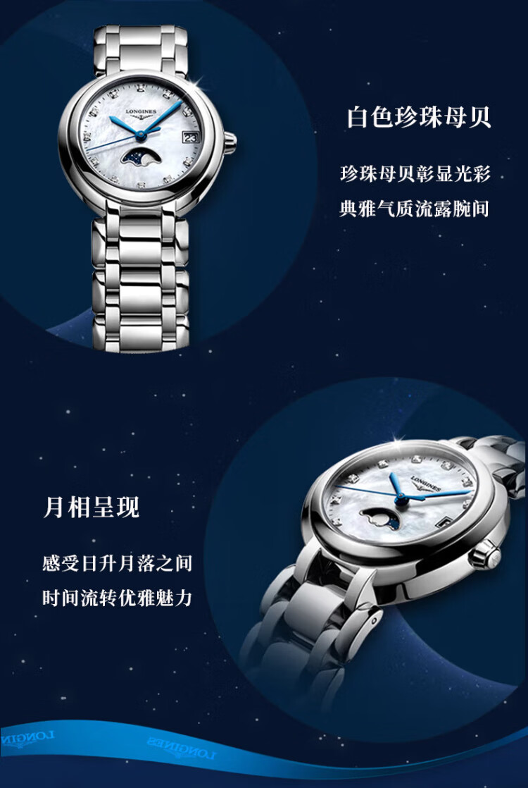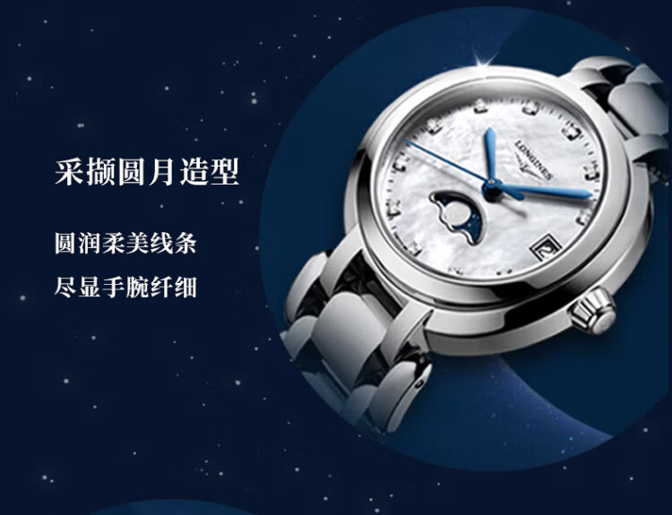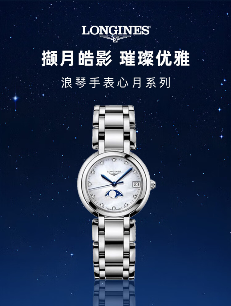 Longines watch for women Xinyue series quartz movement Swiss watch date display moon phase fashionable and elegant steel strap women's watch 34.00mm silver Rome L8.116.4.71.6