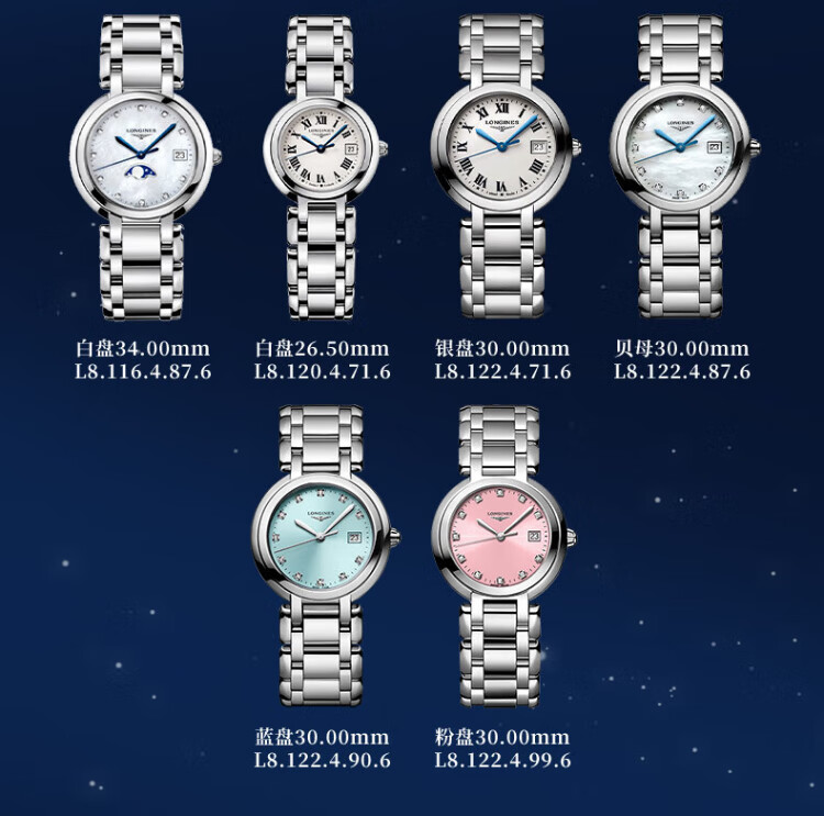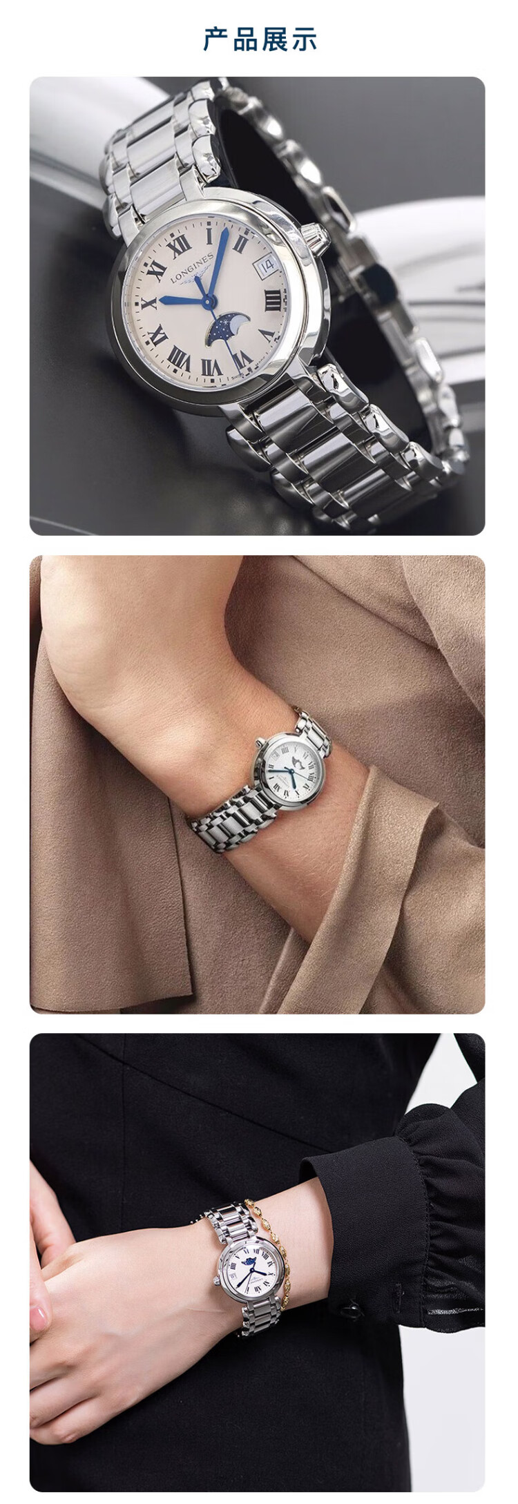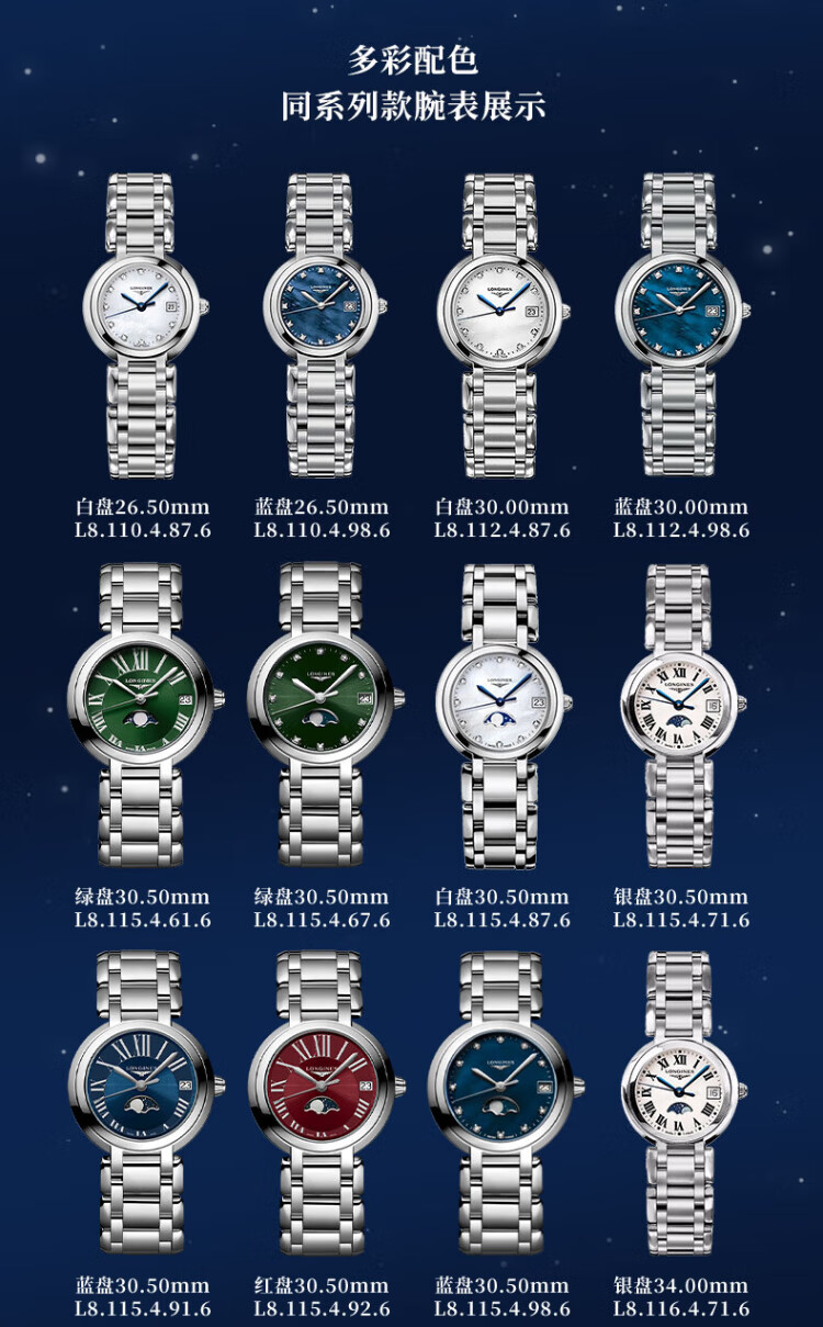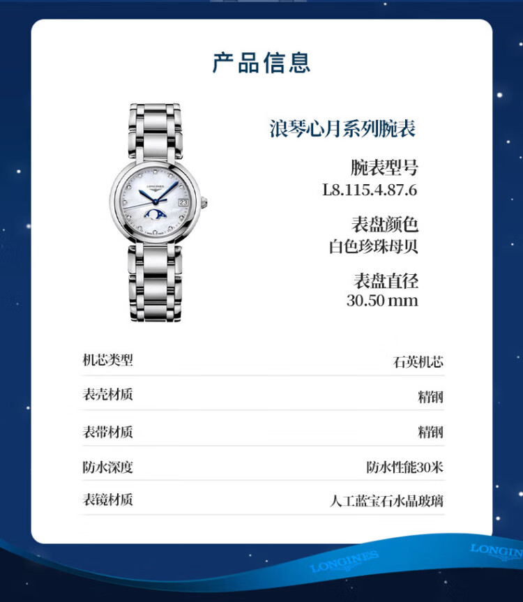 Longines watch for women Xinyue series quartz movement Swiss watch date display moon phase fashionable and elegant steel strap women's watch 34.00mm silver Rome L8.116.4.71.6